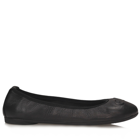 Czarne baleriny damskie Toscanio to klasyka w najlepszym wydaniu – uniwersalne, wygodne i eleganckie. Wykonane z wysokiej jakości skóry naturalnej, zachwycają prostotą formy oraz subtelną gumką wokół cholewki, która delikatnie dopasowuje się do stopy, zapewniając komfort i dobre trzymanie. Niski 1-centymetrowy obcas sprawia, że model sprawdzi się doskonale na co dzień – zarówno do pracy, jak i na spacer czy spotkanie. To ponadczasowy wybór, który dopełni każdą stylizację – od klasycznych jeansów po zwiewne sukienki.