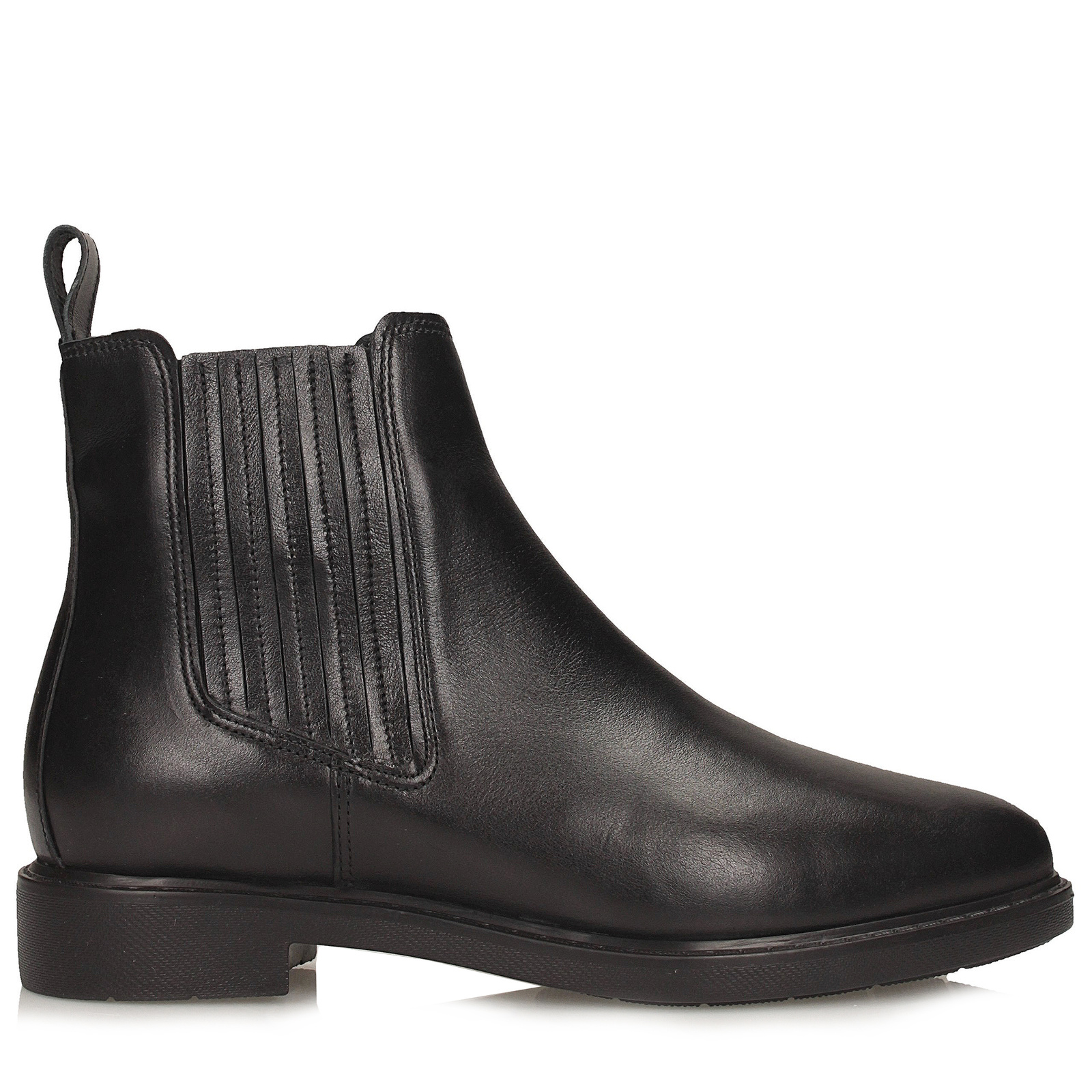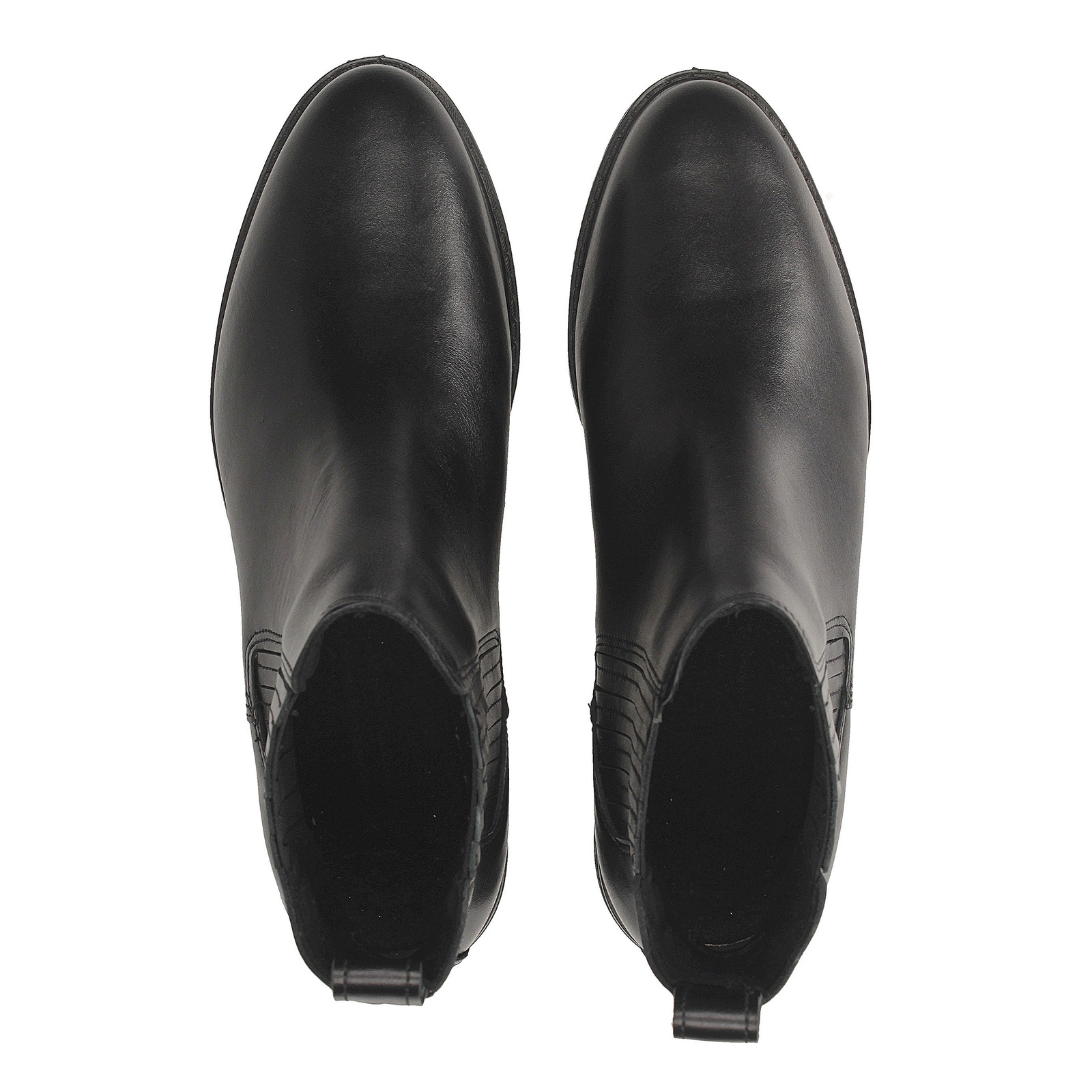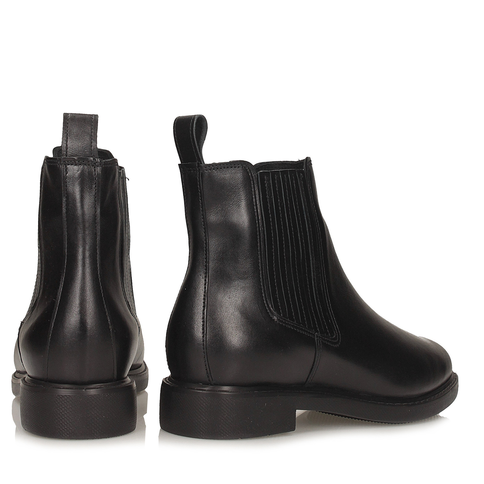 Buty mają charakterystyczne dla sztybletów elastyczne gumy po bokach, które ułatwiają zakładanie i zapewniają komfort noszenia.