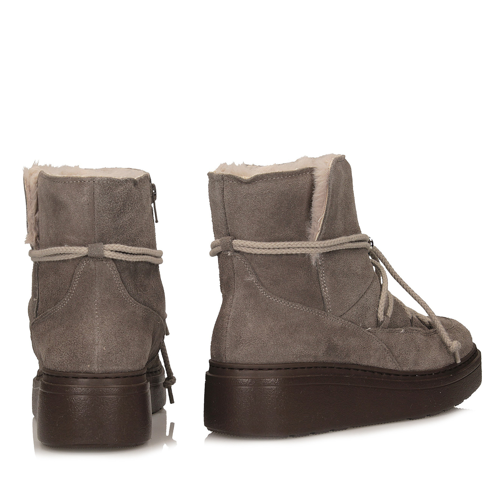 Szare botki marki Ryłko to połączenie wygody, ciepła i modnego, zimowego stylu. Wykonane z miękkiego zamszu naturalnego, zachwycają subtelnym, matowym wykończeniem oraz przyjemnym w dotyku wnętrzem z ociepleniem z tworzywa sztucznego, które gwarantuje komfort nawet w chłodne dni.