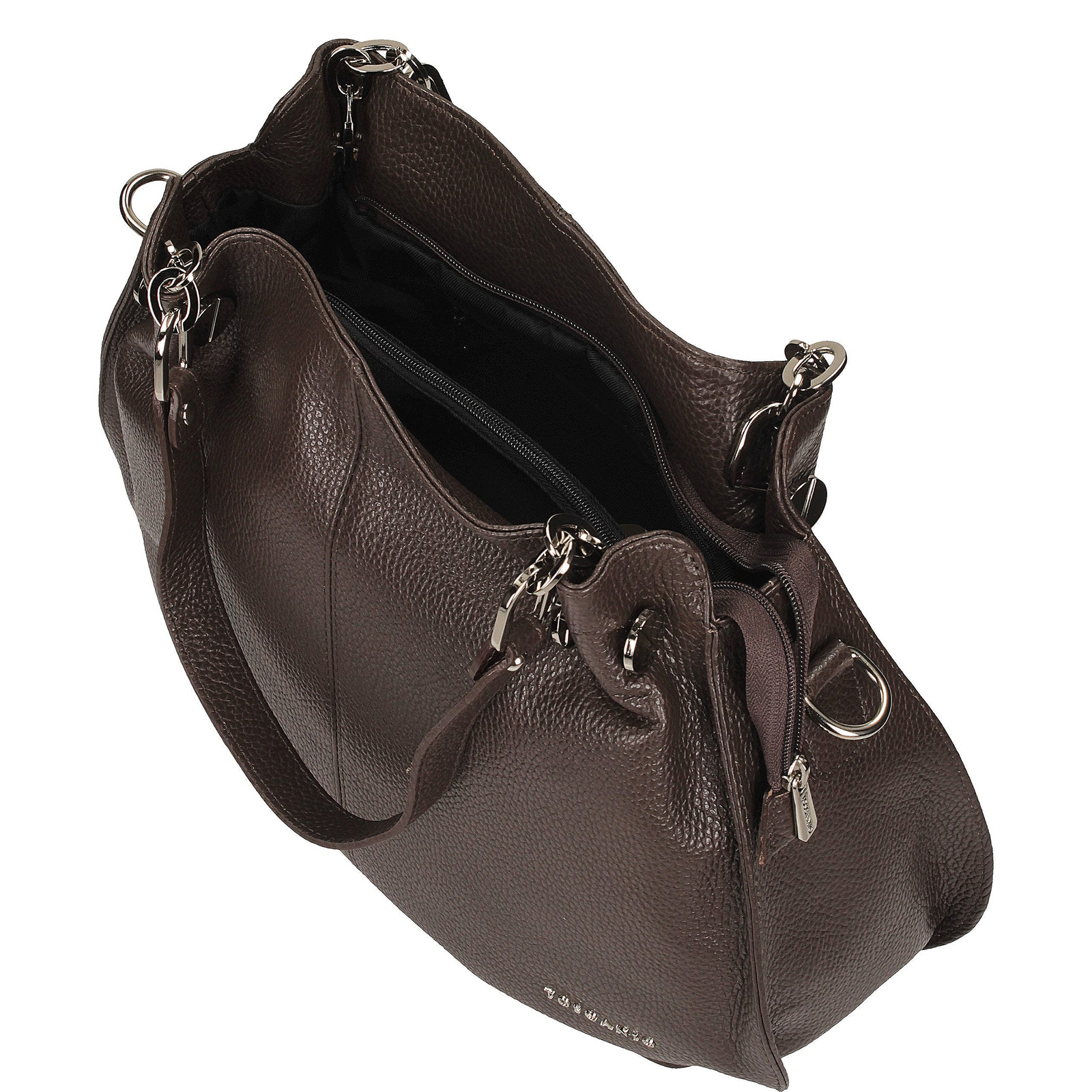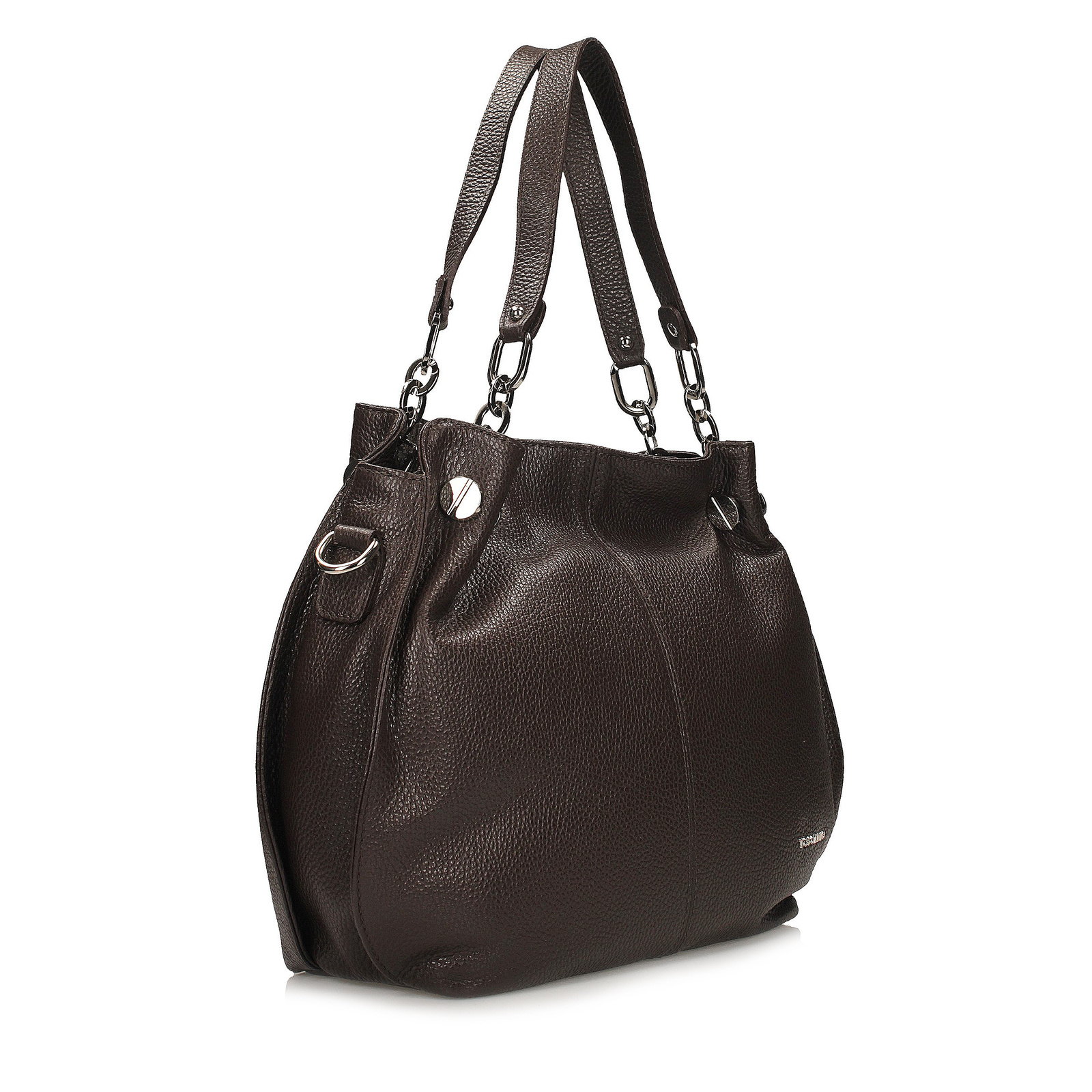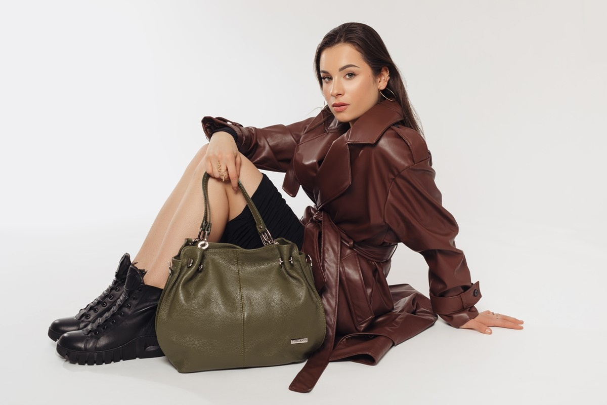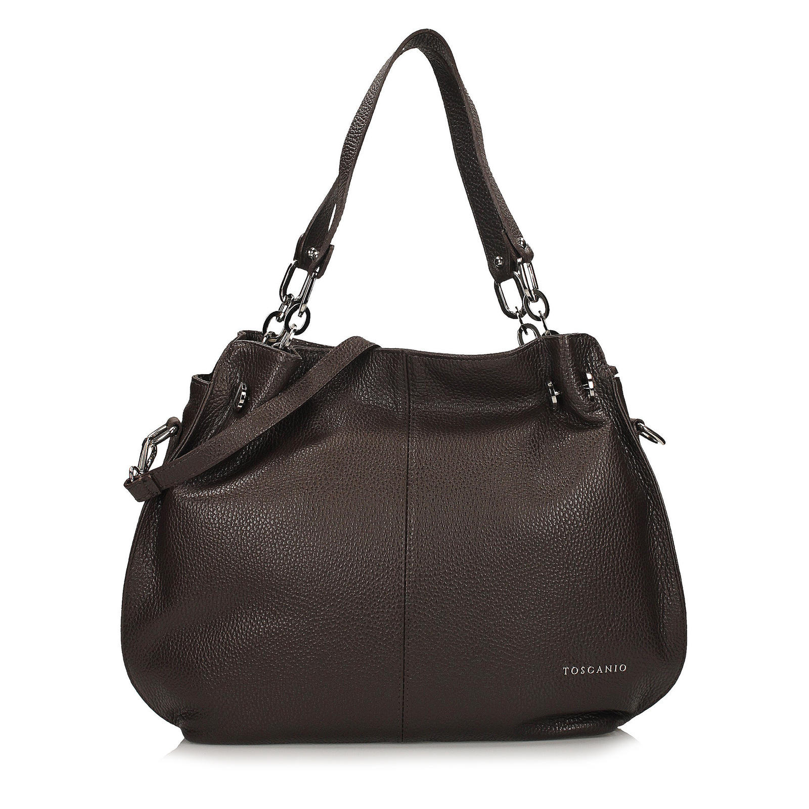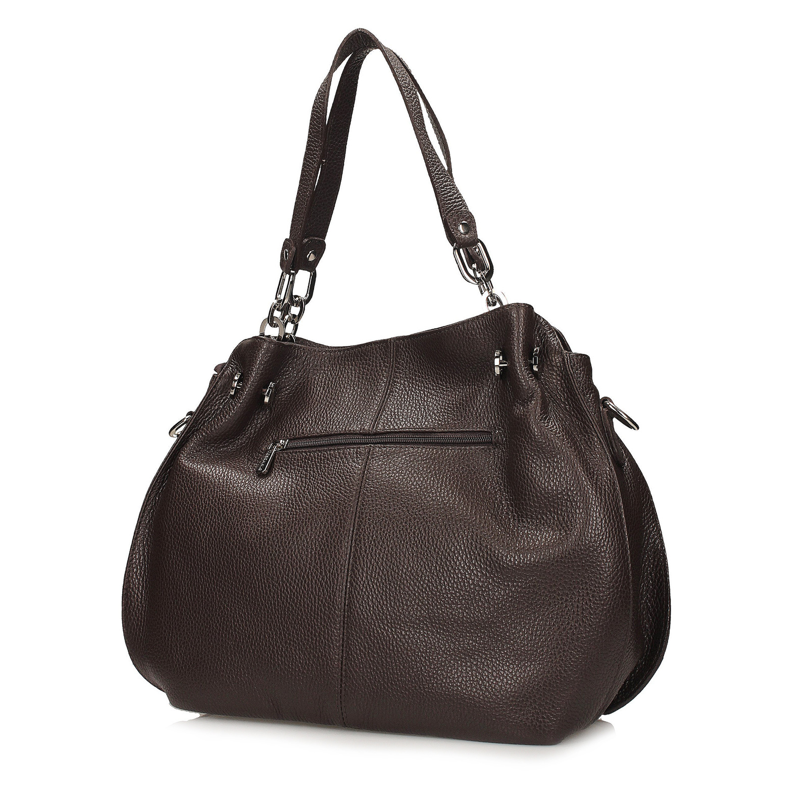 Torebka wykonana jest z naturalnej, groszkowej skóry, wyposażona w jedną główną komorę,