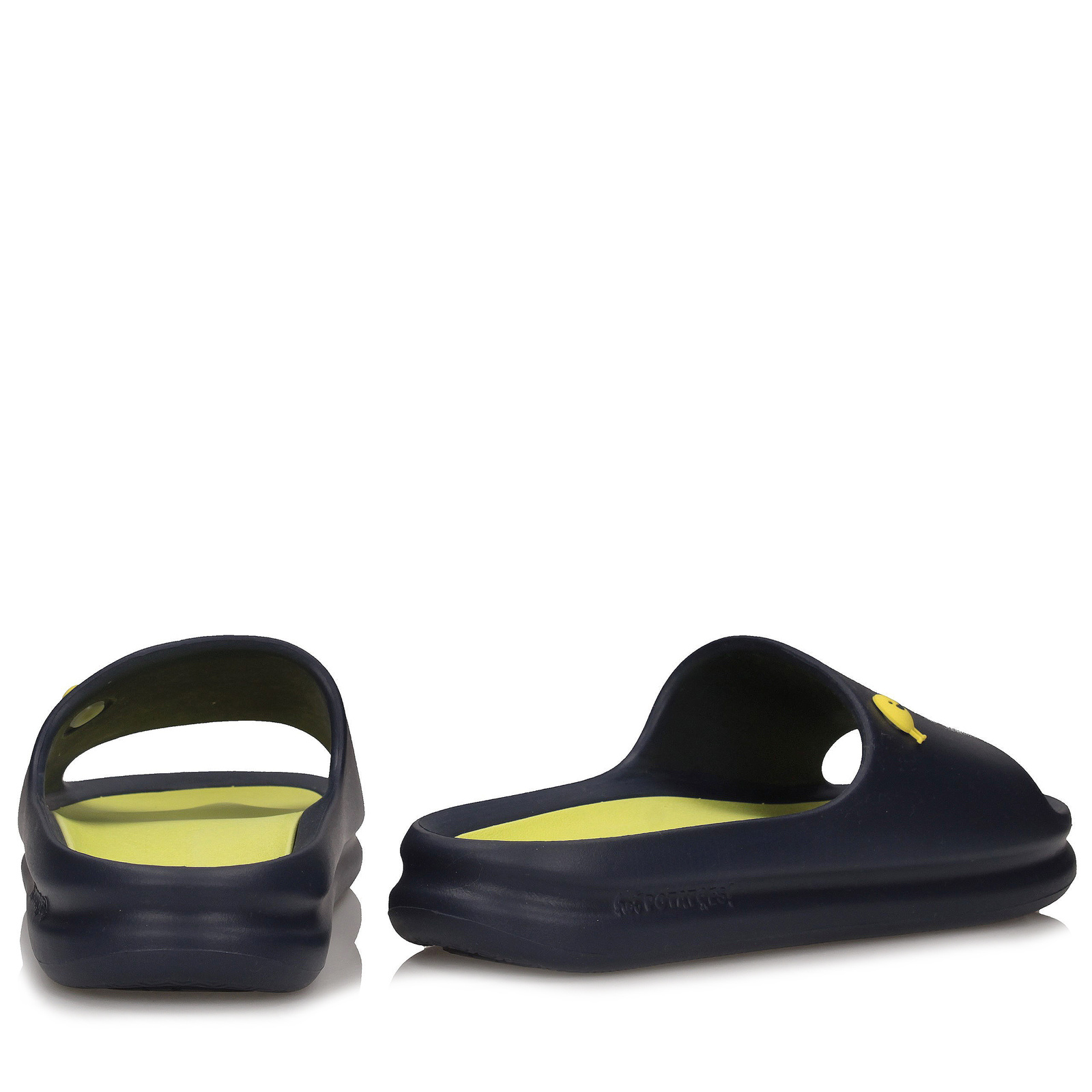 Te wsuwane klapki Hot Potatoes to propozycja dla kobiet, które cenią wygodę i funkcjonalność. Model wykonany z lekkiego tworzywa sztucznego przyciąga uwagę połączeniem granatu i żółci – koloru słonecznej energii i głębokiej elegancji.