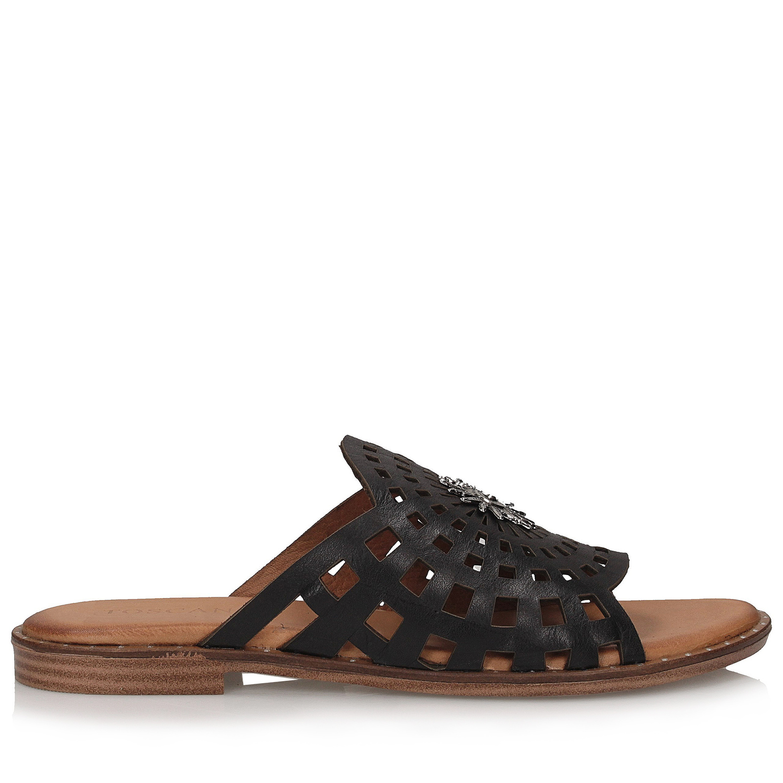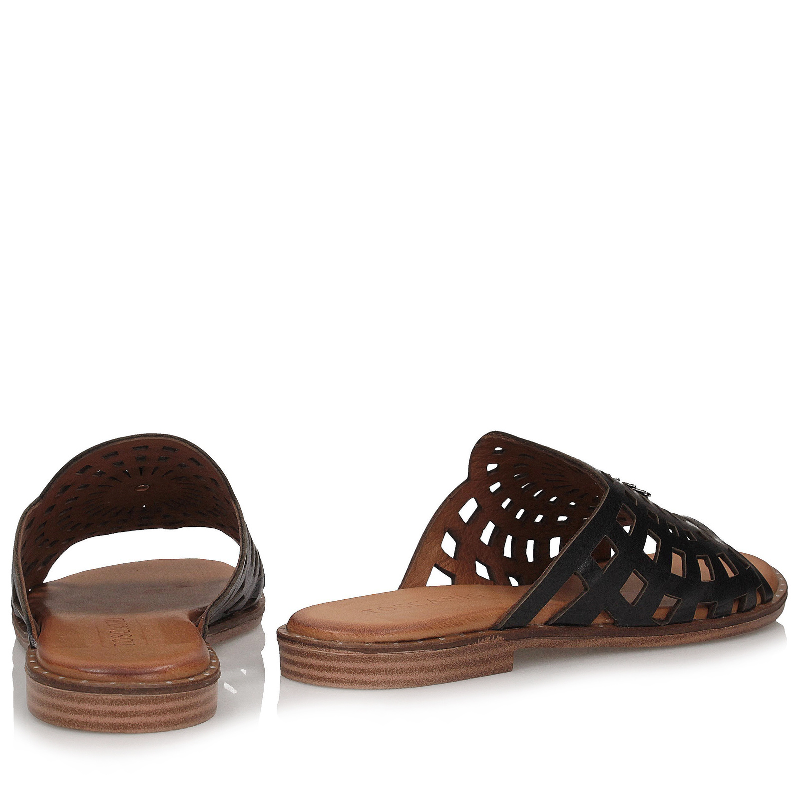 Czarne klapki damskie Toscanio to minimalistyczna elegancja i wygoda w najlepszym wydaniu. Wykonane w całości z naturalnej skóry, zarówno na zewnątrz, jak i wewnątrz, zapewniają komfort noszenia oraz trwałość na długie sezony.