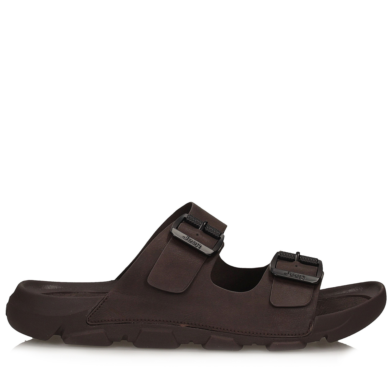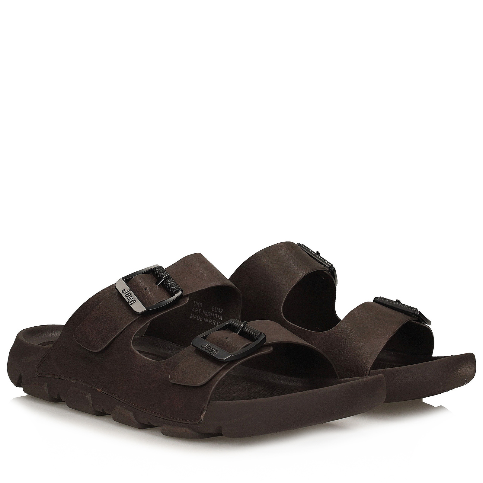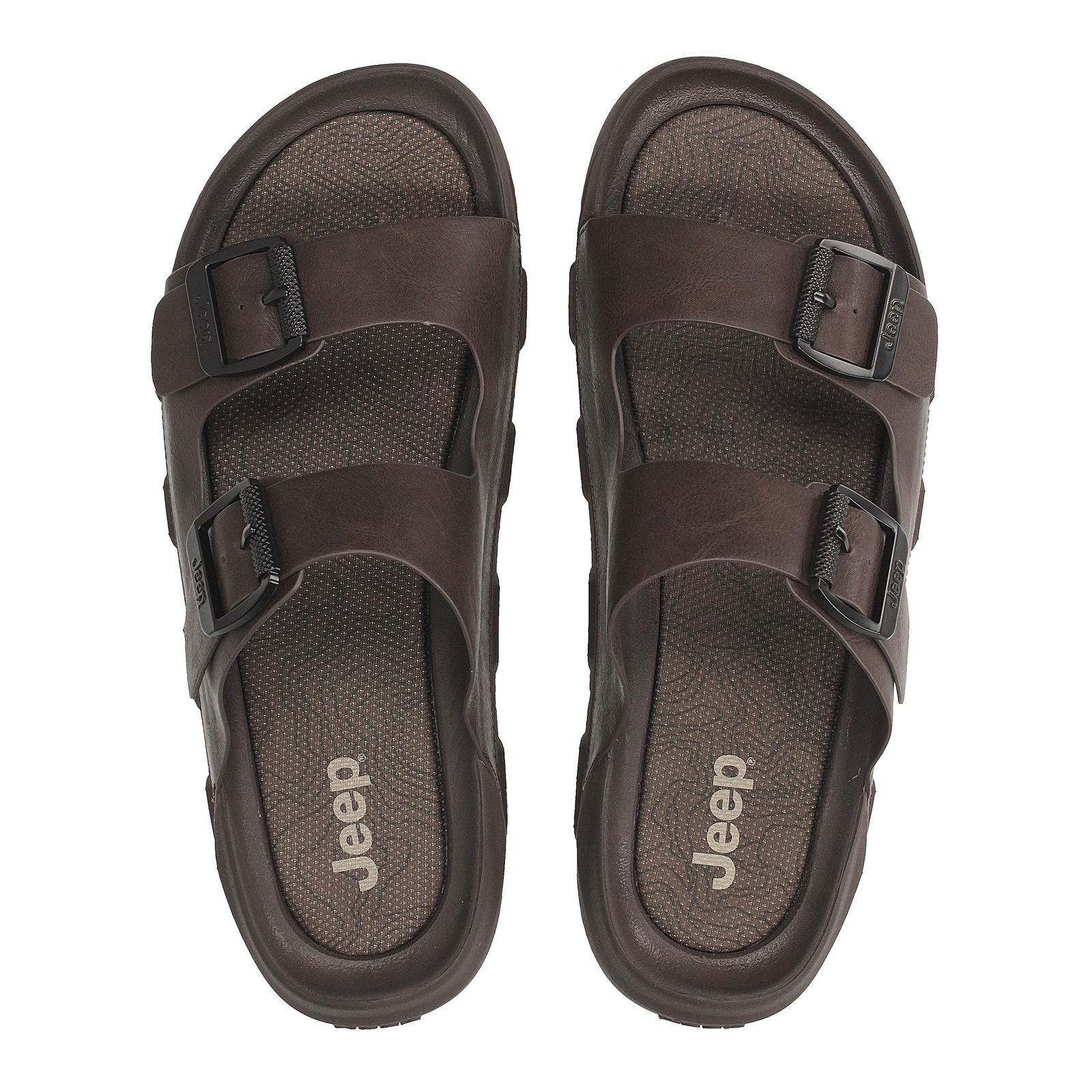 Męskie klapki marki Jeep wykonane z wysokiej jakości skóry ekologicznej w klasycznym brązowym odcieniu. Model wyposażony w dwa szerokie paski z regulowanymi metalowymi klamrami, które zapewniają lepsze dopasowanie do stopy i stabilność podczas chodzenia. Podeszwa o wysokości 2 cm gwarantuje komfort na co dzień, a uniwersalny fason sprawdzi się zarówno na plaży, jak i w miejskich stylizacjach. Idealny wybór na lato dla mężczyzn ceniących wygodę i funkcjonalność.