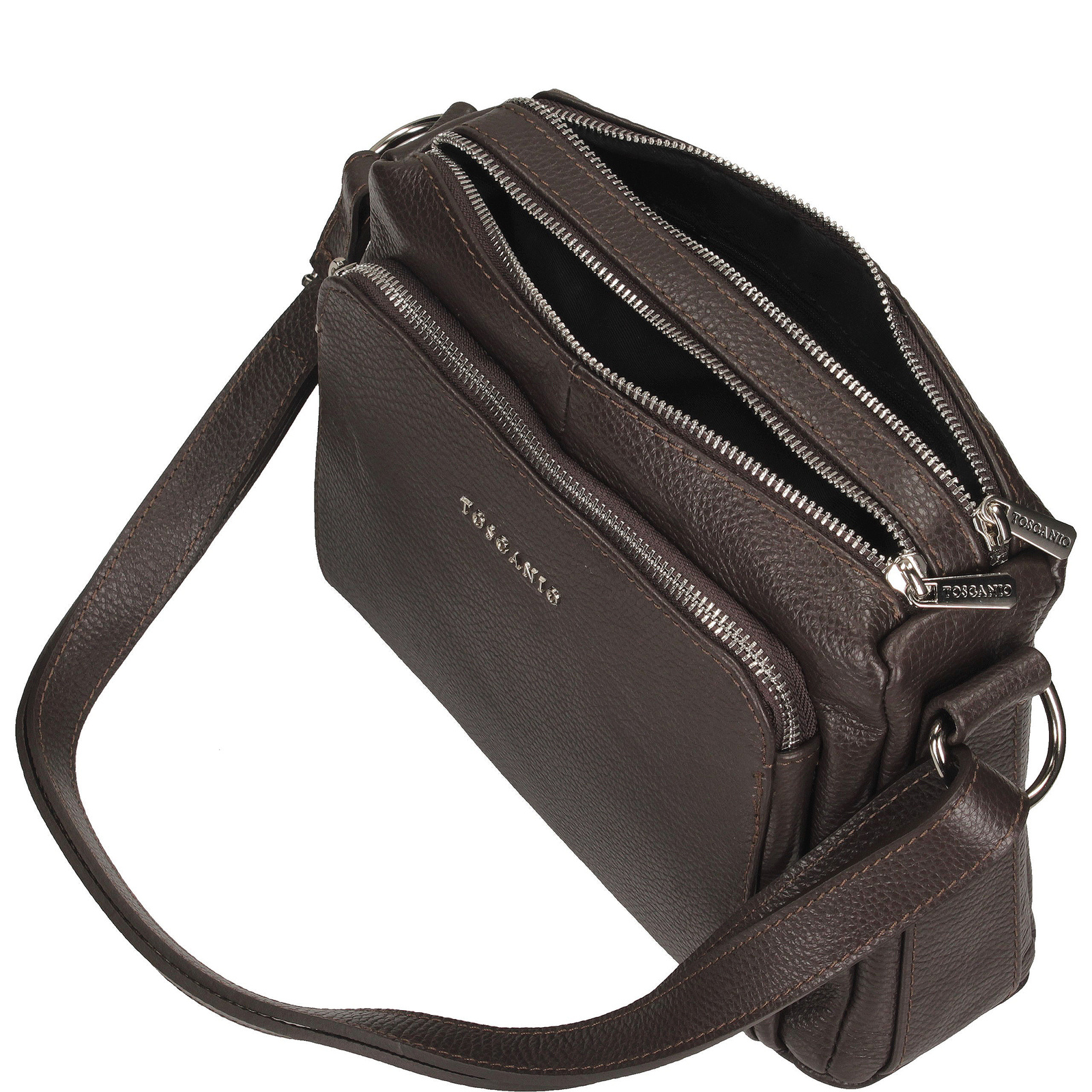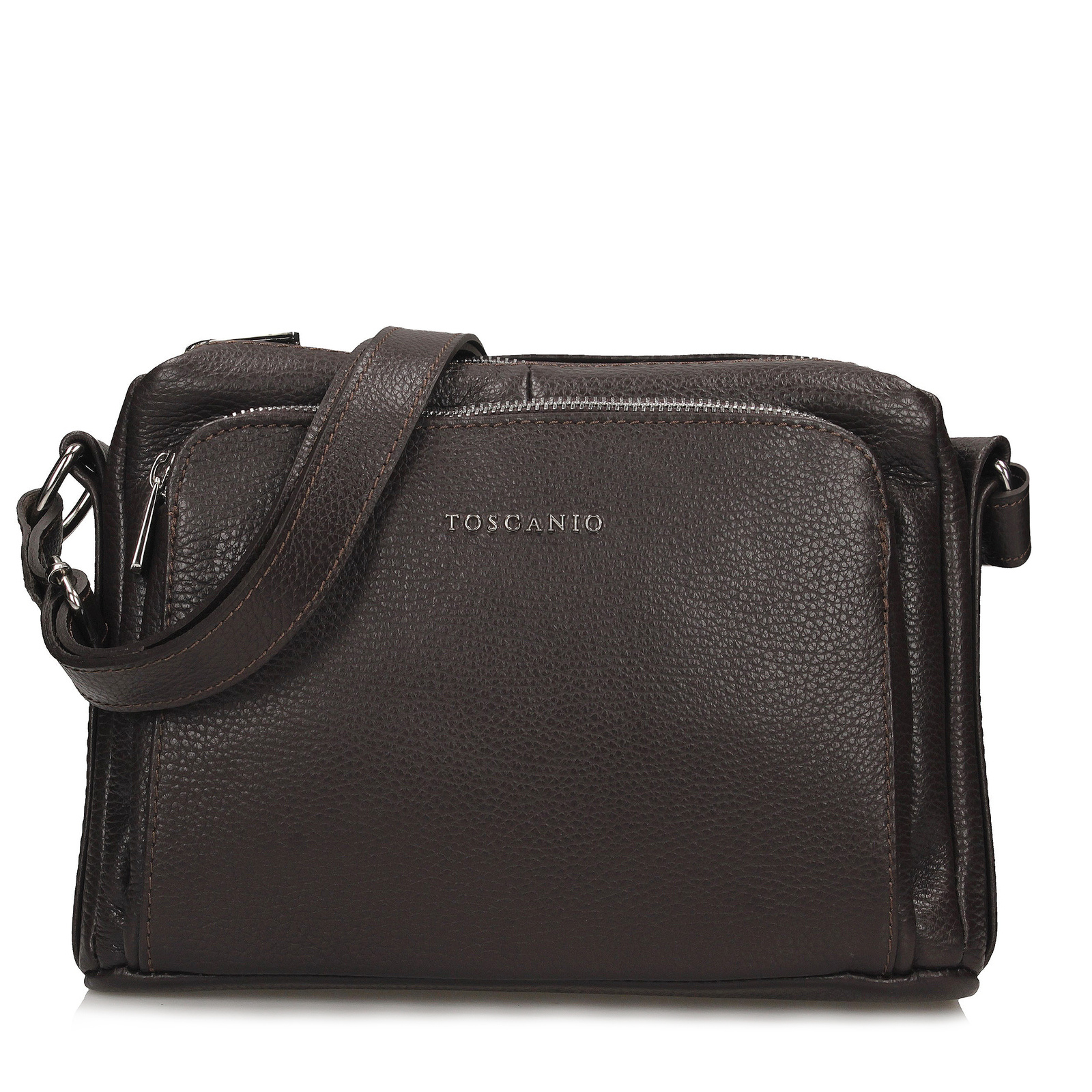 Z srebrnymi, metalowymi zapięciami, i regulowanym paskiem o długości 130 cm, ta torebka zapewnia wygodę i bezpieczeństwo. Jest to idealny wybór dla tych, którzy cenią sobie zarówno styl, jak i praktyczność. Nie pozwól, aby Ci umknęła – dodaj do swojej garderoby tę wyjątkową listonoszkę Toscanio i ciesz się jej pięknem każdego dnia.