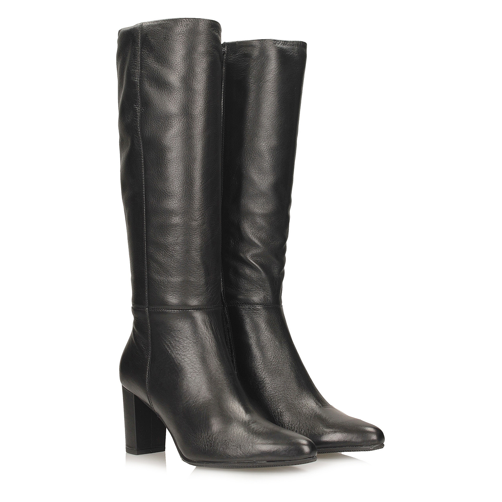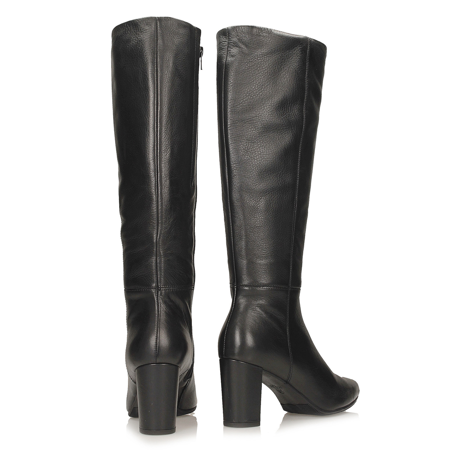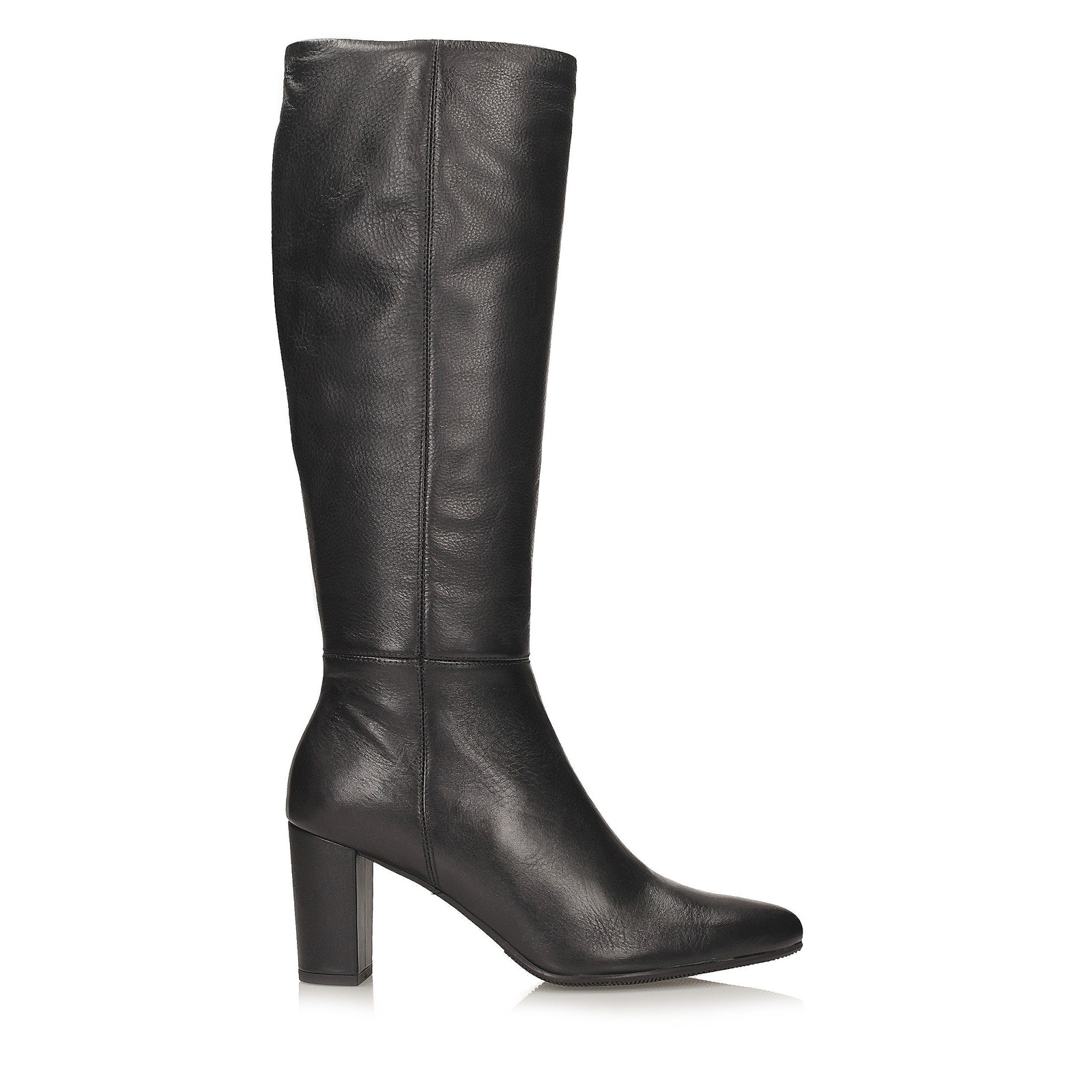 Smukły, szpiczasty nosek dodaje sylwetce lekkości, a stabilny obcas w formie słupka o wysokości 7,5 cm podkreśla kobiecy charakter obuwia, zapewniając jednocześnie komfort noszenia. Kozaki zapinane są na praktyczny zamek, który ułatwia zakładanie i zdejmowanie.