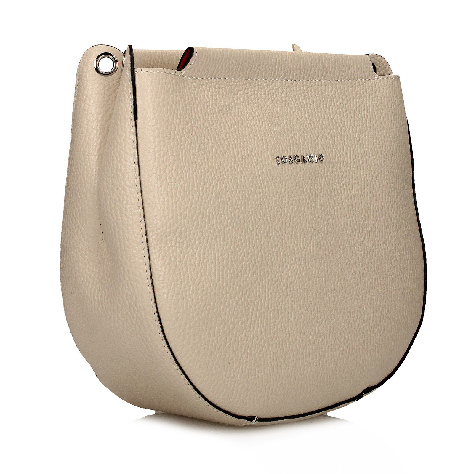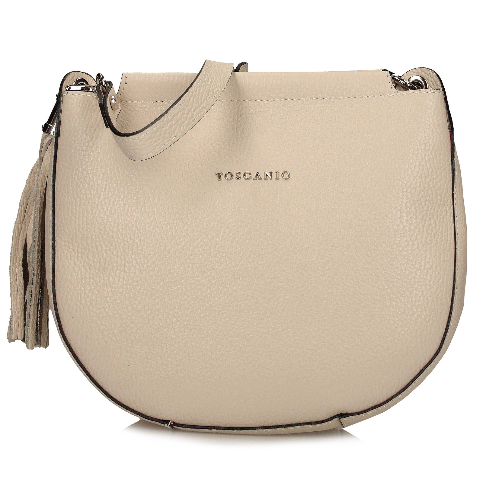 Torebka w formie znana nie od dziś, ale tym razem w odsłonie marki Toscanio bez tradycyjnej klapy. Wygodnie i stylowo zamykana na zamek z dekoracyjnym skórzanym frędzlem na boku. Skóra licowa ze strukturę "grochową " nadaje tej propozycji nowego charakteru- takiego z "pazurkiem" a metalowe elementy wykończeniowe dopełniaj± całość. torebka posiada jedną główna komorę w której wyodrębiono kieszonkę zapinan± na zamek.