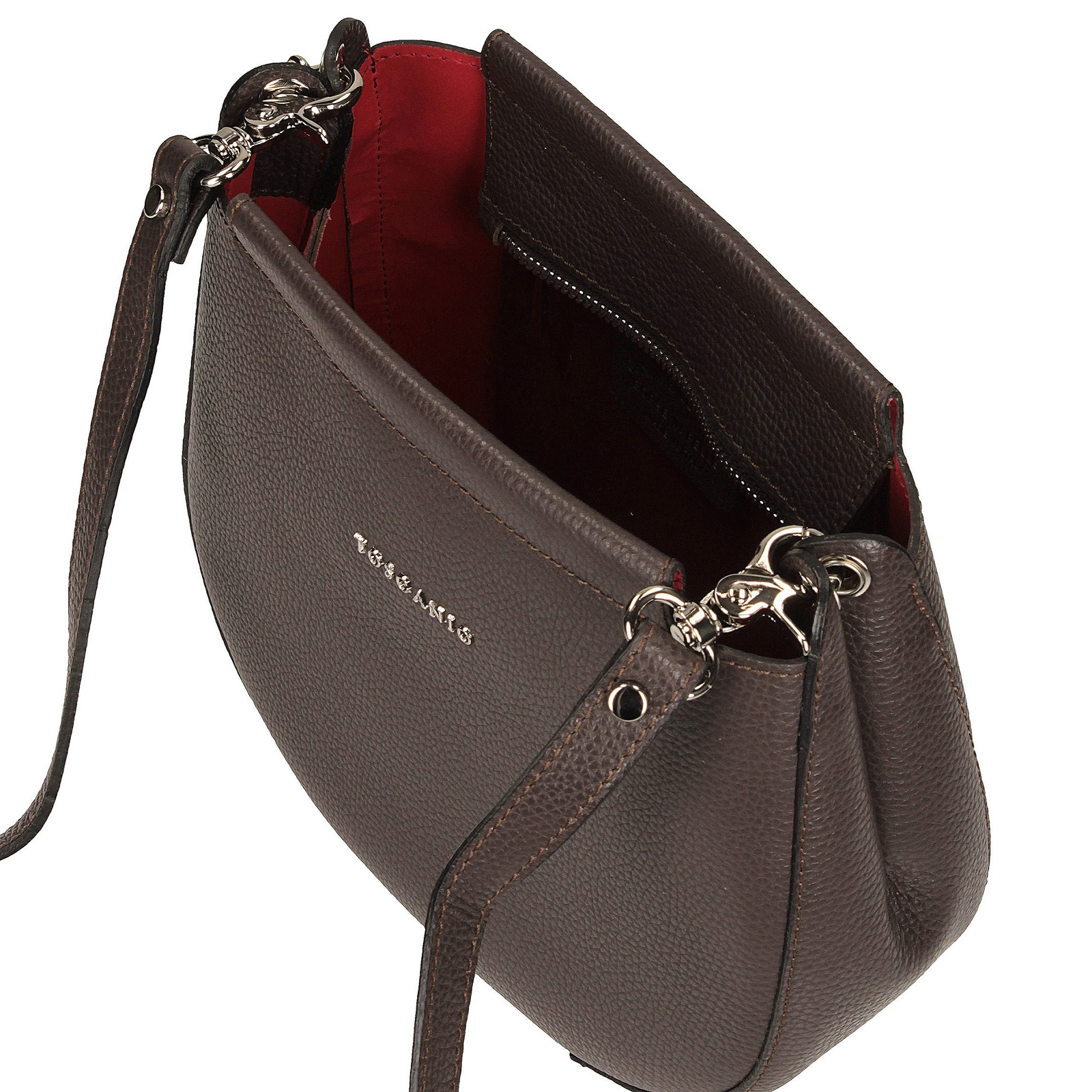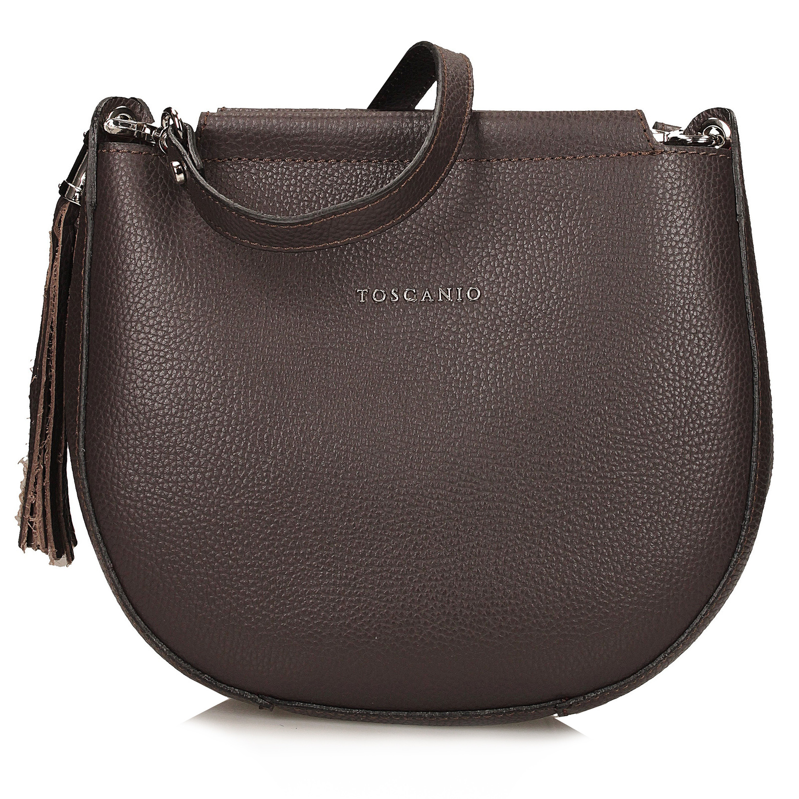 Torebka w formie znana nie od dziś, ale tym razem w odsłonie marki Toscanio bez tradycyjnej klapy. Wygodnie i stylowo zamykana na zamek z dekoracyjnym skórzanym frędzlem na boku. Skóra licowa ze strukturę "grochową " nadaje tej propozycji nowego charakteru- takiego z "pazurkiem" a metalowe elementy wykończeniowe dopełniaj± całość. torebka posiada jedną główna komorę w której wyodrębiono kieszonkę zapinan± na zamek.