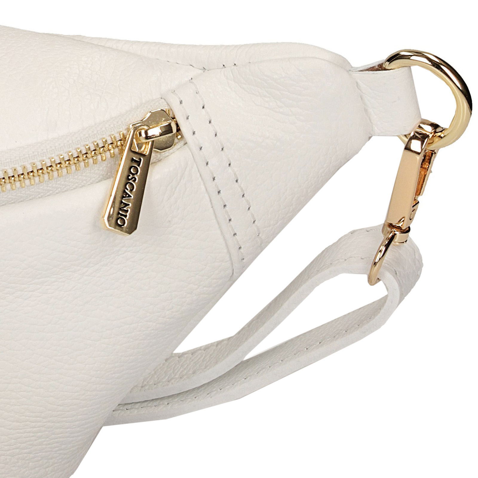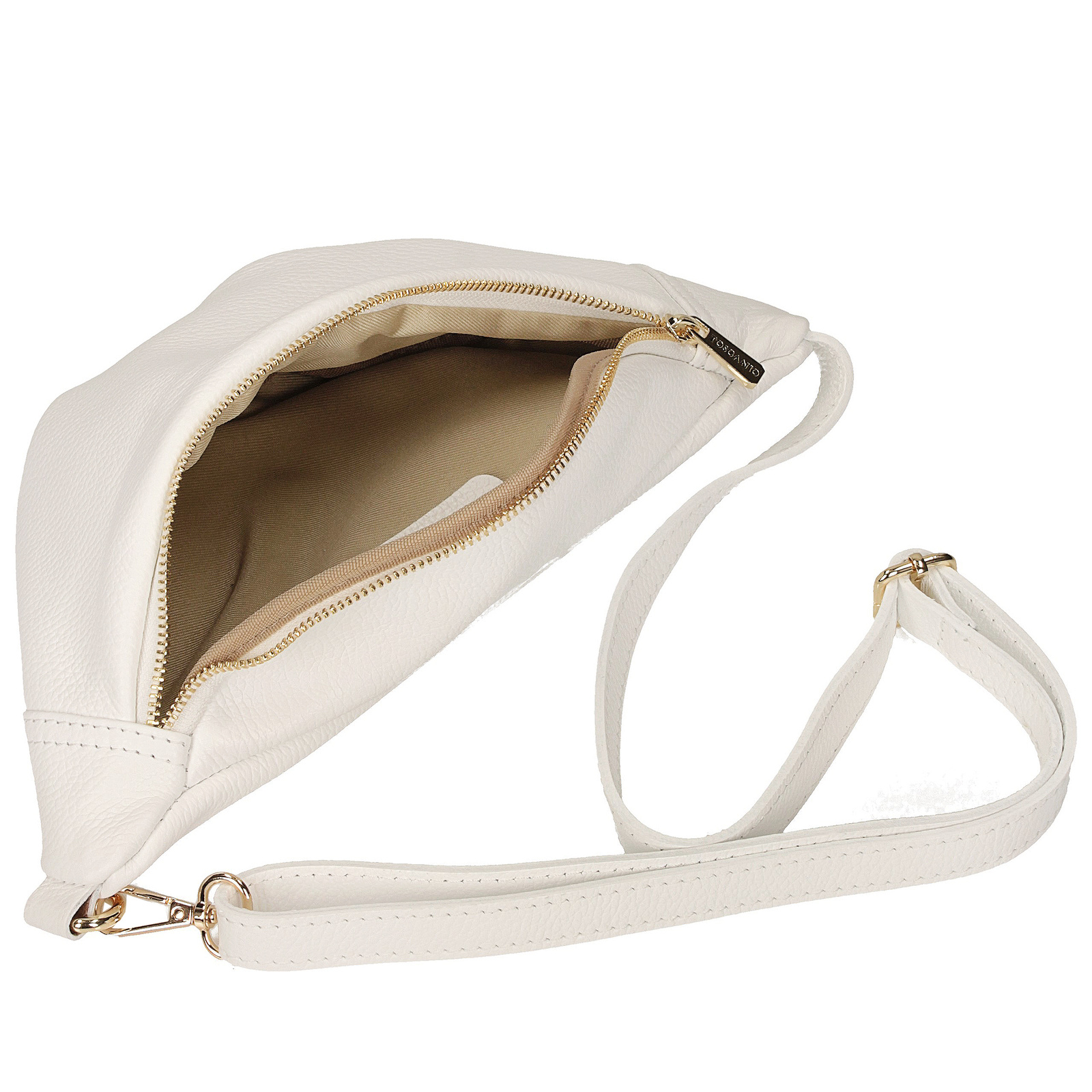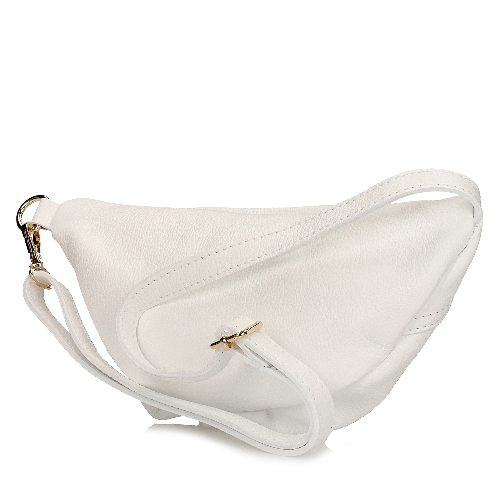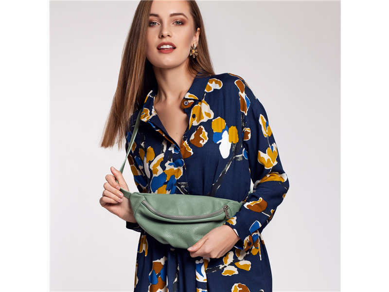 Saszetka wykonana z naturalnej,groszkowej skóry,wyposażona w jedną główną komorę zamykaną za pomocą zamka i jedną mniejszą kieszonkę wewnątrz zapinaną w ten sam sposób. Produkt zawieszony jest na regulowanym pasku.