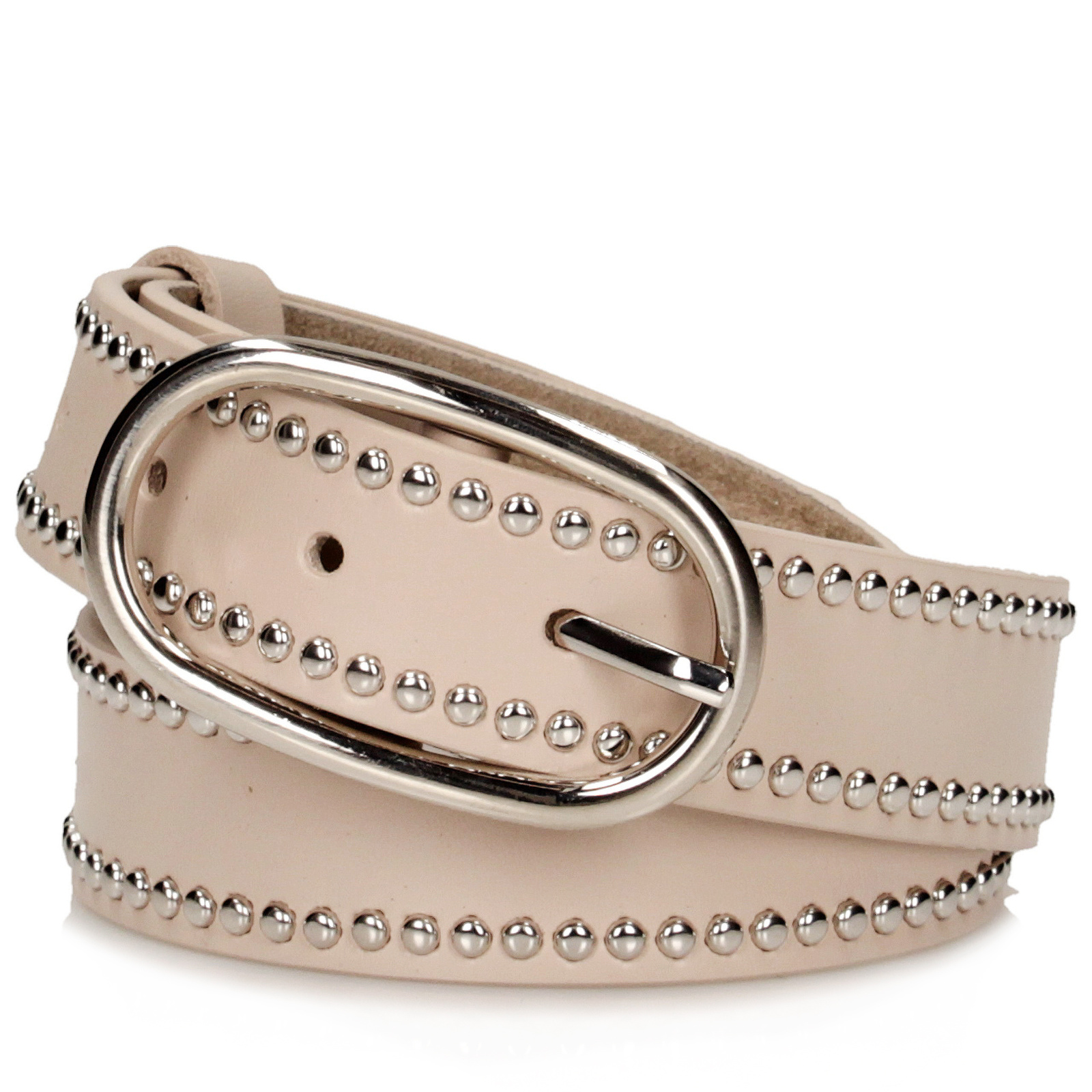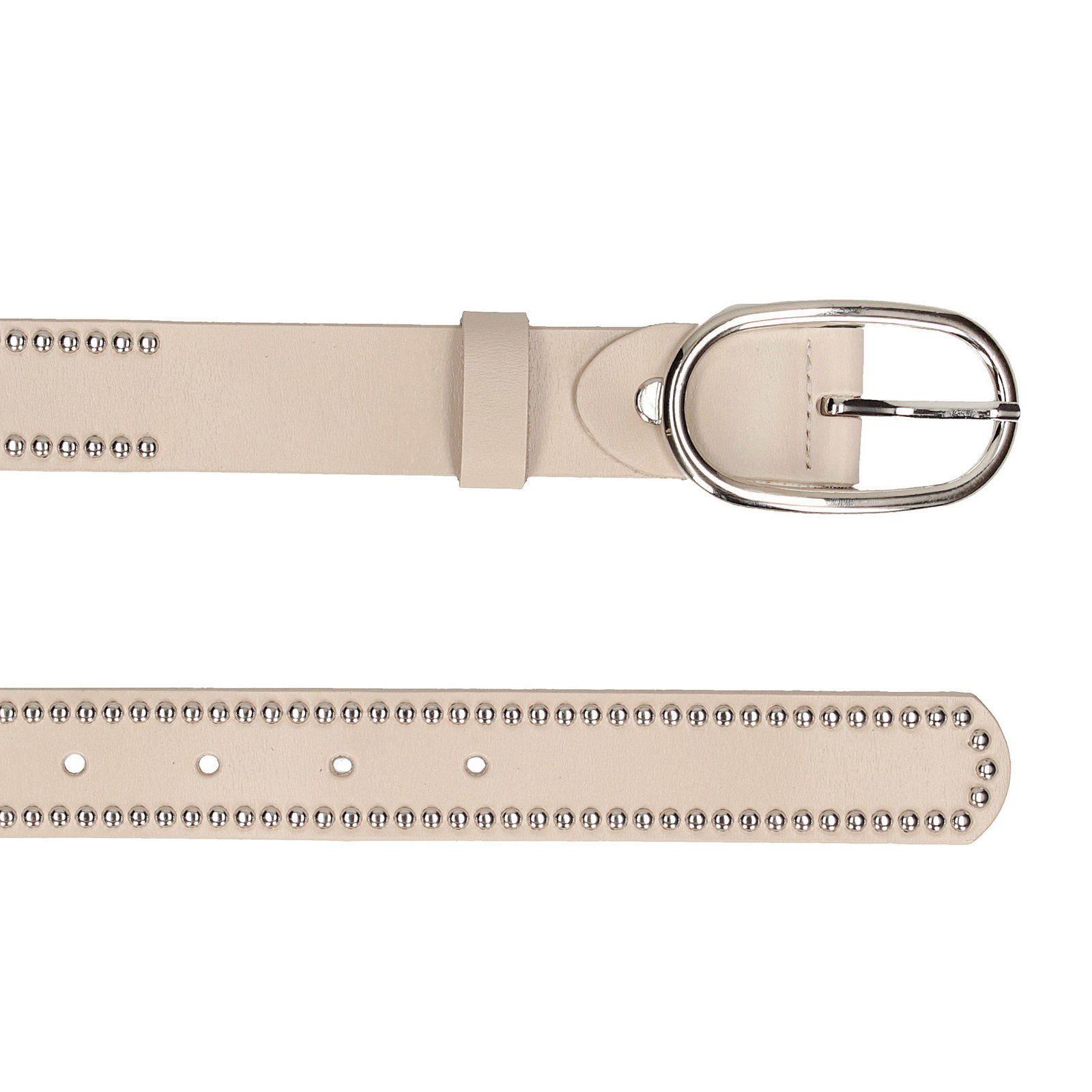 Stylowy pasek Toscanio w odcieniu beżowym to połączenie kobiecej elegancji i wyrazistych detali. Wykonany z wysokiej jakości skóry naturalnej, zarówno wierzch, jak i spód, zapewniają trwałość i komfort noszenia. Pasek ma 3 cm szerokości i został ozdobiony subtelnymi dżetami, które nadają mu charakteru. Całość dopełnia efektowna, owalna klamra w kolorze srebra. Doskonale uzupełni zarówno klasyczne jeansy, jak i stylizacje z sukienką w roli głównej.