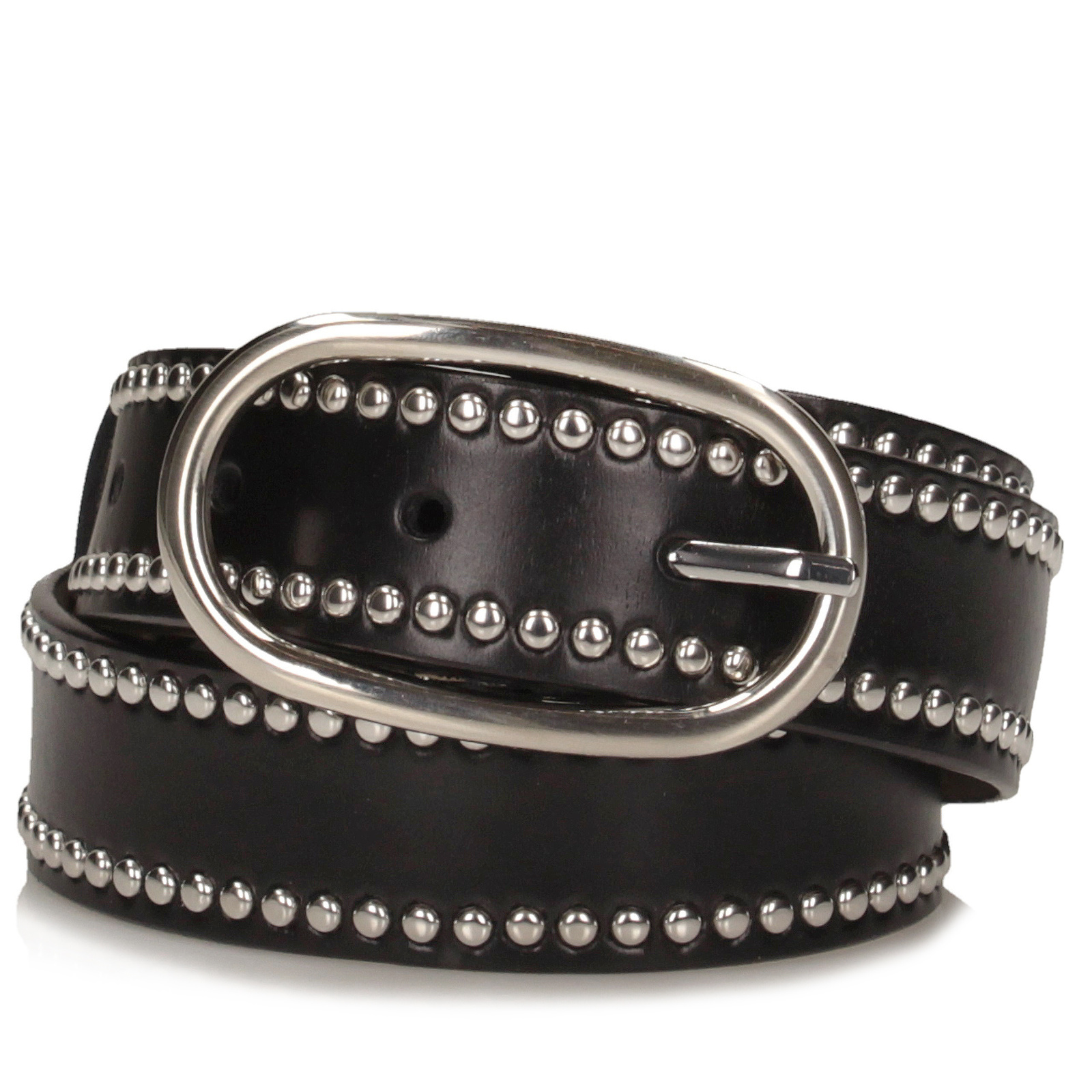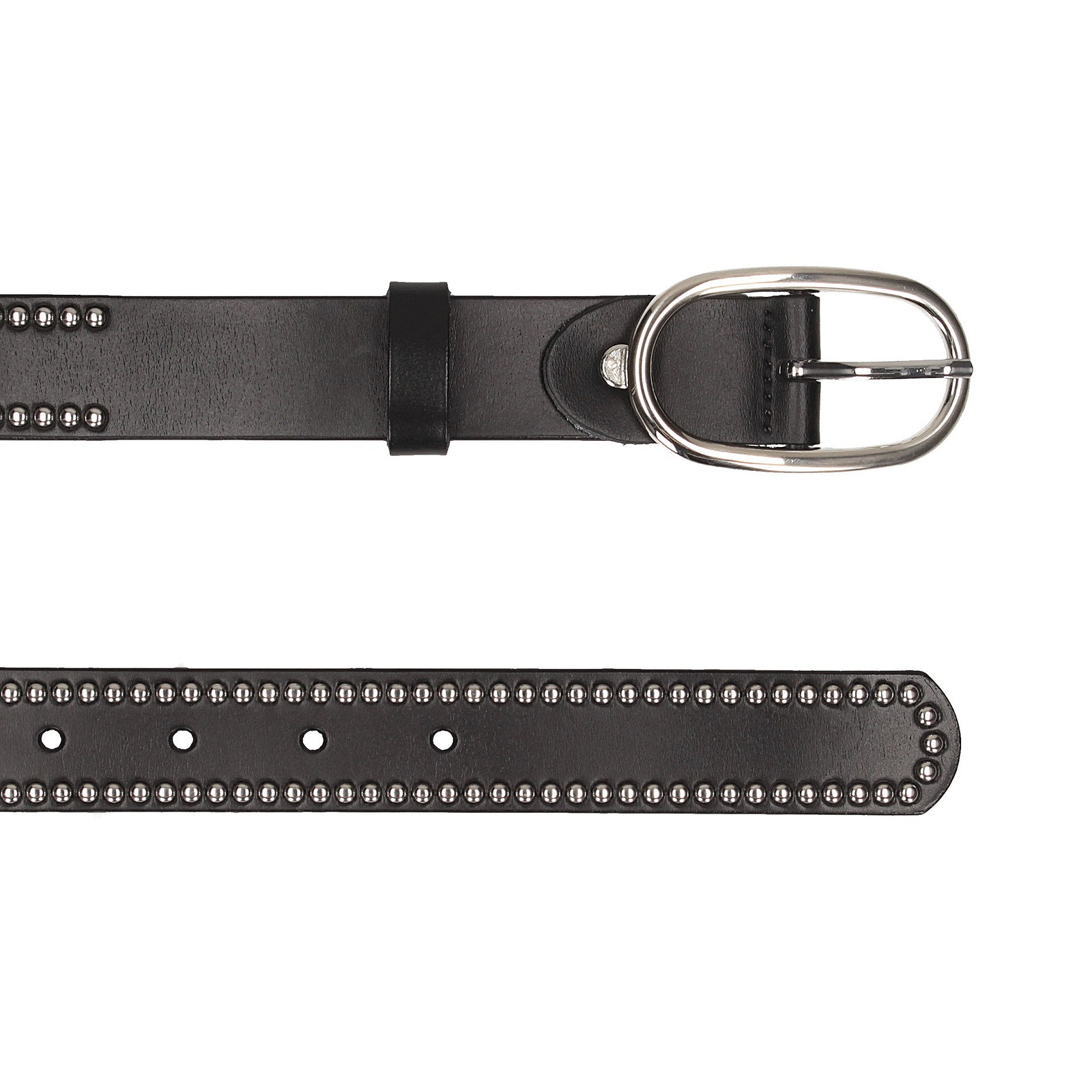 Stylowy pasek do spodni marki Toscanio wykonany z wysokiej jakości skóry naturalnej to elegancki dodatek, który podkreśli charakter każdej stylizacji. Model w klasycznym czarnym kolorze został ozdobiony dekoracyjnymi dżetami oraz efektowną, owalną klamrą w kolorze srebra. Pasek ma szerokość 3 cm, dzięki czemu doskonale pasuje zarówno do jeansów, jak i bardziej kobiecych stylizacji. Skórzana podszewka zapewnia trwałość i komfort noszenia.