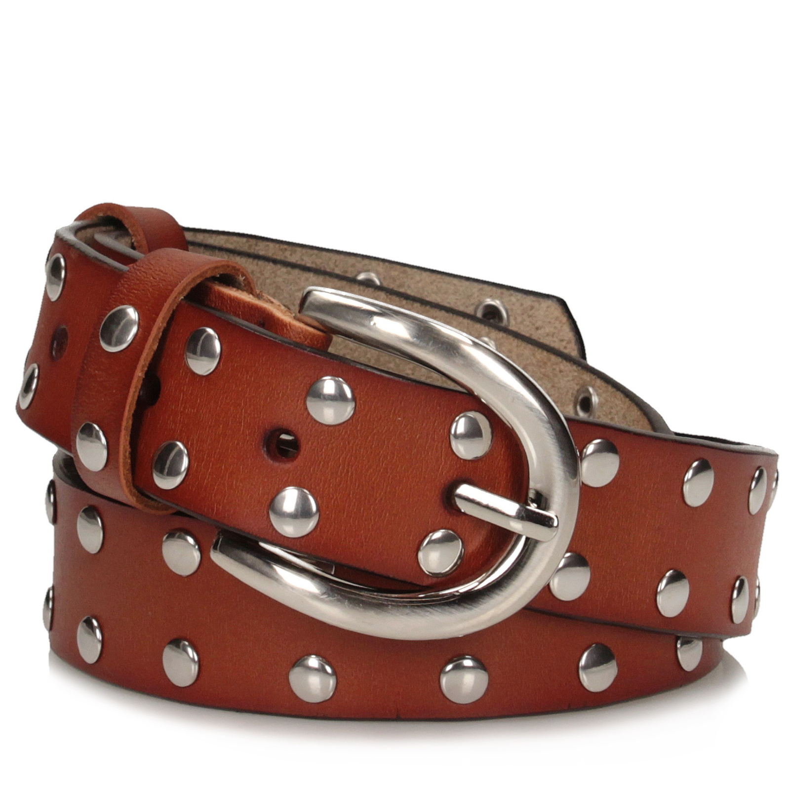 Rudy pasek damski marki Toscanio to stylowy akcent, który nada charakteru każdej stylizacji. Wykonany z wysokiej jakości naturalnej skóry, ozdobiony subtelnymi dżetami rozmieszczonymi na całej długości, łączy w sobie klasykę z nutą rockowego pazura. Ma szerokość 2 cm, co czyni go idealnym do spodni z wąskimi szlufkami. Srebrna, owalna klamra podkreśla jego elegancki charakter, a precyzyjne wykończenie gwarantuje trwałość i komfort noszenia. To doskonały wybór dla kobiet, które cenią detale i lubią wyróżniać się dodatkami.