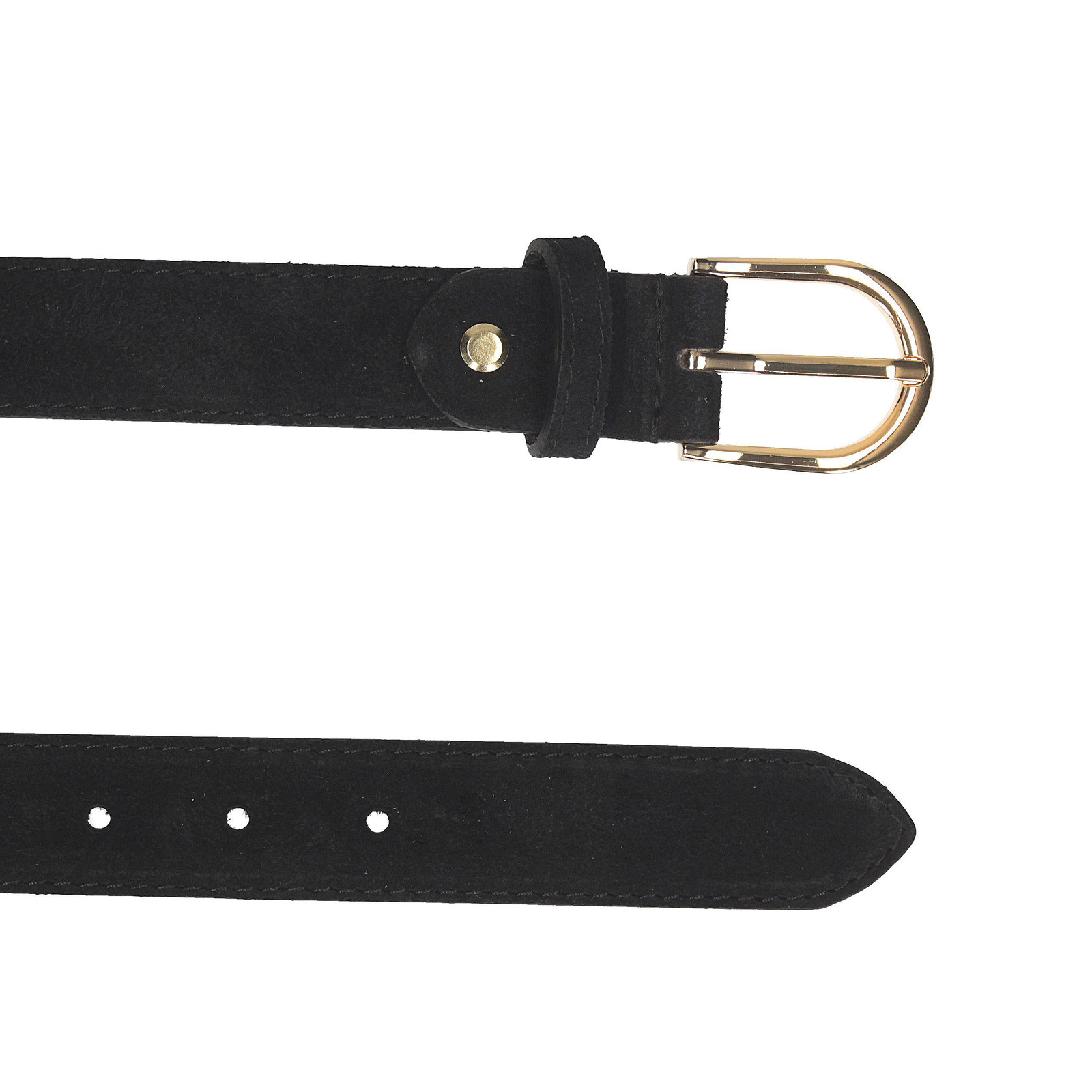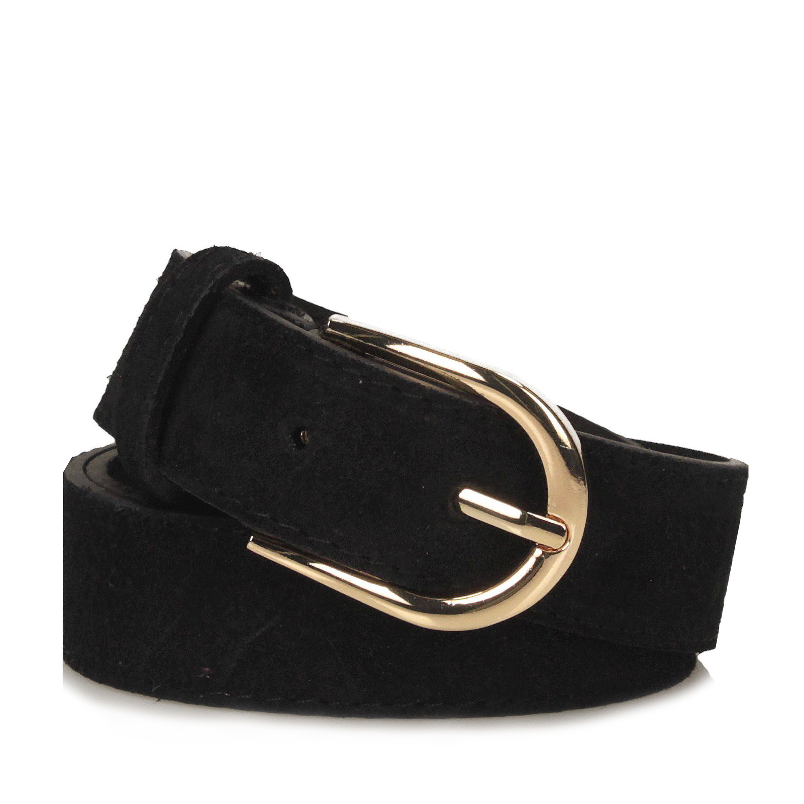 Model ma szerokość 3 cm, dzięki czemu doskonale sprawdza się w sukienkach, spodniach i spódnicach, subtelnie podkreślając talię lub dopełniając całość stroju. Złota klamra dodaje mu eleganckiego wykończenia i stanowi delikatny, biżuteryjny akcent, który harmonijnie współgra z czarnym zamszem.