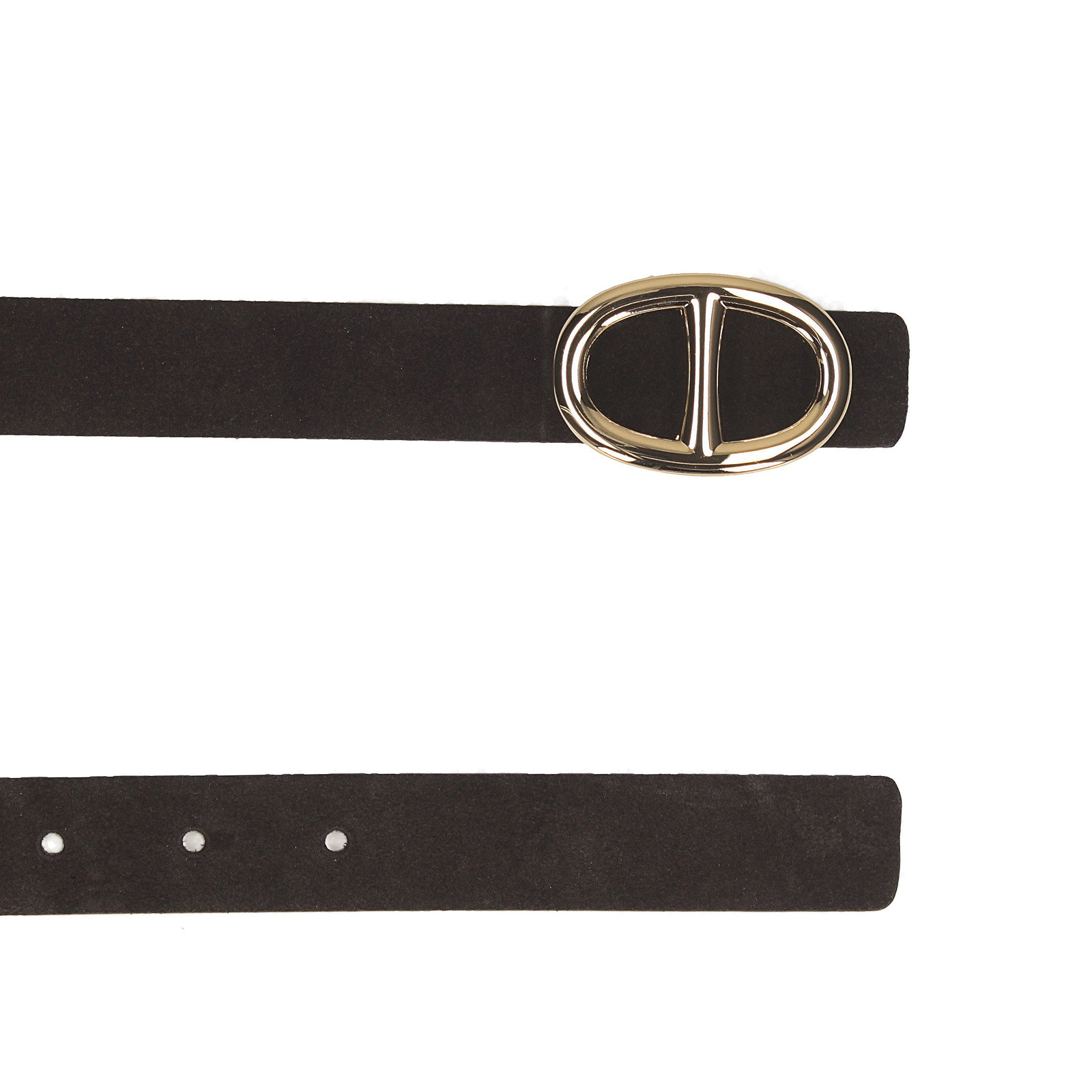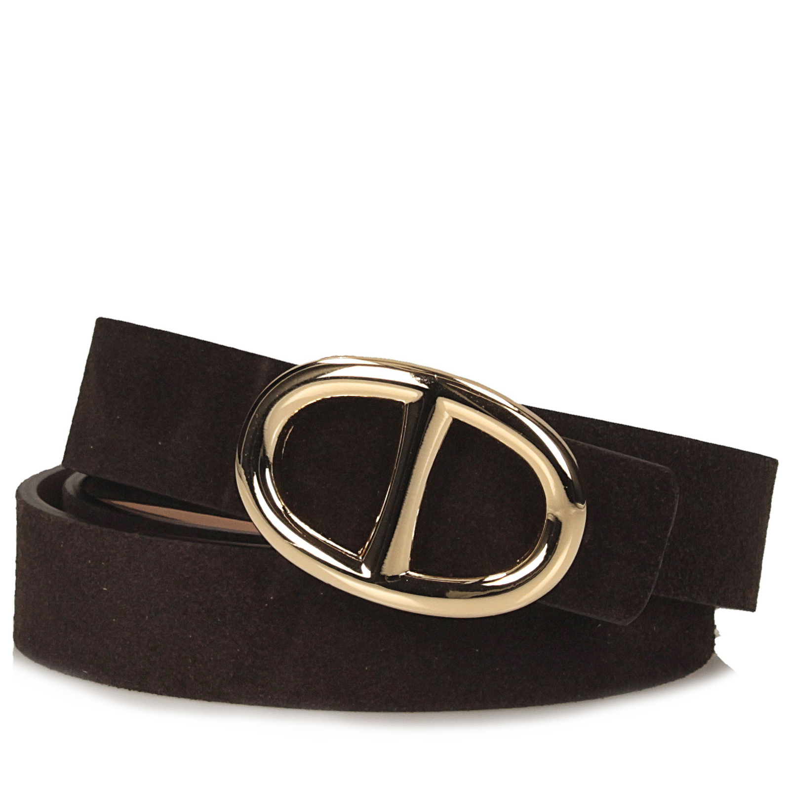 Model ma szerokość 3 cm, dzięki czemu świetnie pasuje zarówno do eleganckich spodni, jak i codziennych stylizacji. Uroku dodaje mu tradycyjna, owalna klamra w kolorze złota, która pięknie kontrastuje z czernią zamszu i nadaje całości szykownego charakteru.
