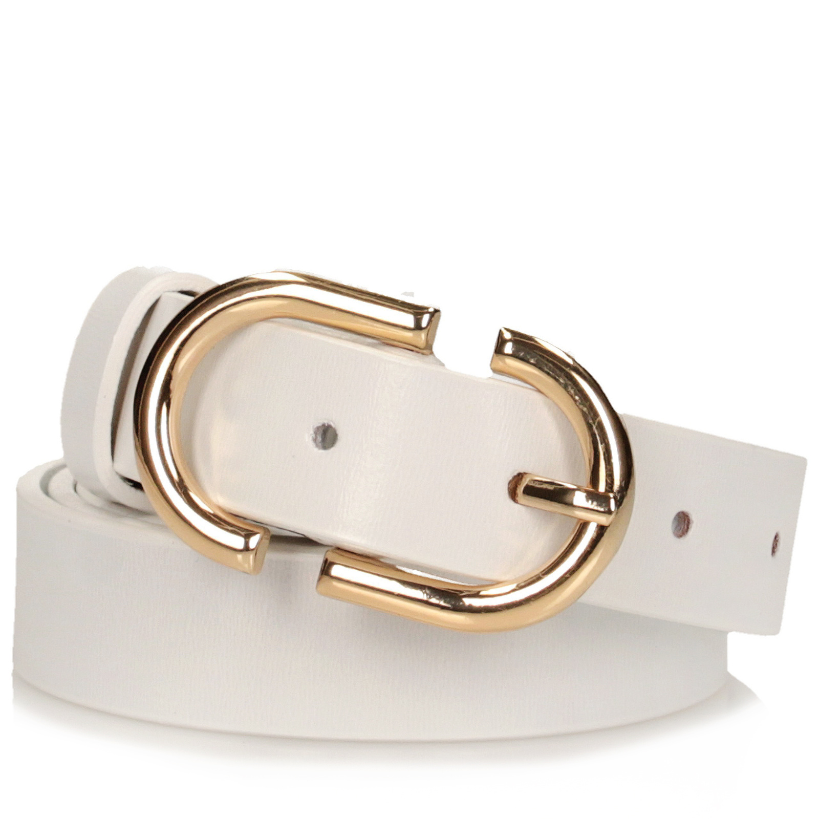 Biały pasek damski marki Toscanio to elegancki dodatek wykonany w całości z wysokiej jakości skóry naturalnej. Ma klasyczną szerokość 3 cm, dzięki czemu doskonale sprawdzi się zarówno w jeansach, jak i w bardziej kobiecych stylizacjach. Całość uzupełnia złota, owalna klamra, która subtelnie przyciąga wzrok i dodaje szyku. Idealny wybór dla kobiet ceniących proste, ale efektowne akcesoria.