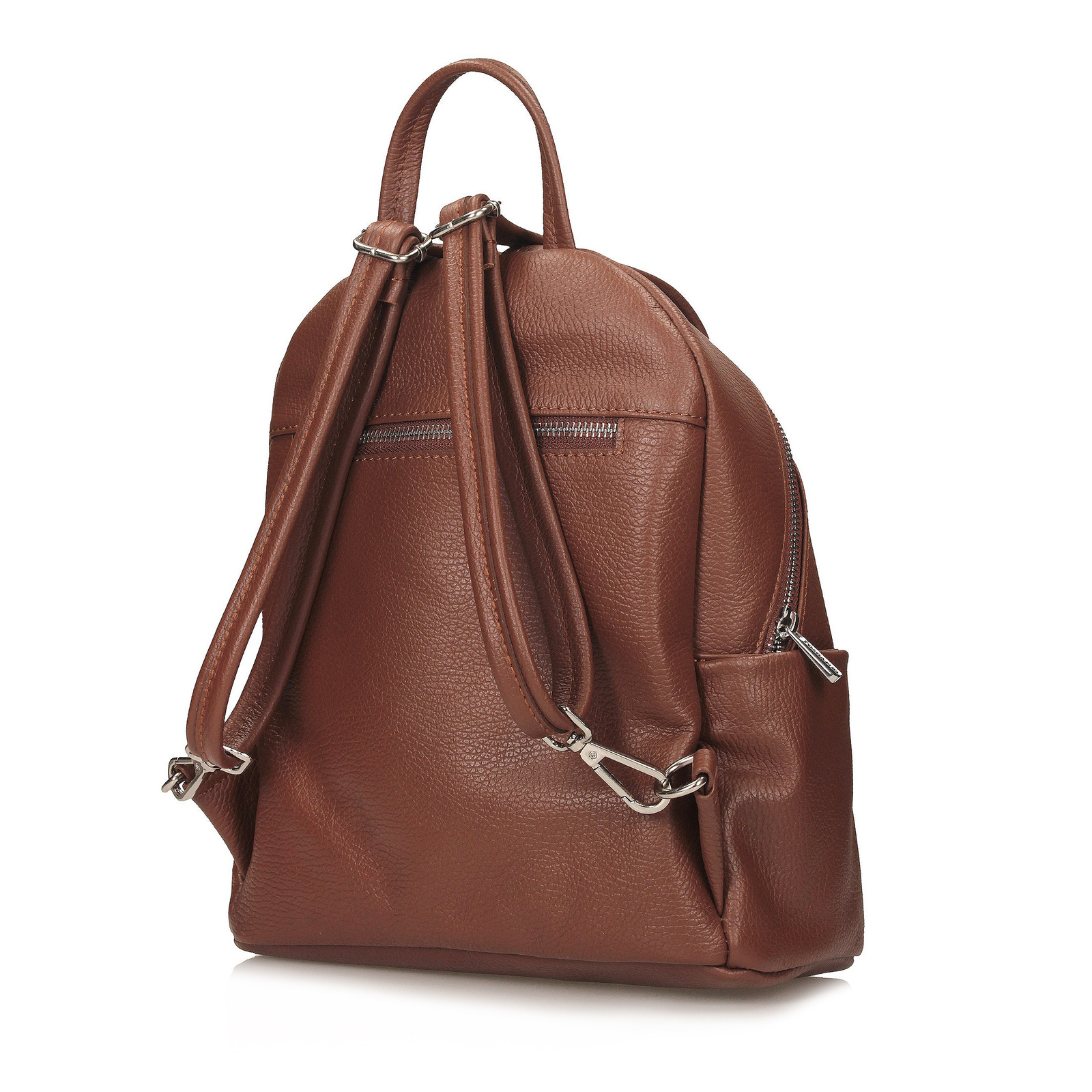 Plecak Toscanio w kolorze brązowym to idealne połączenie elegancji, funkcjonalności i wysokiej jakości wykonania. Wykonany z naturalnej skóry, prezentuje się ponadczasowo i pasuje do wielu codziennych stylizacji. Brązowy odcień nadaje mu klasycznego charakteru, dzięki czemu sprawdzi się zarówno w casualowych, jak i bardziej eleganckich zestawieniach.
