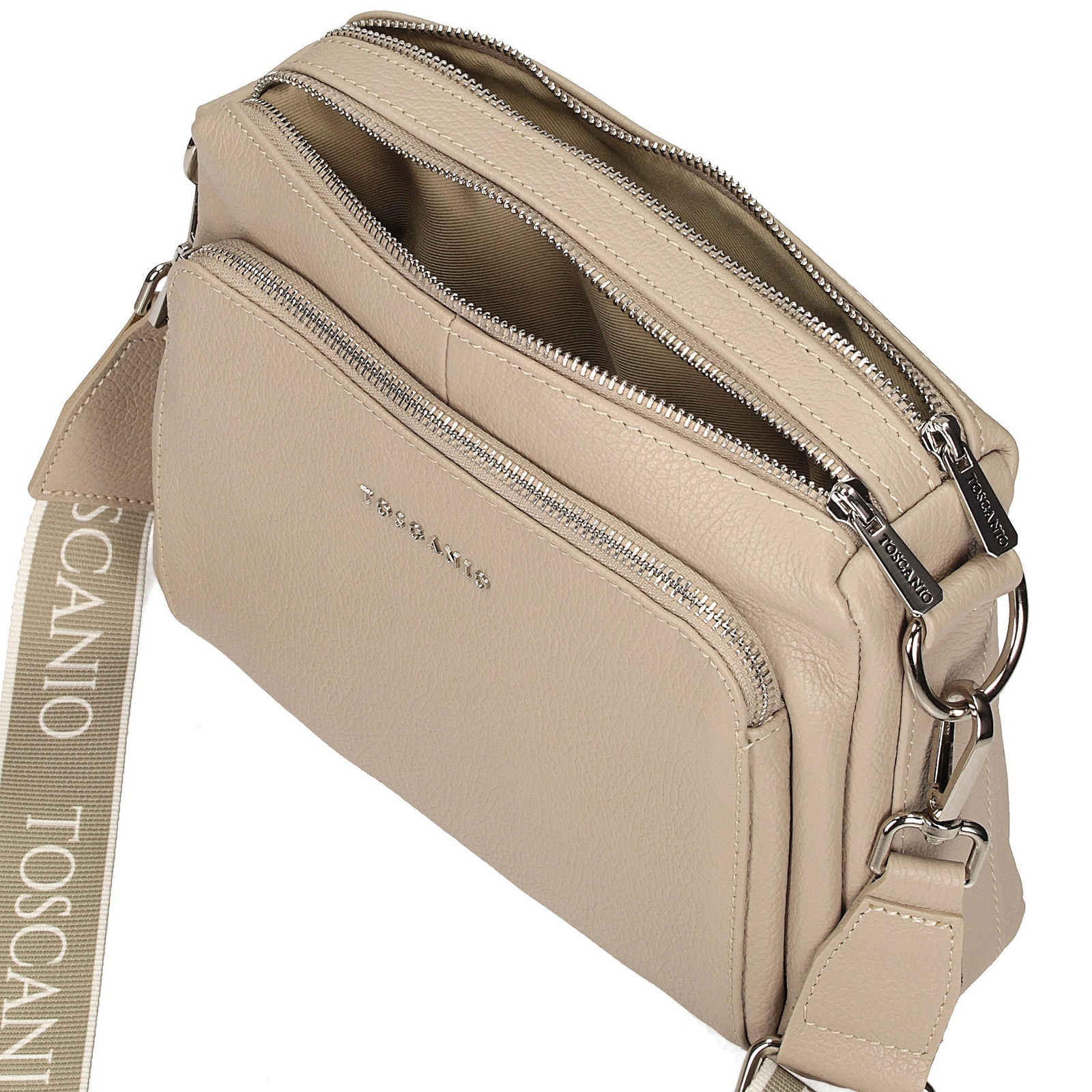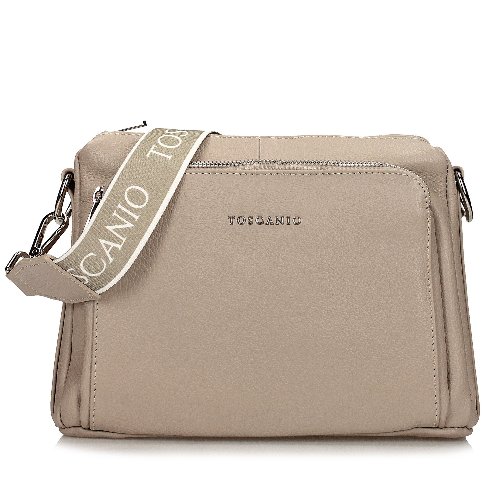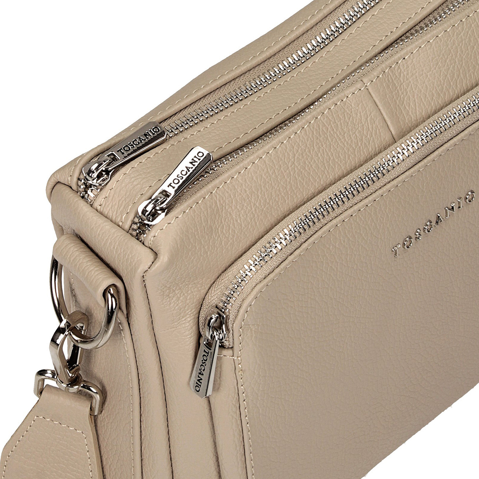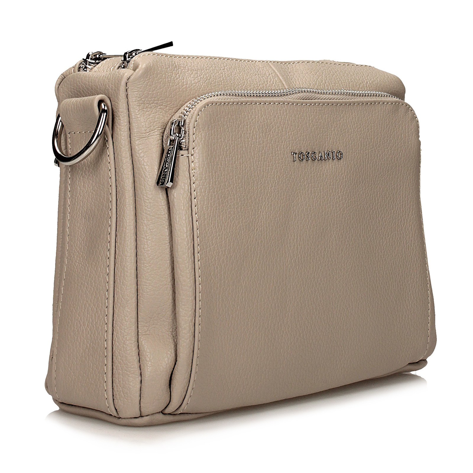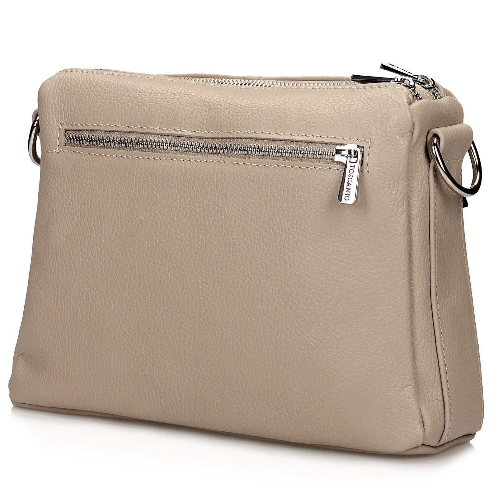 Torebka wykonana z naturalnej, groszkowej skóry, wyposażona w dwie główne komory, jedna z nich