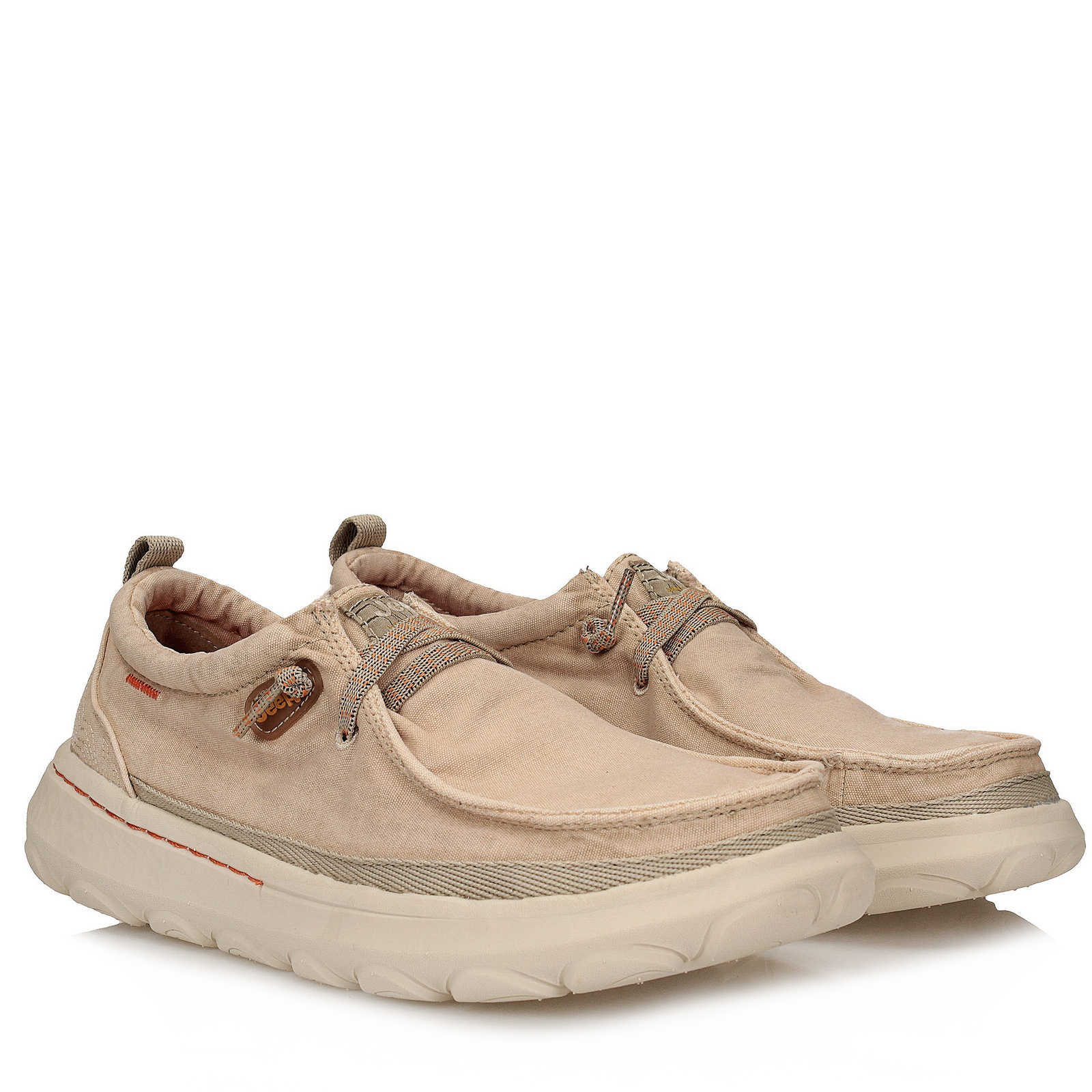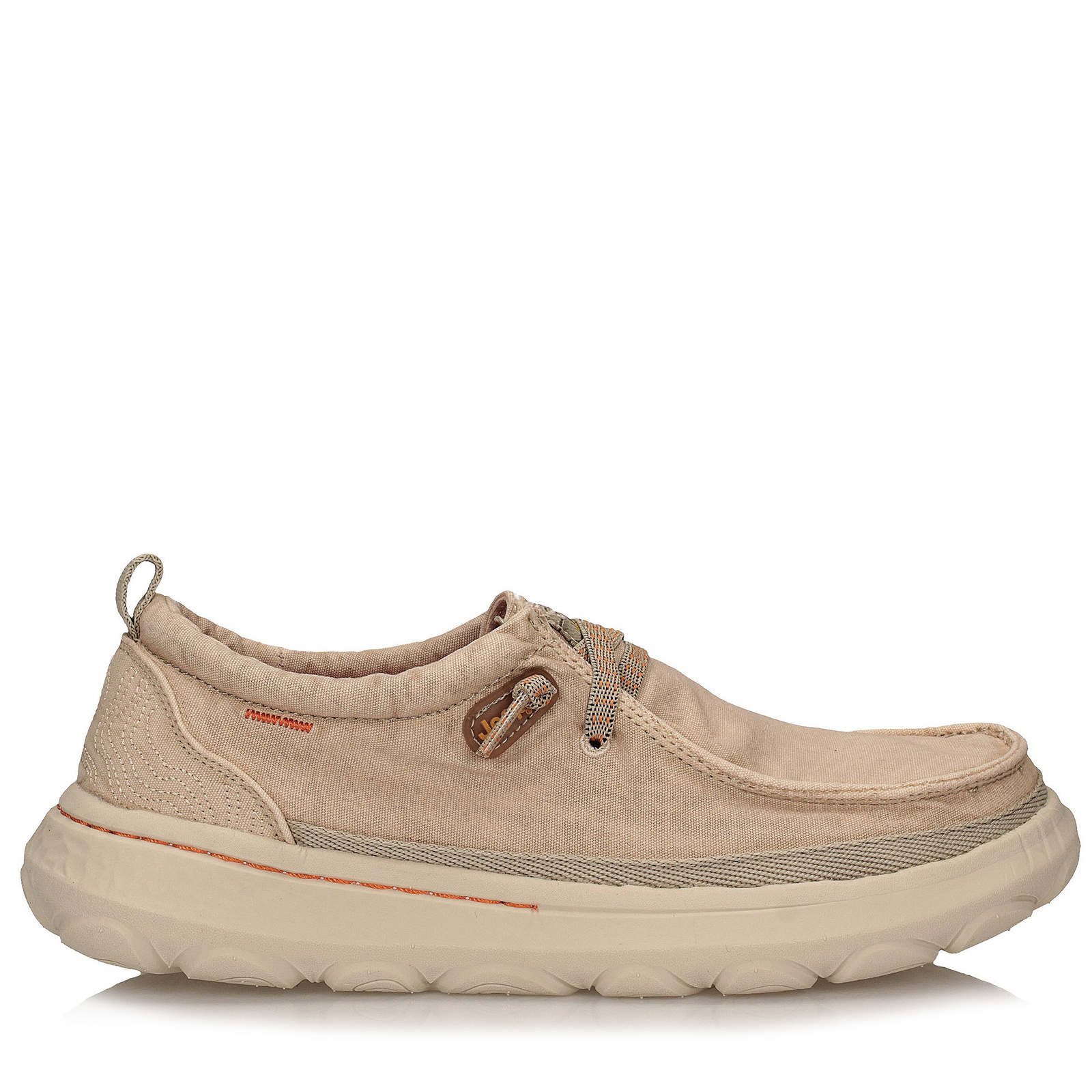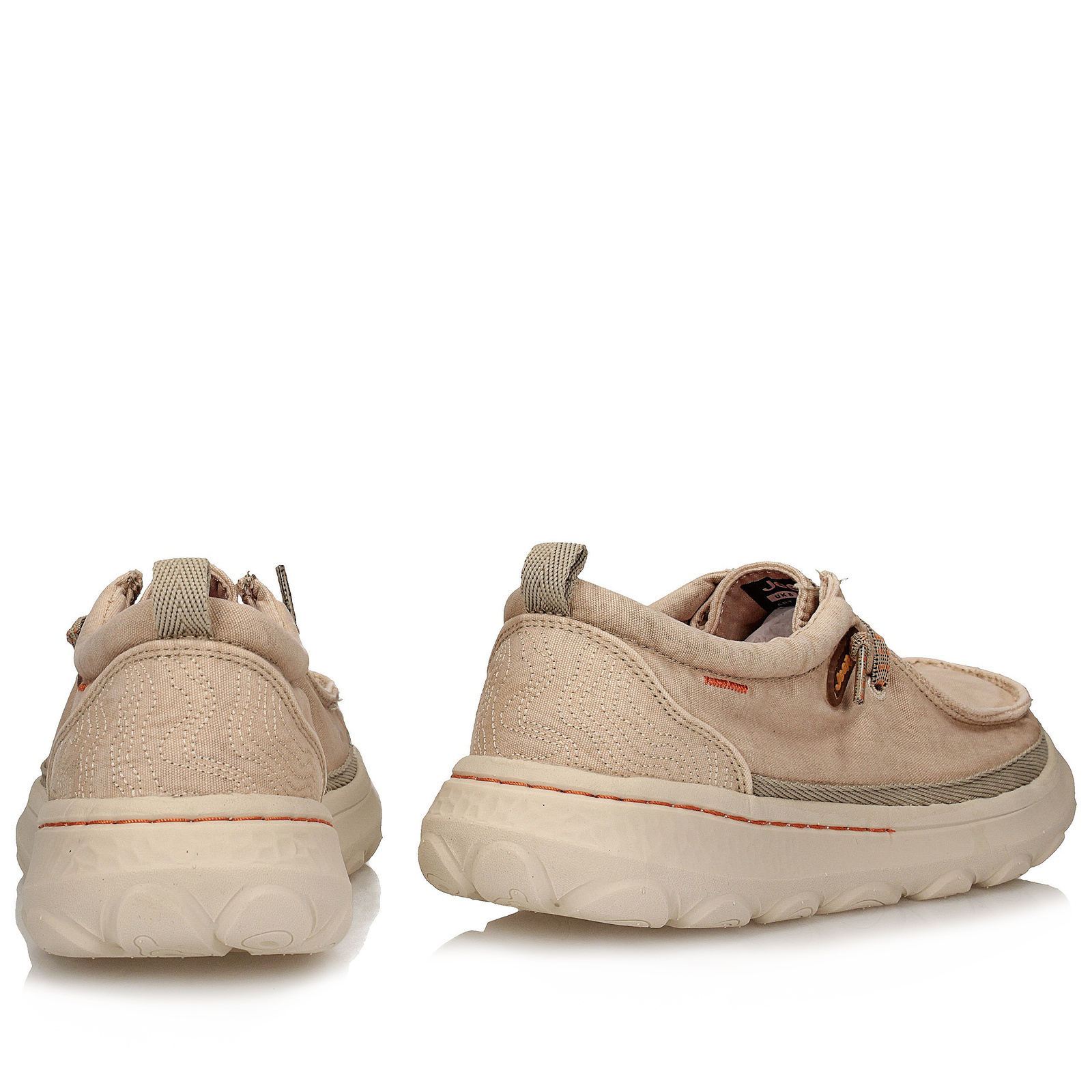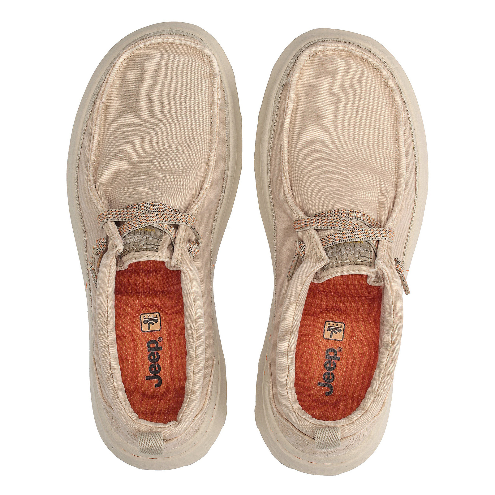 Beżowe półbuty męskie marki Jeep to idealne obuwie na lato – lekkie, przewiewne i wygodne. Wykonane z oddychającej tkaniny, zapewniają komfort nawet w upalne dni. Wsuwana konstrukcja ułatwia szybkie zakładanie, a klasyczny, zaokrąglony nosek dodaje całości uniwersalnego charakteru. Dzięki niskiemu, 2-centymetrowemu obcasowi oraz elastycznej podeszwie z tworzywa sztucznego, buty świetnie sprawdzą się zarówno na co dzień, jak i podczas weekendowych wyjść.