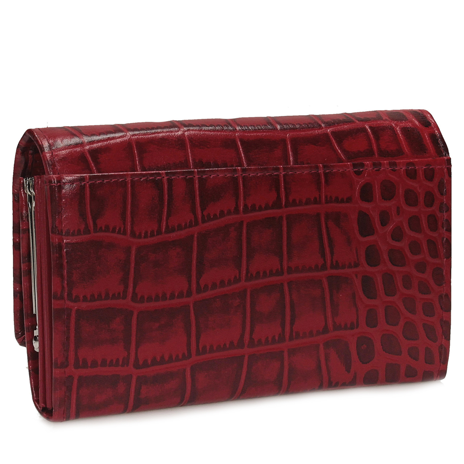 Czerwony portfel Toscanio to stylowy i efektowny model wykonany z wysokiej jakości skóry naturalnej o tłoczeniu inspirowanym fakturą skóry krokodyla. Wyrazista, intensywna czerwień dodaje mu charakteru i sprawia, że staje się eleganckim, a jednocześnie odważnym dodatkiem, który pięknie wyróżnia się w torebce. Portfel ma wygodne i praktyczne wymiary — 16 cm szerokości, 10 cm wysokości i 3 cm głębokości — dzięki czemu jest pojemny, ale pozostaje poręczny na co dzień.