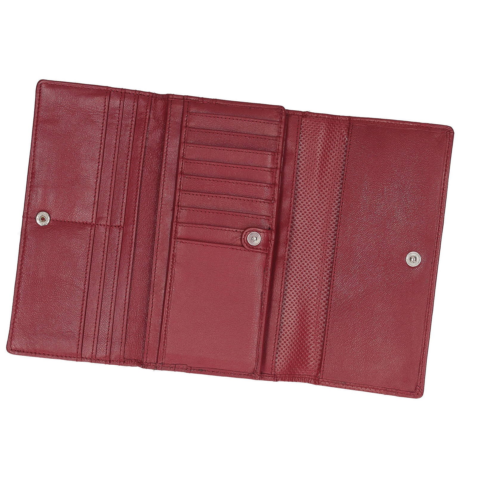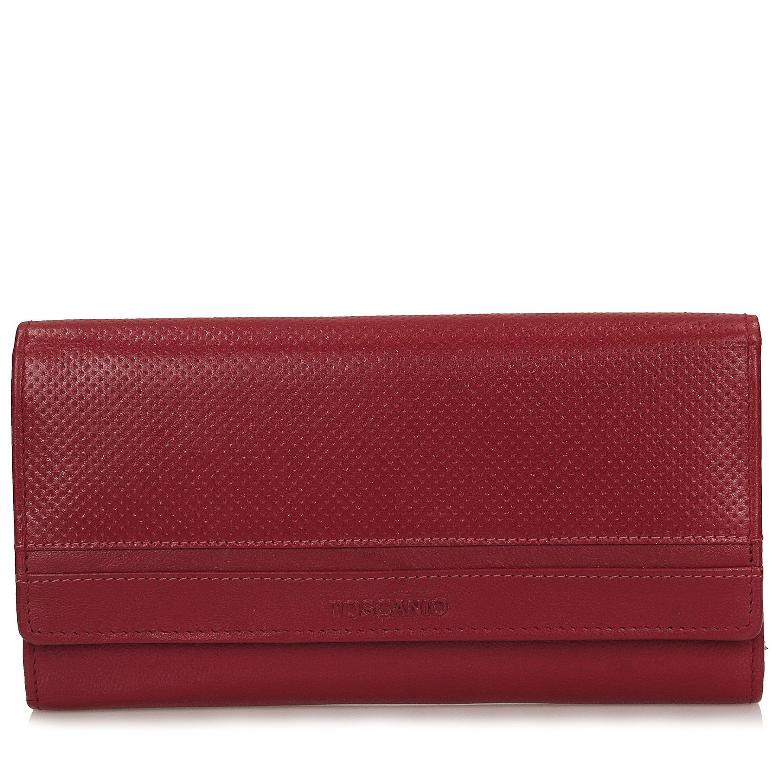Elegancki portfel damski Toscanio w kolorze czerwonym to połączenie klasy i wyrazistego stylu. Wykonany w całości z wysokiej jakości skóry naturalnej, zachwyca precyzją wykonania oraz eleganckim, ponadczasowym designem. Jego ozdobą jest perforowana klapka, która dodaje całości lekkości i nowoczesnego charakteru.