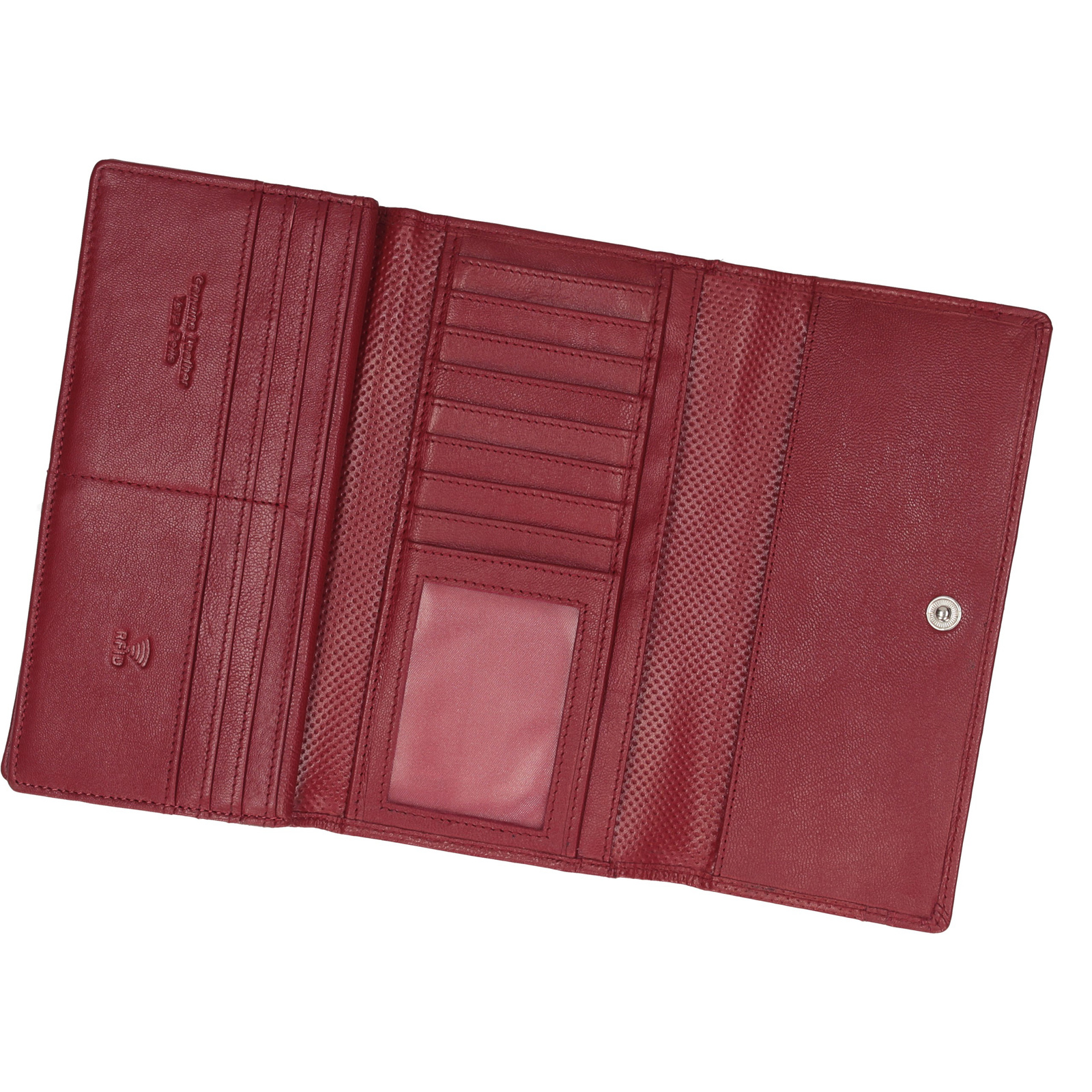 Portfel ma kompaktowe wymiary (13 × 10 × 3 cm), a jednocześnie oferuje dużą funkcjonalność – 12 przegródek wewnętrznych umożliwia wygodne przechowywanie kart, banknotów i dokumentów. Dodatkowa komora na monety zamykana jest na solidny zamek, który chroni zawartość.
