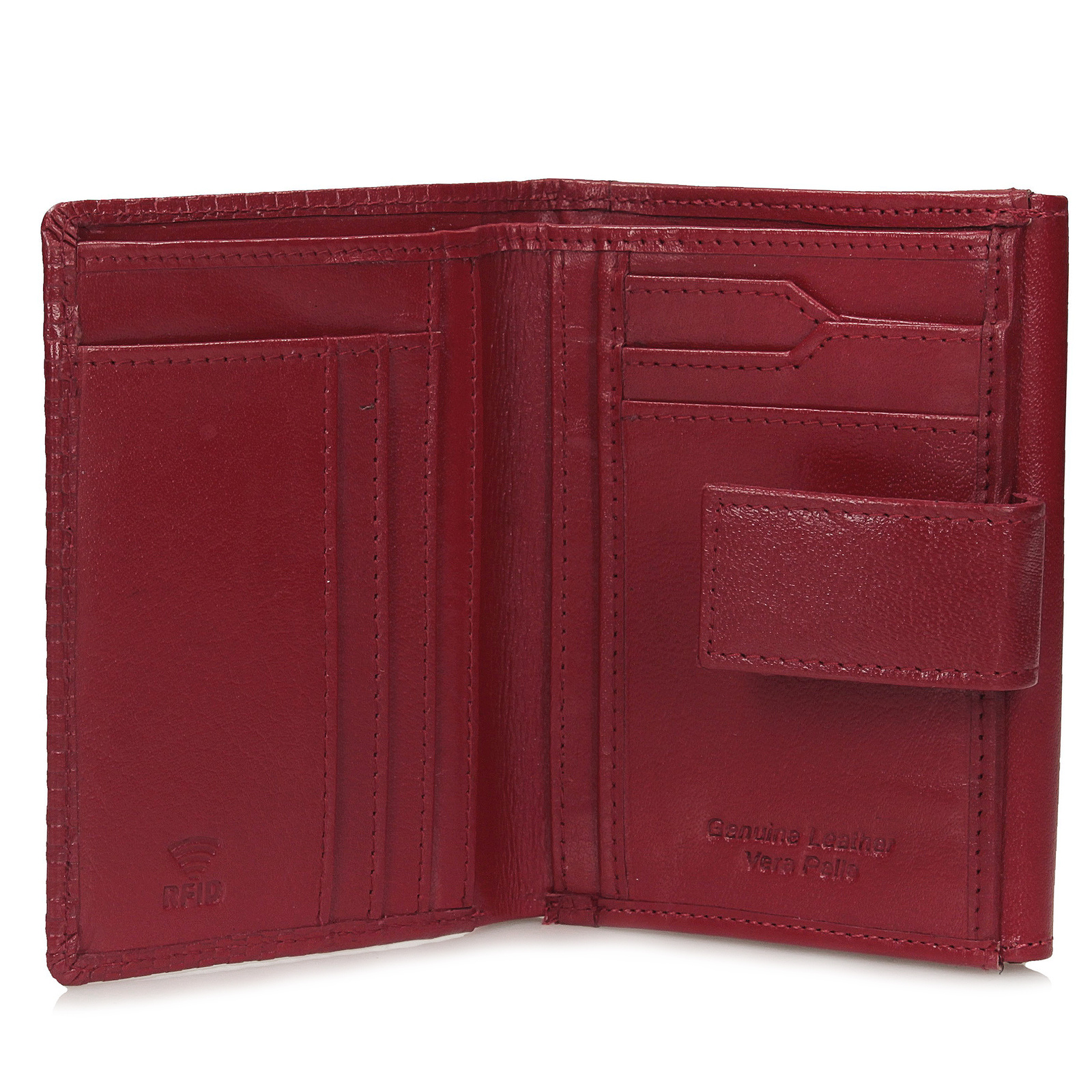 Czerwony portfel marki Toscanio to połączenie klasyki i kobiecej elegancji w intensywnym, wyrazistym odcieniu. Wykonany w całości z naturalnej skóry, zarówno na zewnątrz, jak i wewnątrz, zachwyca miękkością, trwałością oraz subtelnym połyskiem, który dodaje mu luksusowego charakteru.
