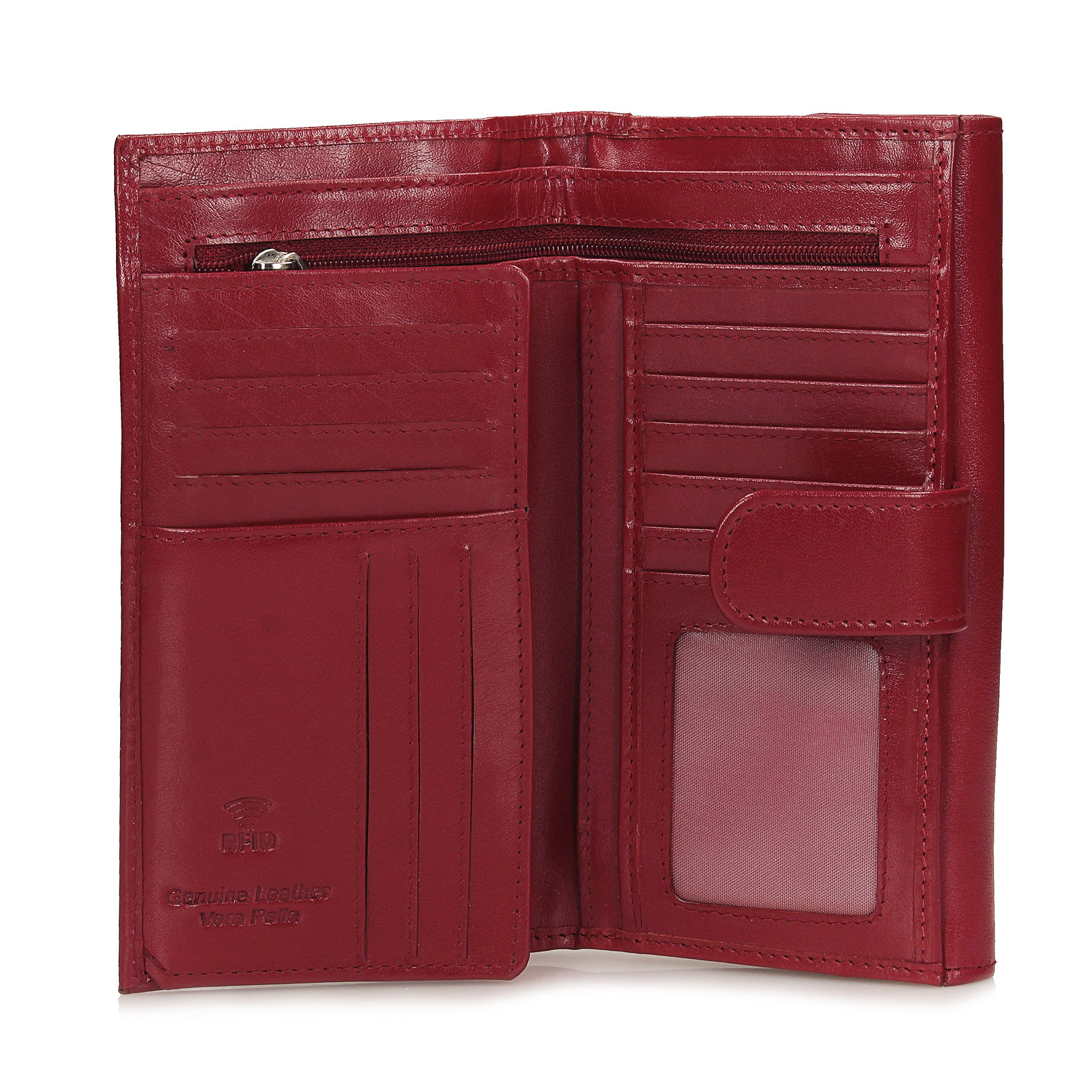 Portfel Toscanio w kolorze czerwonym to elegancki i praktyczny dodatek dla kobiet, które cenią styl i funkcjonalność. Wykonany z naturalnej, lekko błyszczącej skóry, łączy trwałość z efektownym wykończeniem.
