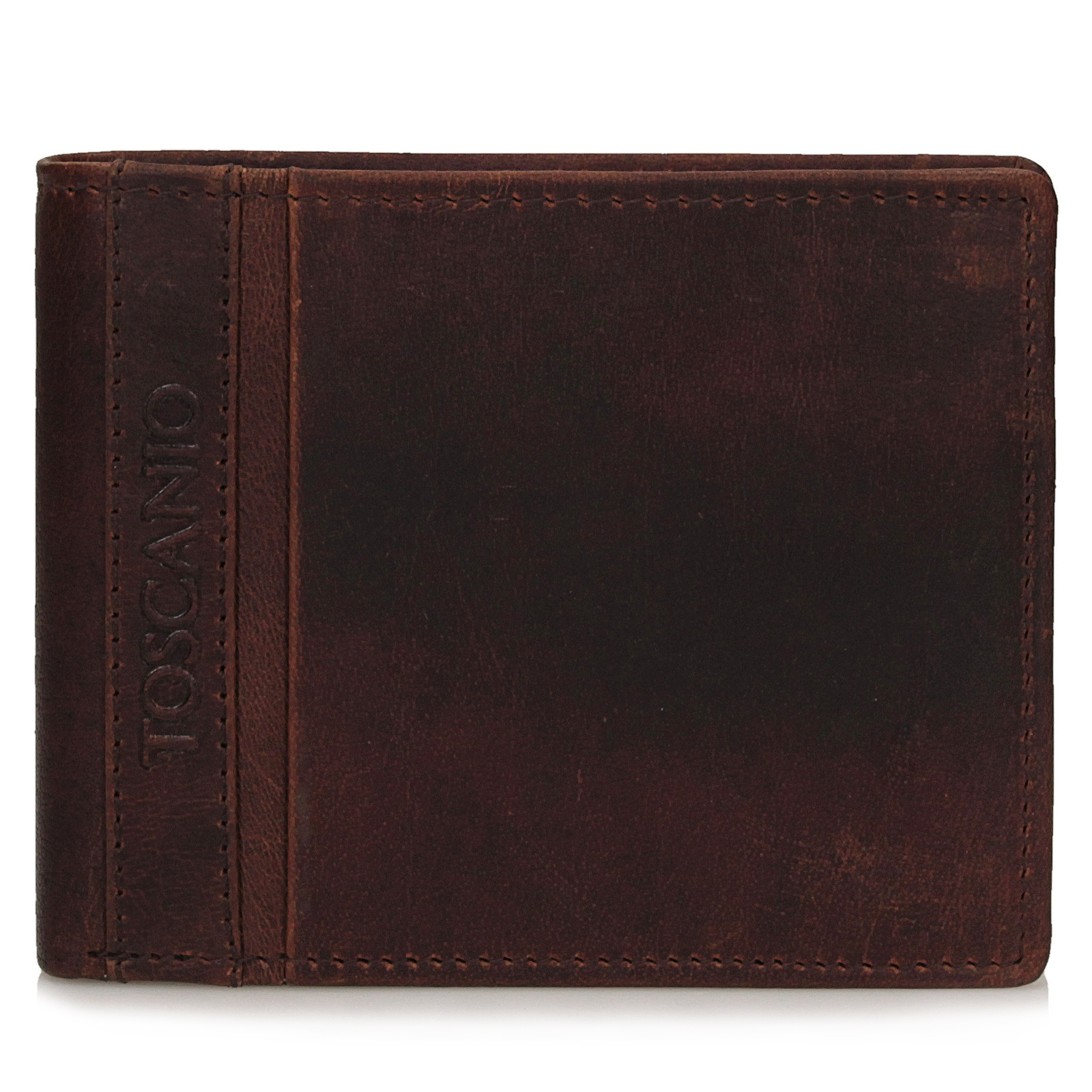 Brązowy portfel męski Toscanio to elegancki dodatek wykonany ze skóry naturalnej o klasycznym wykończeniu. Dzięki kompaktowym wymiarom i przemyślanemu wnętrzu z dwiema komorami oraz dziesięcioma kieszeniami wewnętrznymi, idealnie sprawdzi się na co dzień. Naturalna skóra i minimalistyczny krój zapewniają trwałość oraz ponadczasowy styl, który doskonale pasuje do każdej męskiej stylizacji.