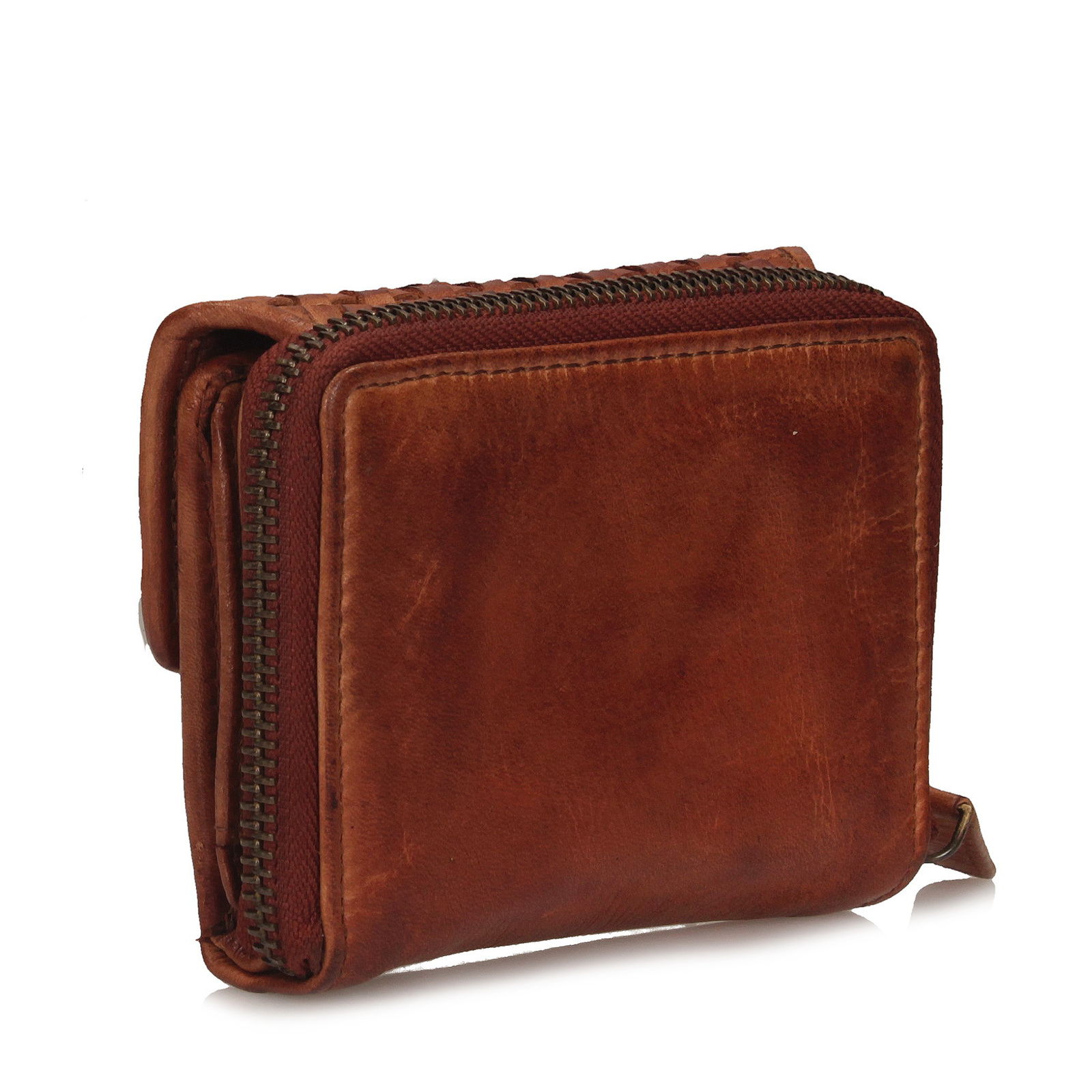 Brązowy portfel Toscanio to wyjątkowy model wykonany z wysokiej jakości skóry naturalnej o postarzanym wykończeniu, które nadaje mu niepowtarzalnego charakteru. Na klapce zdobi go elegancka plecionka ze skóry, podkreślająca jego stylowy wygląd. Skóra może posiadać delikatne nierówności w kolorze, co wynika z jej naturalnej struktury. Portfel zamykany jest na zamek błyskawiczny w złotym kolorze, a jego wnętrze, również wykonane ze skóry naturalnej, zostało starannie zaprojektowane – mieści aż 15 przegródek, w tym dwie główne komory na banknoty, dokumenty czy inne drobiazgi. Kompaktowy rozmiar (10 × 11 × 4 cm) sprawia, że idealnie mieści się w torebce, a jednocześnie pozostaje niezwykle pojemny i praktyczny.