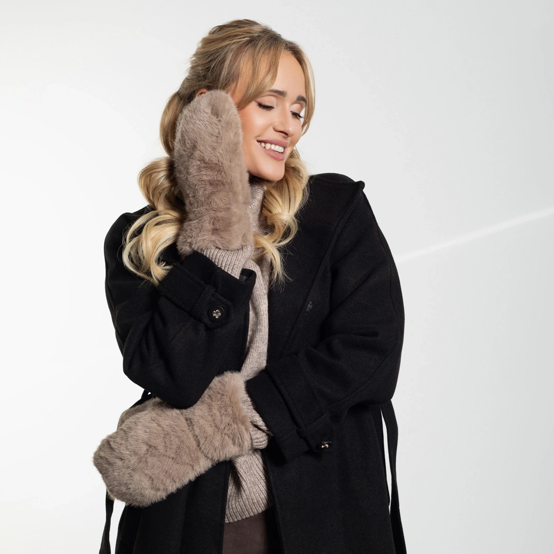 Te jednokomorowe, futrzaste rękawiczki w odcieniu szarości to idealny dodatek do zimowych stylizacji – doskonale pasują zarówno do eleganckiego płaszcza, jak i casualowej kurtki, dodając całości przytulnego, stylowego charakteru.