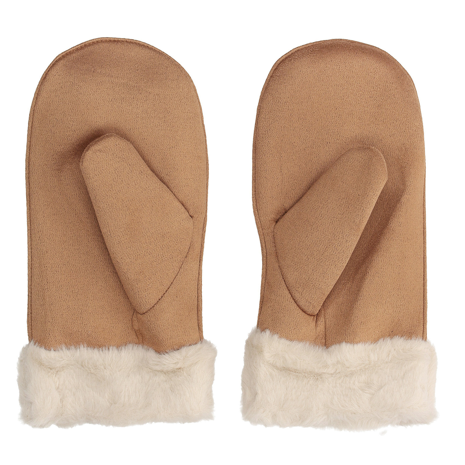 Wnętrze rękawiczek wyściełane jest przyjemnym sztucznym futerkiem, które skutecznie chroni przed chłodem. Futerko subtelnie wychodzi na zewnątrz przy obrąbku, tworząc elegancki, przytulny detal, podkreślający ich wyjątkowy styl.