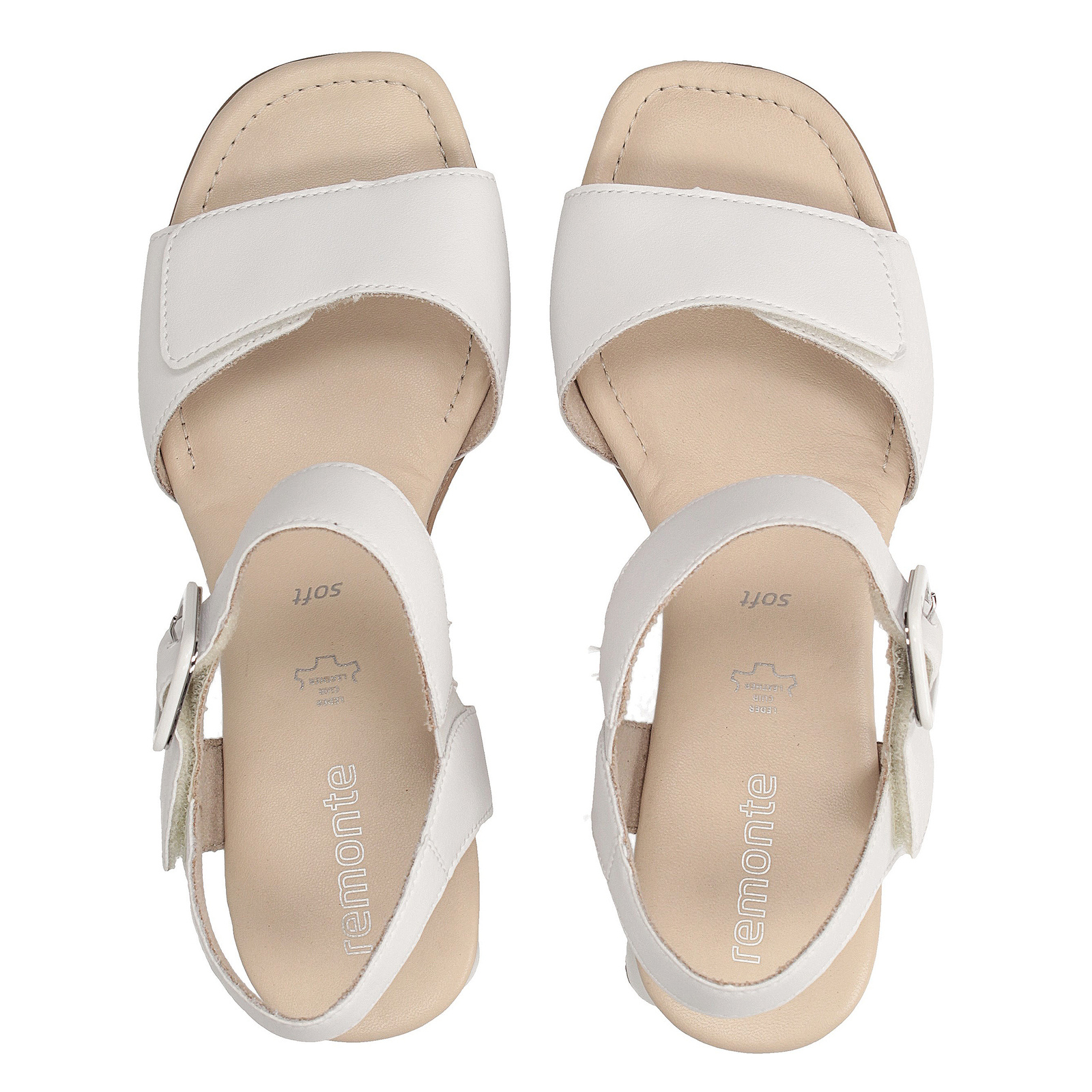 Białe sandały Remonte to połączenie komfortu i ponadczasowej elegancji. Wykonane z miękkiej skóry naturalnej, zapewniają idealne dopasowanie do stopy oraz przewiewność nawet w gorące dni. Stabilny obcas w formie klocka o wysokości 4,5 cm gwarantuje wygodę podczas chodzenia, a rzepy umożliwiają szybkie i precyzyjne zapięcie. Kwadratowy nosek nadaje modelowi nowoczesnego charakteru, a uniwersalna biel sprawia, że sandały świetnie sprawdzą się zarówno w codziennych, jak i bardziej eleganckich stylizacjach.