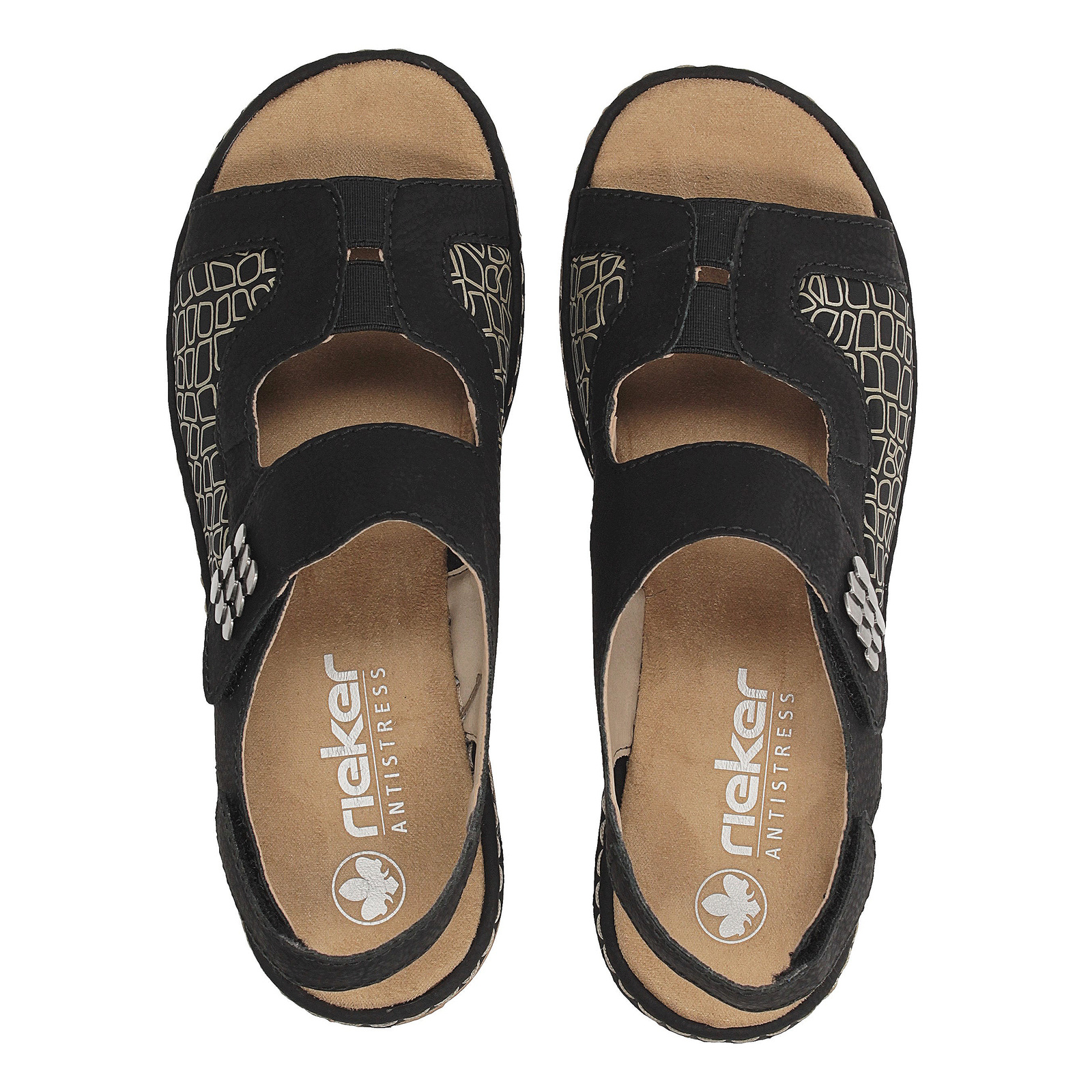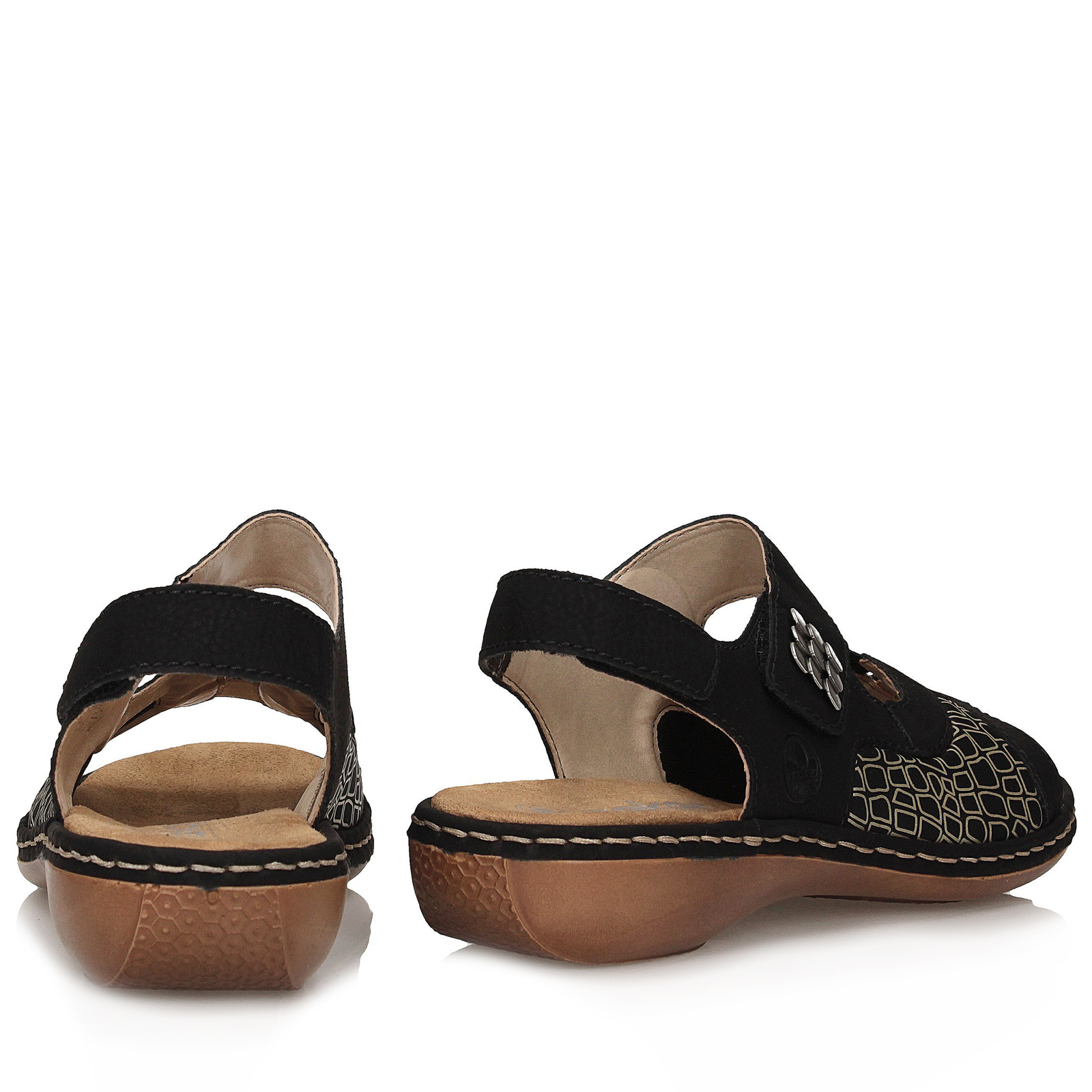 Czarne sandały damskie Rieker to wygodna i uniwersalna propozycja na cieplejsze dni. Ich lekka konstrukcja i sportowy fason sprawiają, że doskonale sprawdzą się w codziennym użytkowaniu. Cholewka wykonana została z miękkiej skóry ekologicznej, co zapewnia komfort noszenia przez cały dzień. Buty posiadają okrągły nosek oraz zapięcie na rzepy, które pozwala łatwo dopasować je do stopy. Podeszwa z tworzywa sztucznego o wysokości 3 cm delikatnie amortyzuje każdy krok. Idealne dla kobiet ceniących wygodę, funkcjonalność i klasyczny styl.