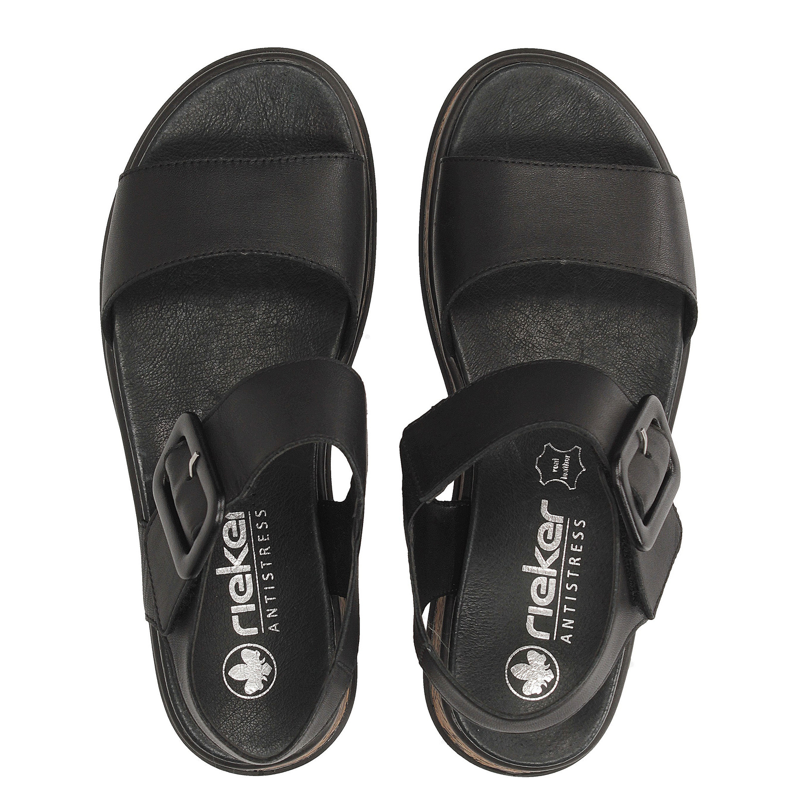 Czarne sandały damskie Rieker W0800 to doskonały wybór dla kobiet, które szukają połączenia komfortu i elegancji. Model ten wyróżnia się subtelnym, ale nowoczesnym designem, który świetnie komponuje się z różnorodnymi stylizacjami, od casualowych po bardziej formalne.