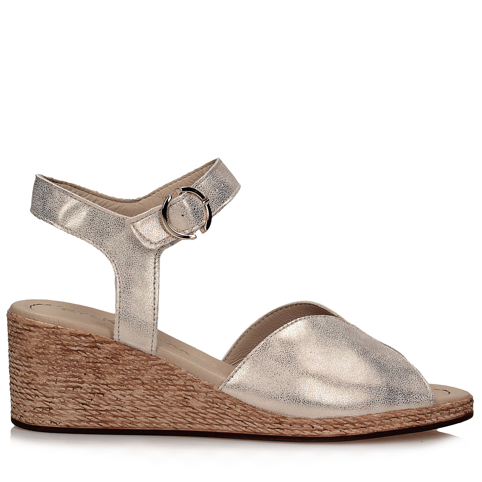 Złote sandały Ryłko 4RG39 to doskonała opcja dla kobiet, które szukają połączenia wygody z ponadczasowym stylem.