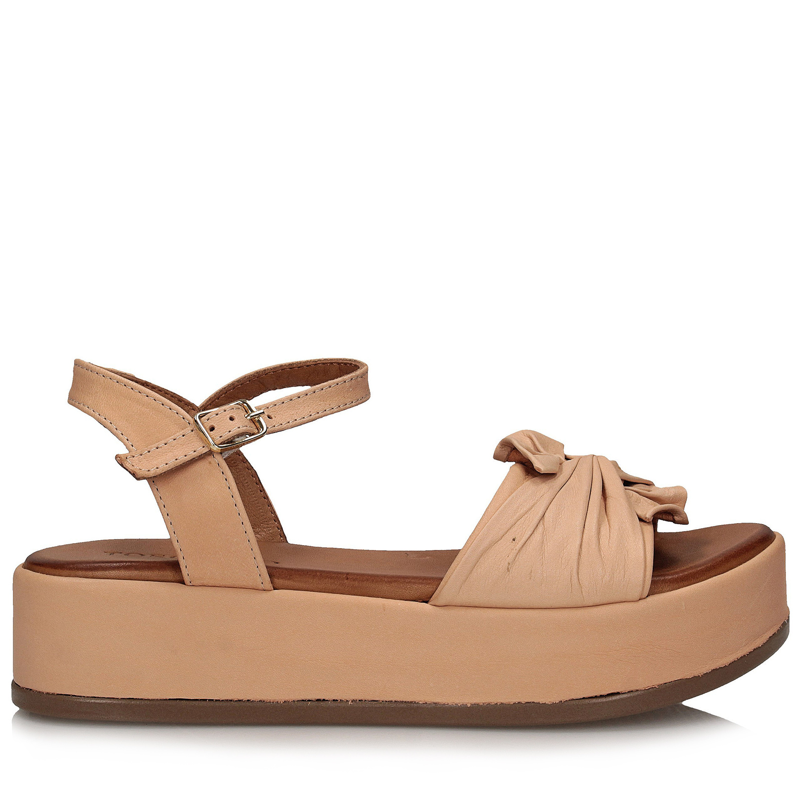 Sandały osadzone są na 4-centymetrowej platformie, która dodaje nieco wysokości, jednocześnie pozostając bardzo komfortową. Okrągły nosek i skórzana wyściółka zapewniają wygodę przez cały dzień, a trwała podeszwa z tworzywa sztucznego gwarantuje stabilność i przyczepność.