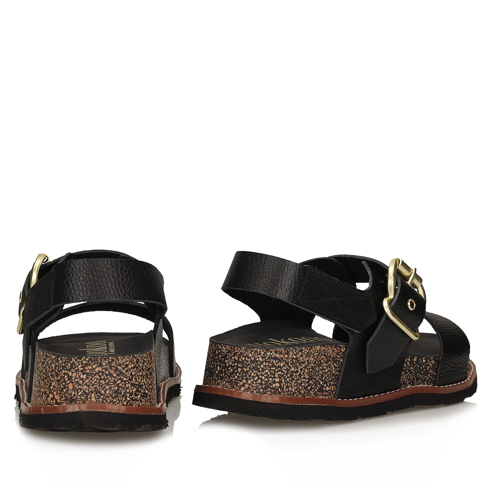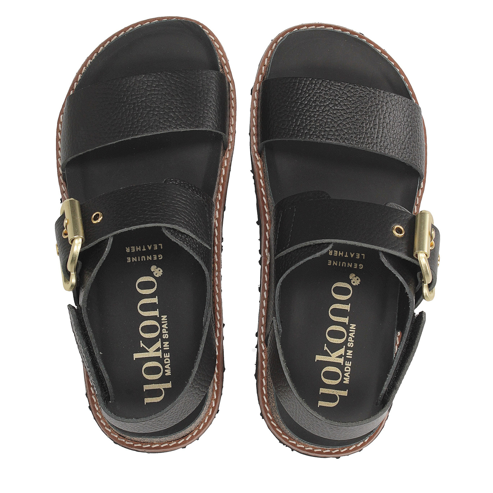 Czarne sandały damskie marki Yokono to połączenie komfortu, nowoczesnego stylu i hiszpańskiego rzemiosła. Wykonane z naturalnej skóry – zarówno na zewnątrz, jak i wewnątrz – dopasowują się do stopy, gwarantując wygodę przez cały dzień. Stabilna, 4-centymetrowa platforma unosi sylwetkę, zachowując lekkość i codzienny charakter. Model z zaokrąglonym noskiem i klasycznym zapięciem na sprzączkę świetnie sprawdzi się w letnich stylizacjach – od szortów po zwiewne sukienki.