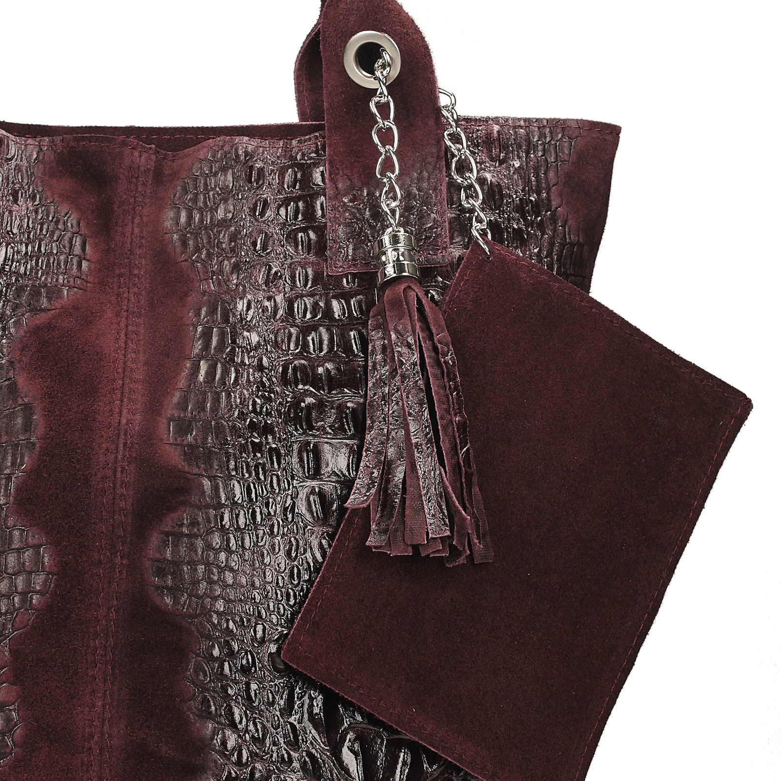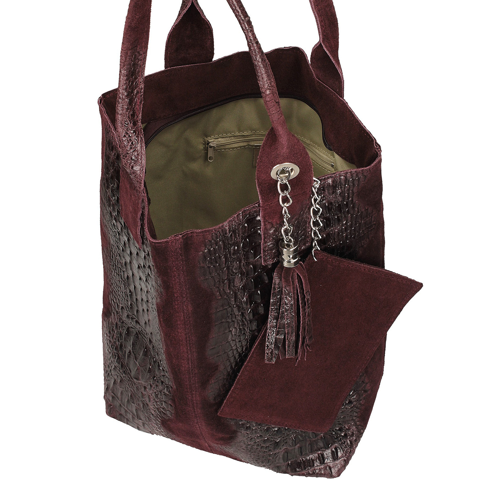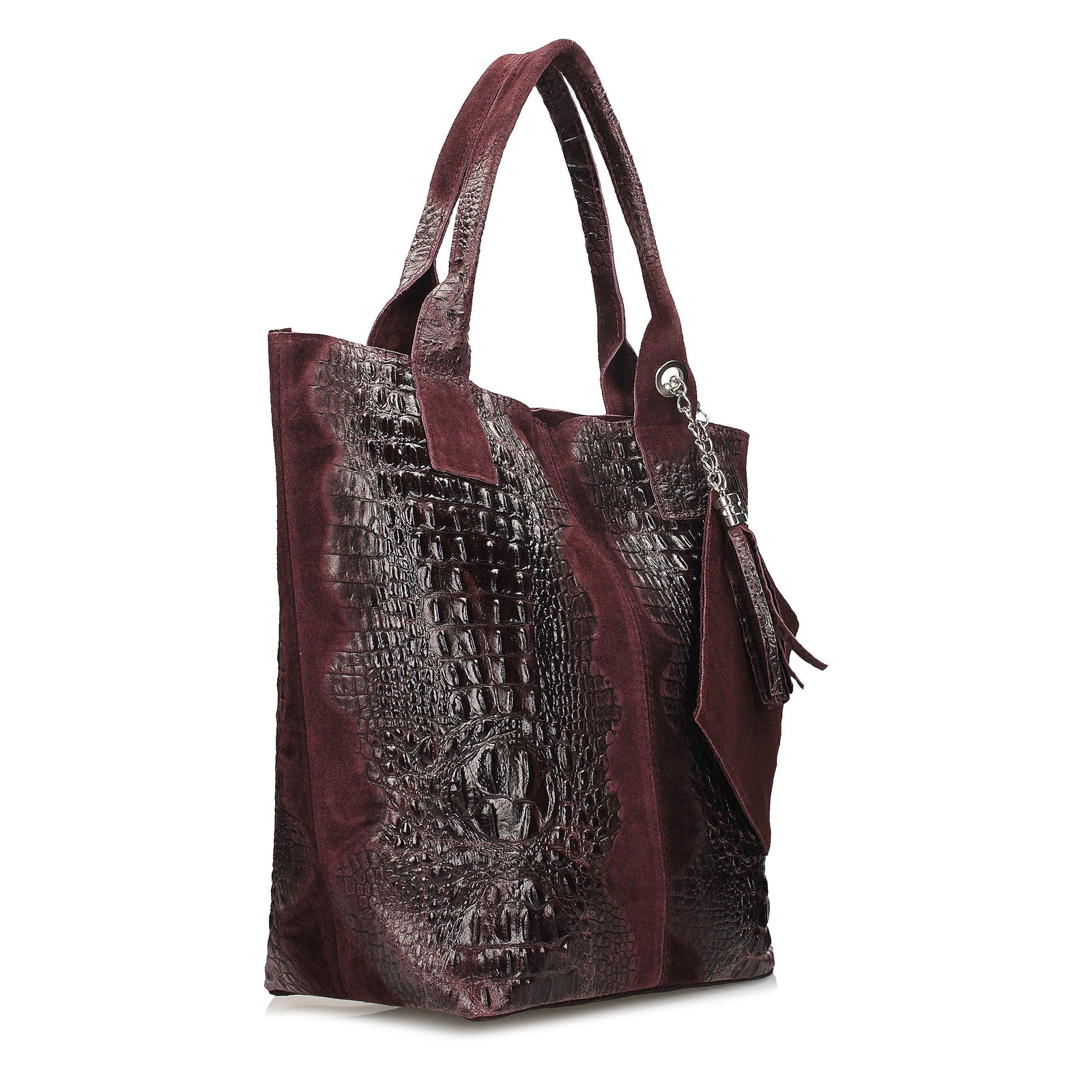 eleganckim motywem skóry krokodyla. Produkt wyposażony jest w jedną główna komorę, zamykaną za