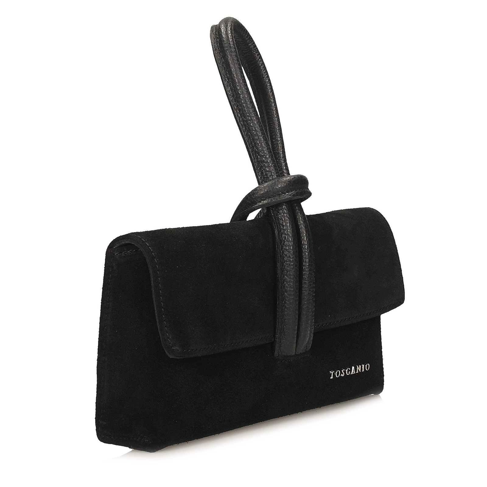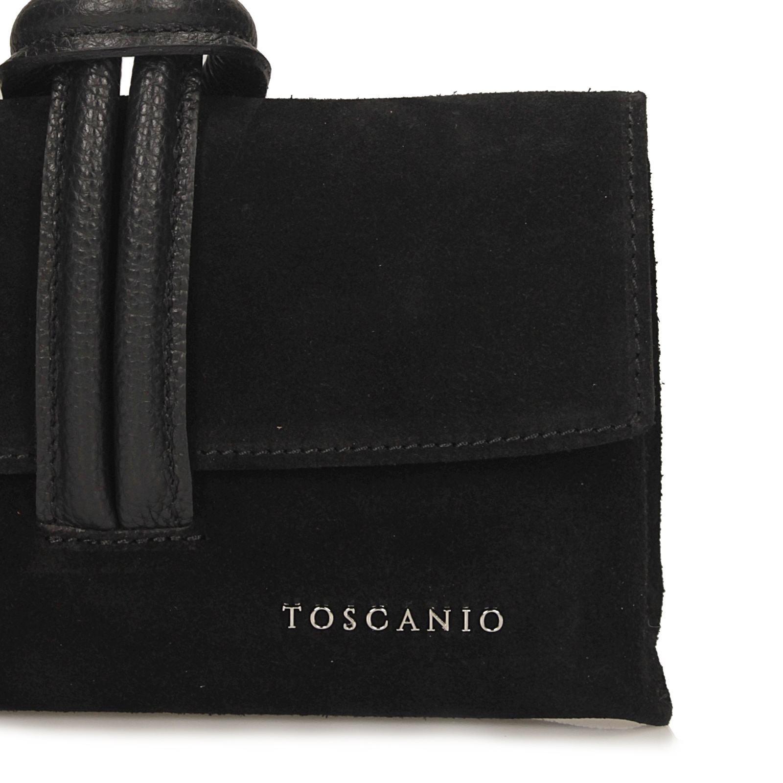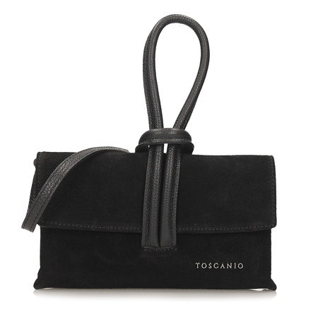 Czarna kopertówka Toscanio to elegancki i funkcjonalny dodatek dla kobiet ceniących połączenie klasyki z nowoczesnym stylem. Wykonana w całości z miękkiego, wysokiej jakości zamszu, zachwyca przyjemną w dotyku fakturą i subtelnym, szlachetnym wykończeniem. Krótki uchwyt oraz długi pasek o długości 125 cm wykonano ze skóry licowej, co nadaje modelowi trwałości i eleganckiego kontrastu.