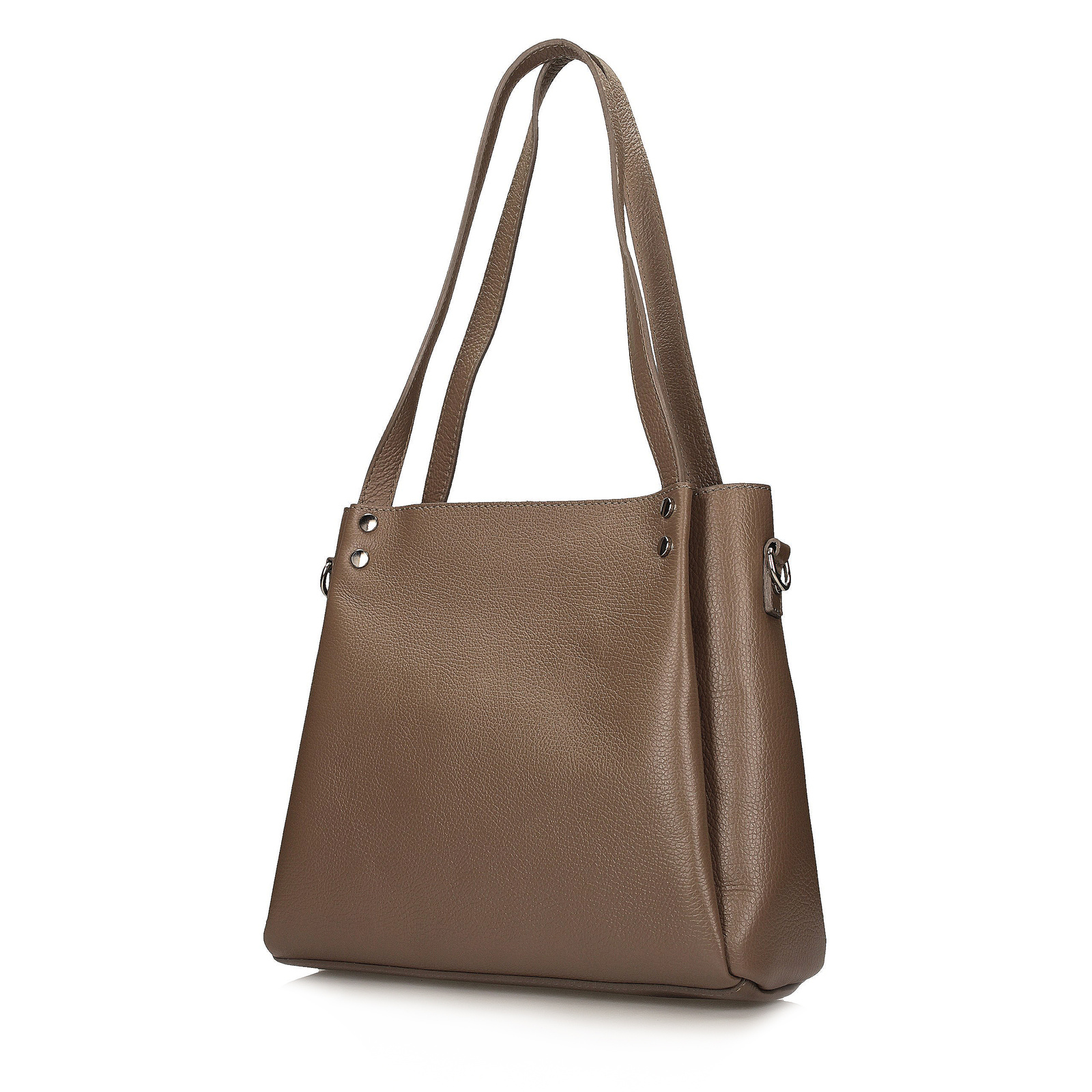 Ta torebka Toscanio w kolorze ciemnego beżu to propozycja dla kobiet, które cenią minimalistyczny styl, wysoką jakość wykonania i subtelną elegancję. Doskonała zarówno do pracy, jak i na spotkania w stylowym wydaniu.