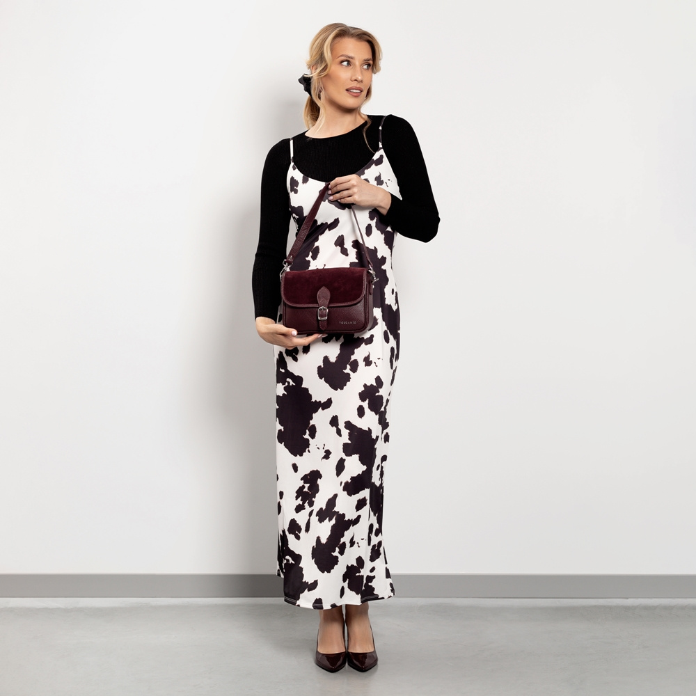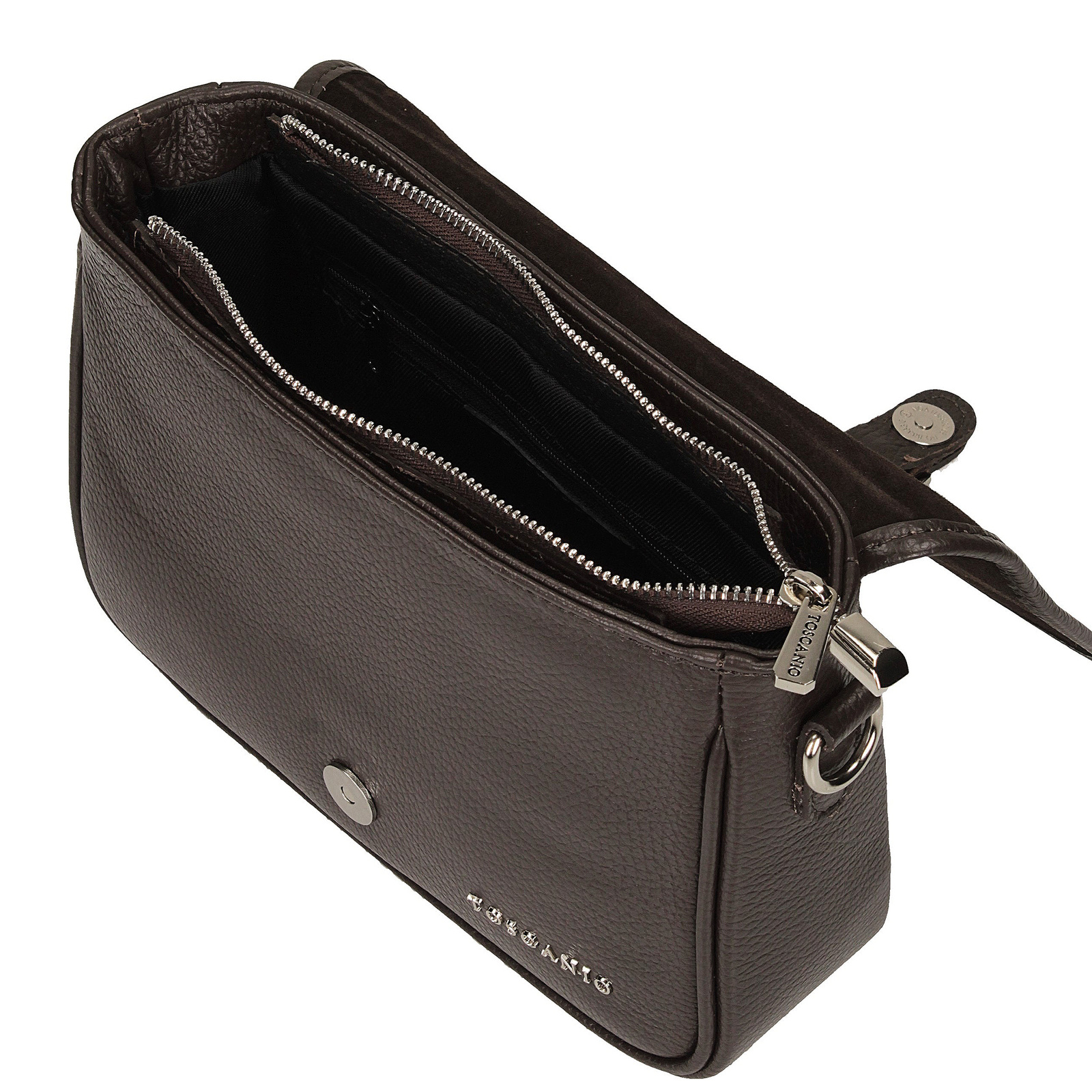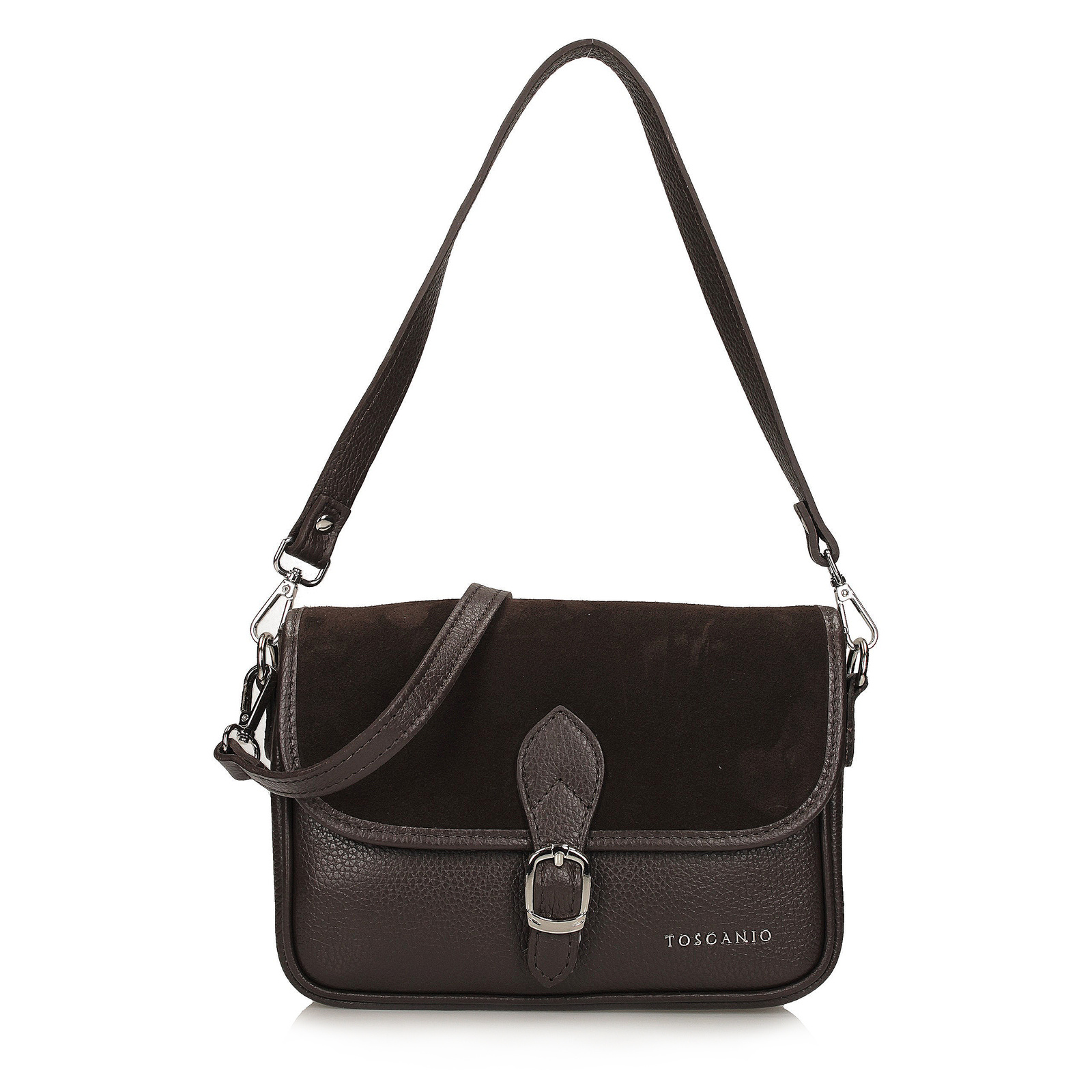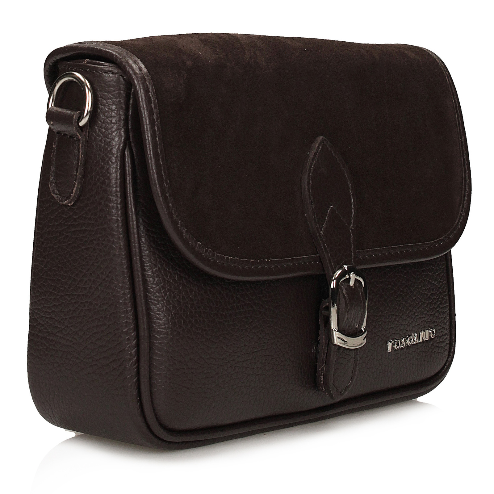 Pasek torebki wykonany z naturalnej skóry jest trwały i wygodny, a jego długość pozwala na noszenie torebki na ramieniu lub przewieszenie przez ciało. Dzięki kompaktowym wymiarom (wysokość 19 cm, szerokość 23 cm, głębokość 9 cm), torebka Toscanio jest doskonałym wyborem na co dzień, oferując elegancki wygląd i praktyczność. To idealny dodatek do każdej stylizacji, który sprawdzi się w każdej sytuacji.