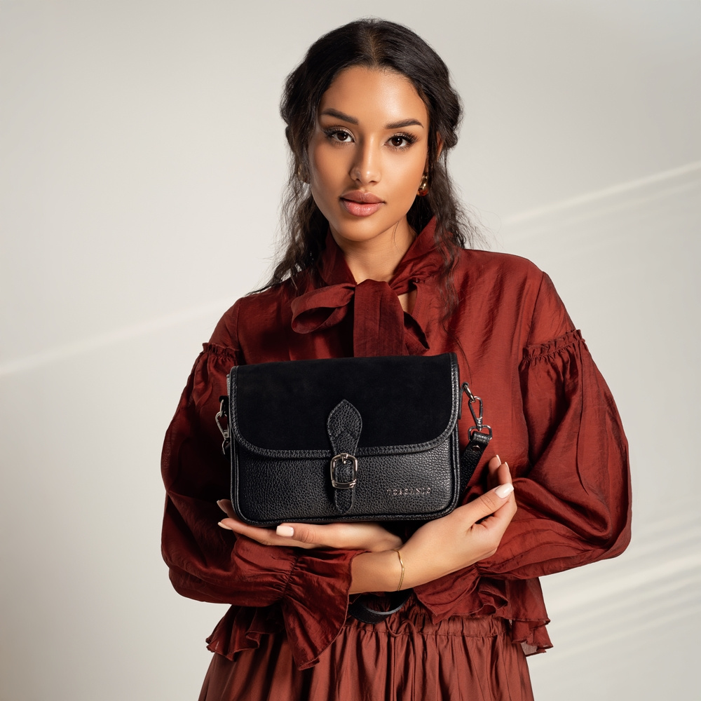 Torebka Toscanio to elegancki i funkcjonalny dodatek, który łączy w sobie styl i wygodę. Wykonana z wysokiej jakości skóry licowej i zamszowej, charakteryzuje się subtelną fakturą, która nadaje jej wyjątkowego charakteru. Idealna do codziennego użytku, jest lekka i poręczna, a jednocześnie wystarczająco pojemna, aby pomieścić najpotrzebniejsze drobiazgi.