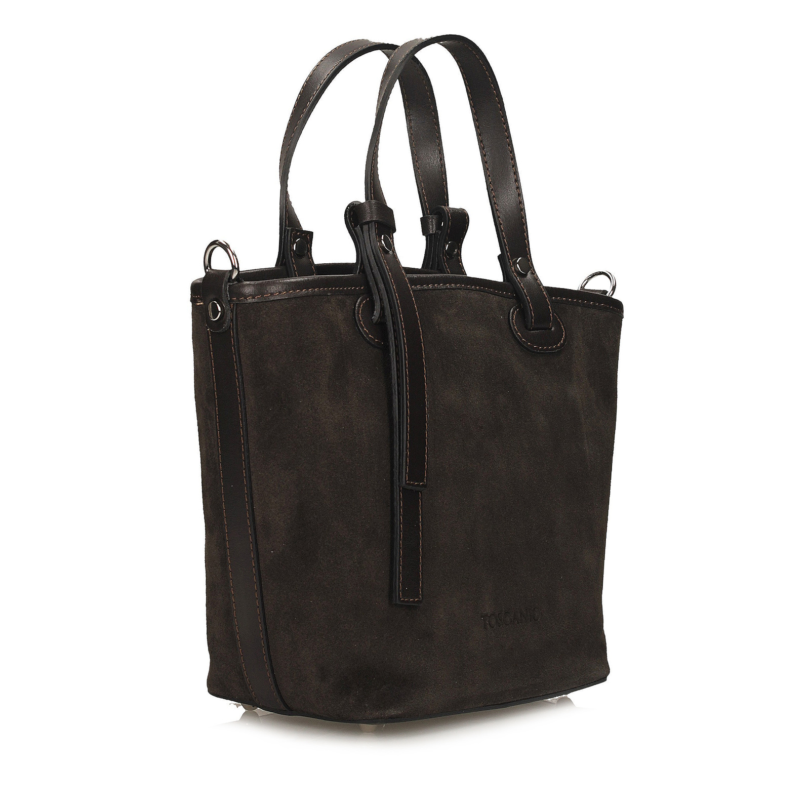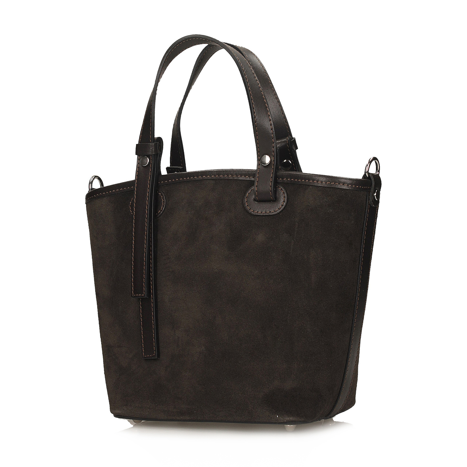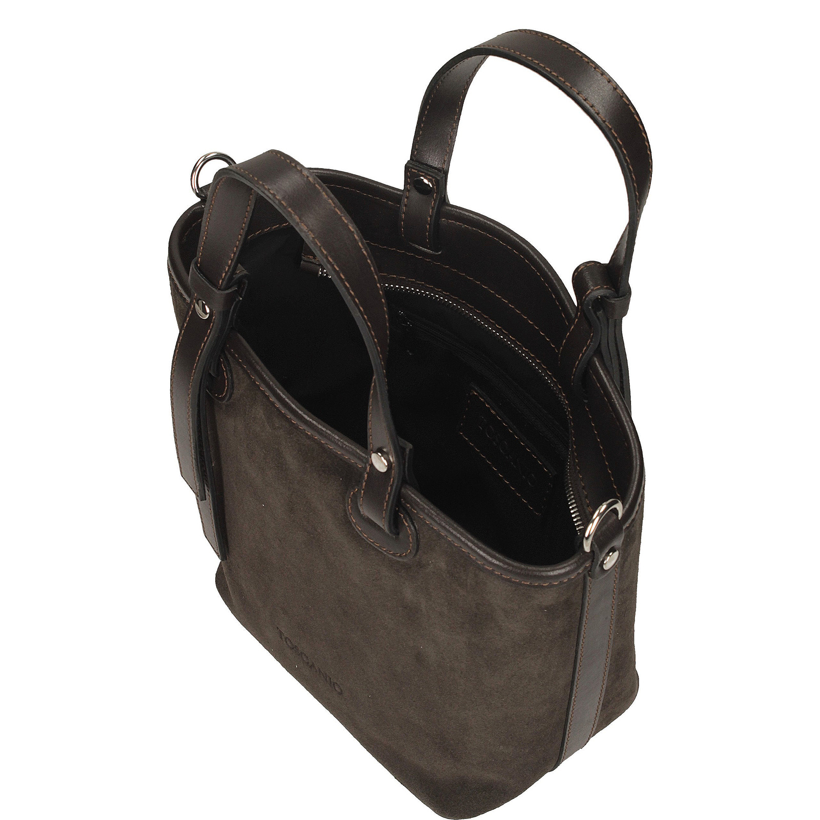 Brązowa torebka Toscanio to elegancki i praktyczny model wykonany z wysokiej jakości skóry zamszowej, wzbogaconej o detale ze skóry naturalnej groszkowanej. Wykończenia takie jak rączka, pasek nadają jej wyjątkowego charakteru i podkreślają staranność wykonania. Torebka zamykana jest na zamek w srebrnym kolorze, a jej wnętrze wyściełane trwałą tkaniną kryje jedną komorę oraz dwie praktyczne kieszenie, ułatwiające organizację drobiazgów. Dzięki regulowanemu paskowi ze skóry naturalnej można nosić ją na ramieniu lub w formie crossbody. Klasyczny brąz w połączeniu z elegancką fakturą zamszu sprawia, że model ten świetnie sprawdzi się zarówno w codziennych, jak i bardziej szykownych stylizacjach.