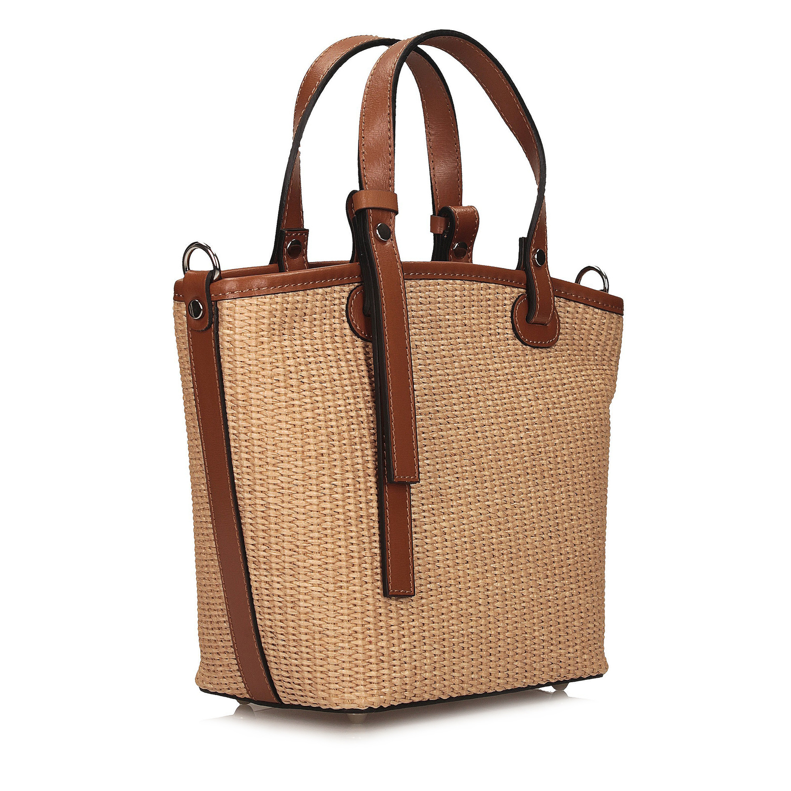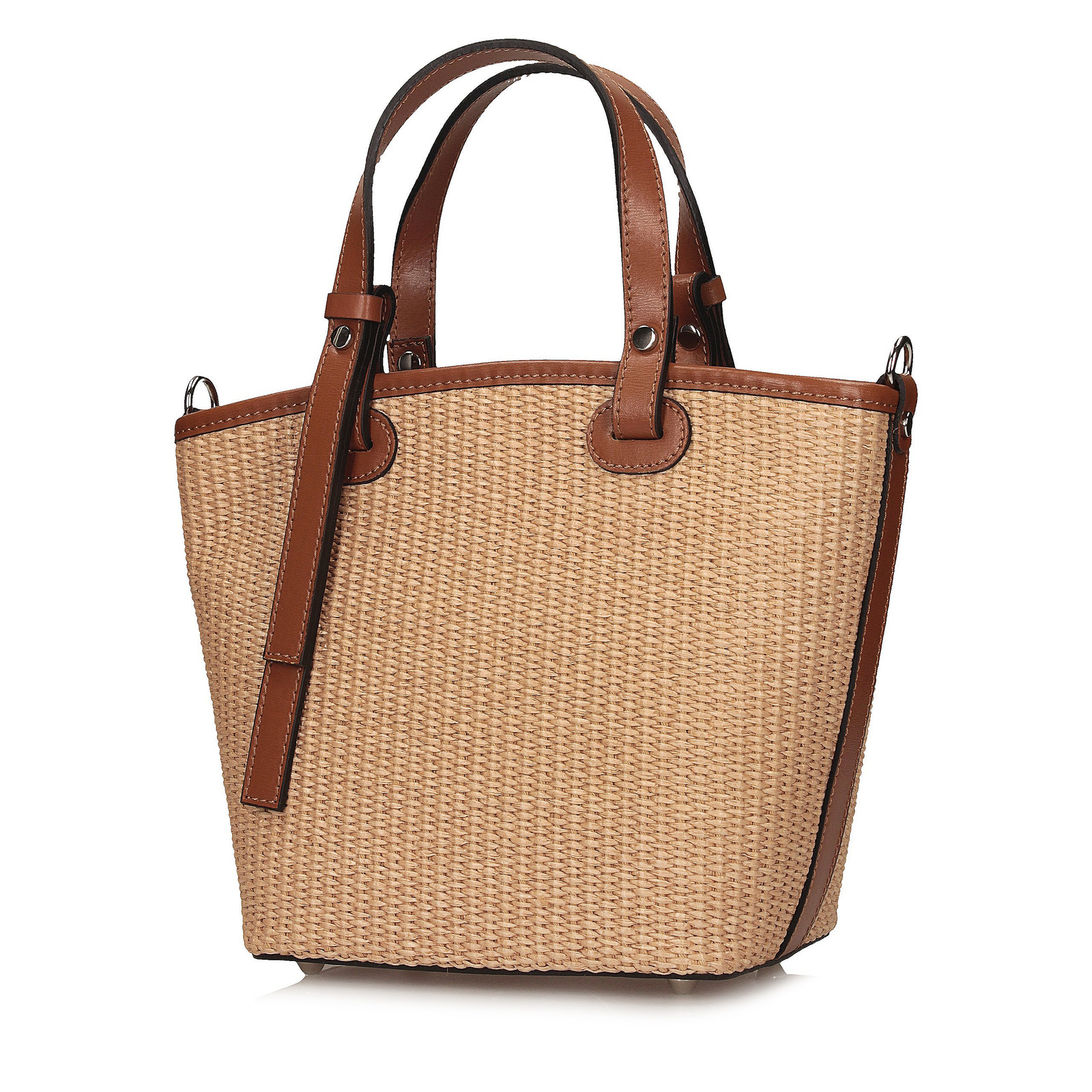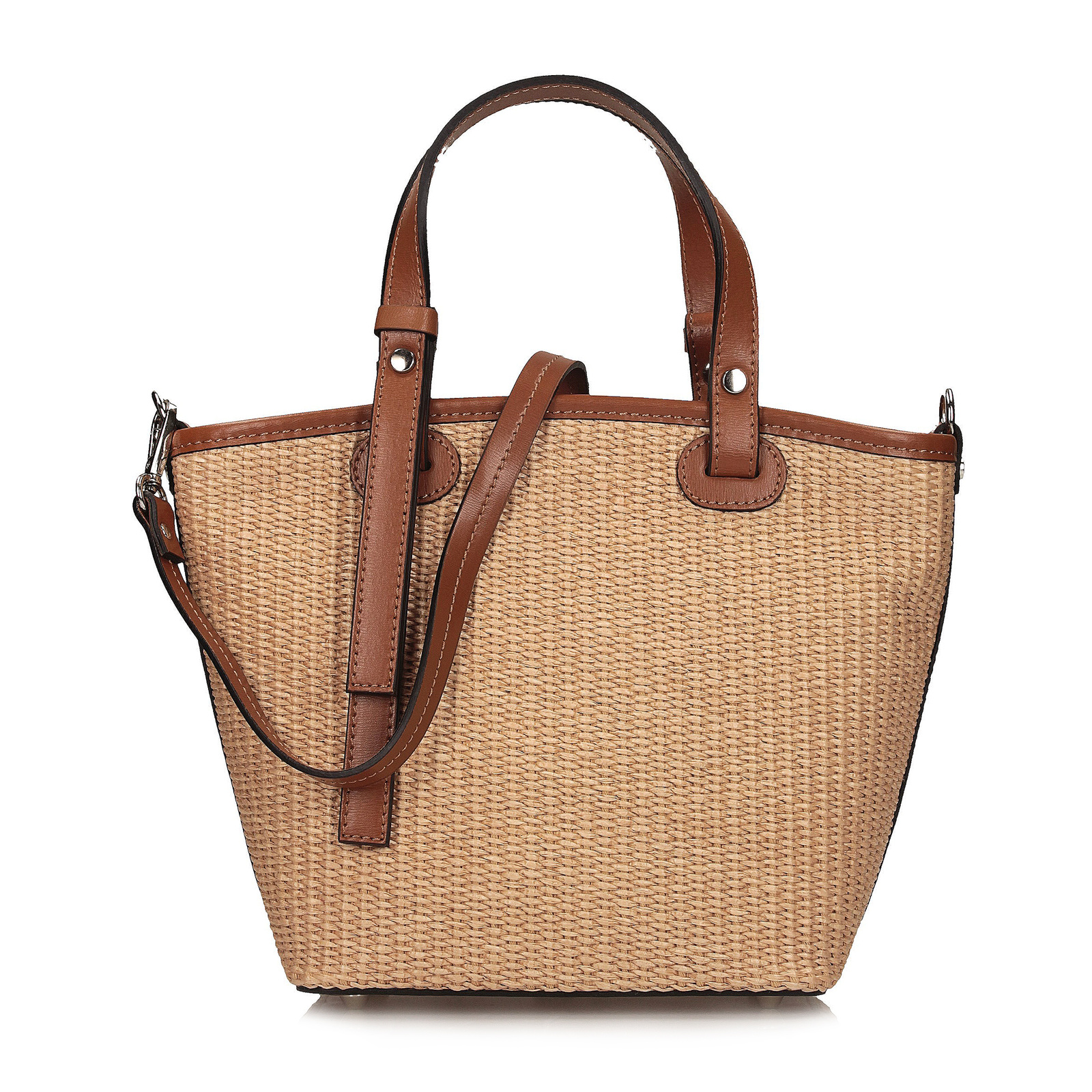 Ruda torebka Toscanio w wyjątkowym wydaniu łączy naturalny, letni charakter z eleganckim wykończeniem. Na froncie zastosowano dekoracyjne plecionkowe tworzywo przypominające słomę, które nadaje całości lekkości i wakacyjnego klimatu. Elementy takie jak rączka, pasek oraz obwoluta wykonane są ze skóry naturalnej groszkowanej w odcieniu rudym, co pięknie kontrastuje z plecionką i dodaje torebce wyrazistości. Model zamykany jest na zamek w srebrnym kolorze, a wewnątrz znajduje się jedna komora oraz dwie praktyczne kieszenie, wykończone podszewką z tkaniny. Regulowany pasek skórzany umożliwia noszenie zarówno na ramieniu, jak i na skos. To idealna propozycja na lato – lekka, a jednocześnie elegancka i wygodna.