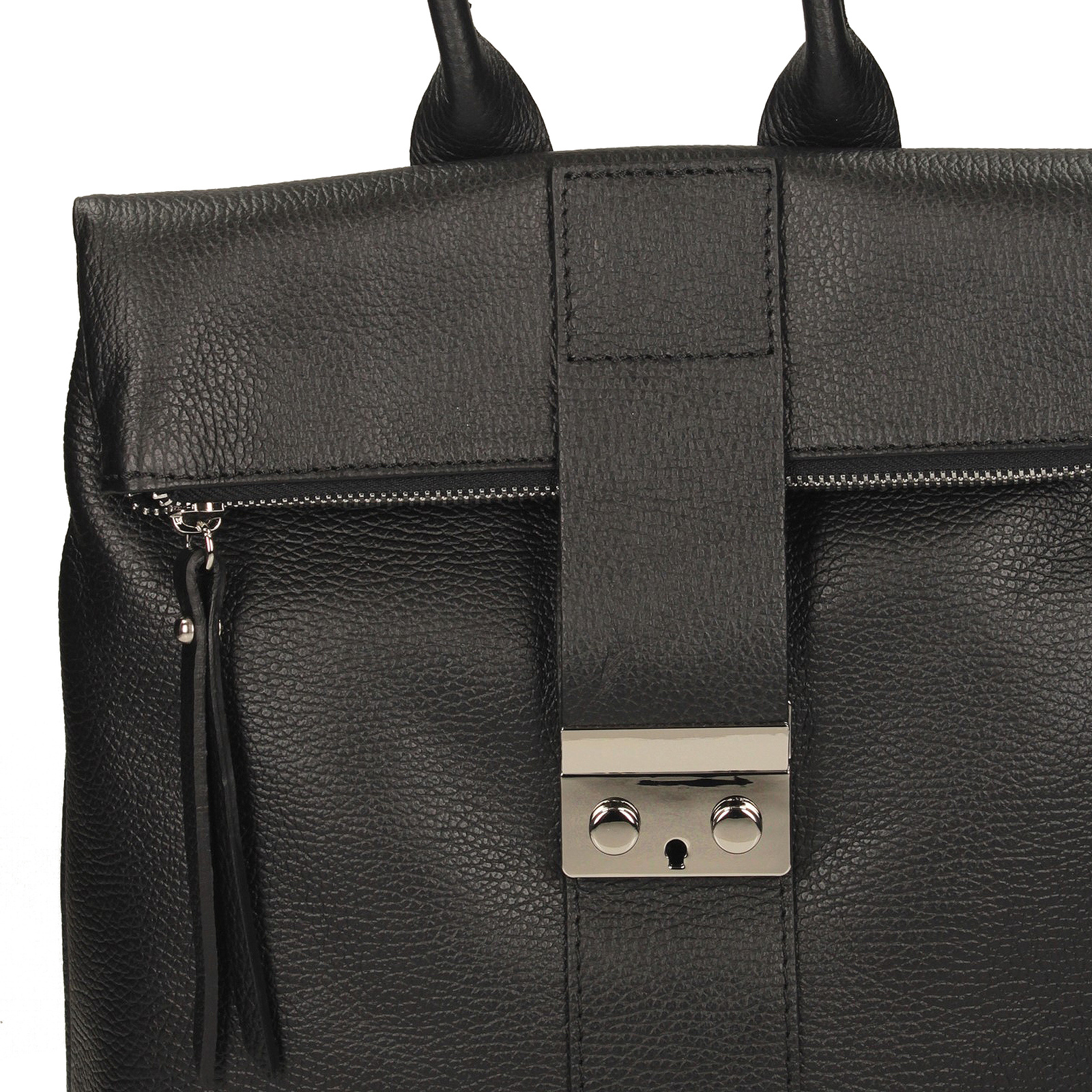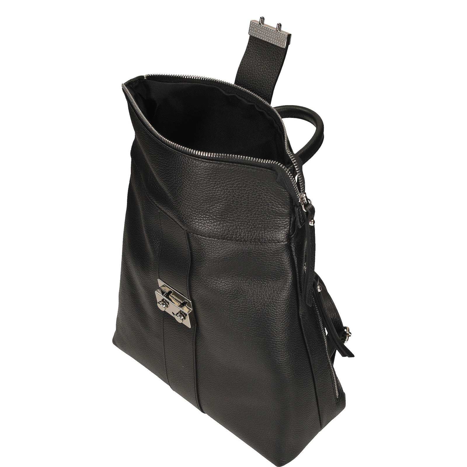Czarny plecak marki Toscanio to propozycja dla kobiet, które szukają połączenia praktyczności z eleganckim, uniwersalnym stylem. Wykonany z wysokiej jakości skóry naturalnej, zachwyca ponadczasowym designem oraz starannym wykończeniem, a jego klasyczna kolorystyka sprawia, że pasuje do każdej stylizacji.