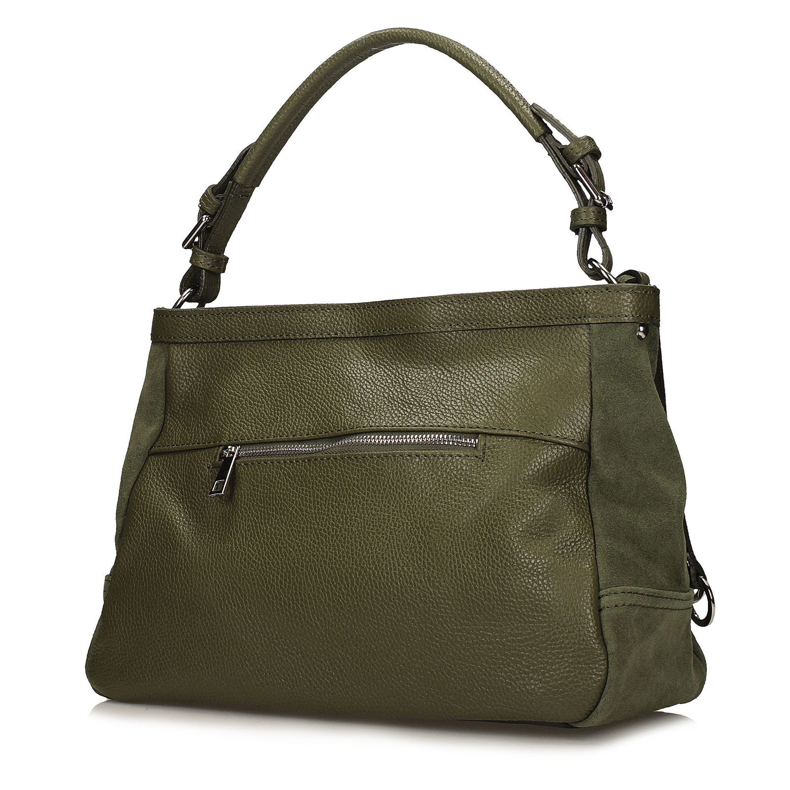 Oliwkowo-zielony kolor dodaje torebce nowoczesnego, a jednocześnie ponadczasowego charakteru, czyniąc ją idealnym dodatkiem do jesiennych i wiosennych stylizacji.