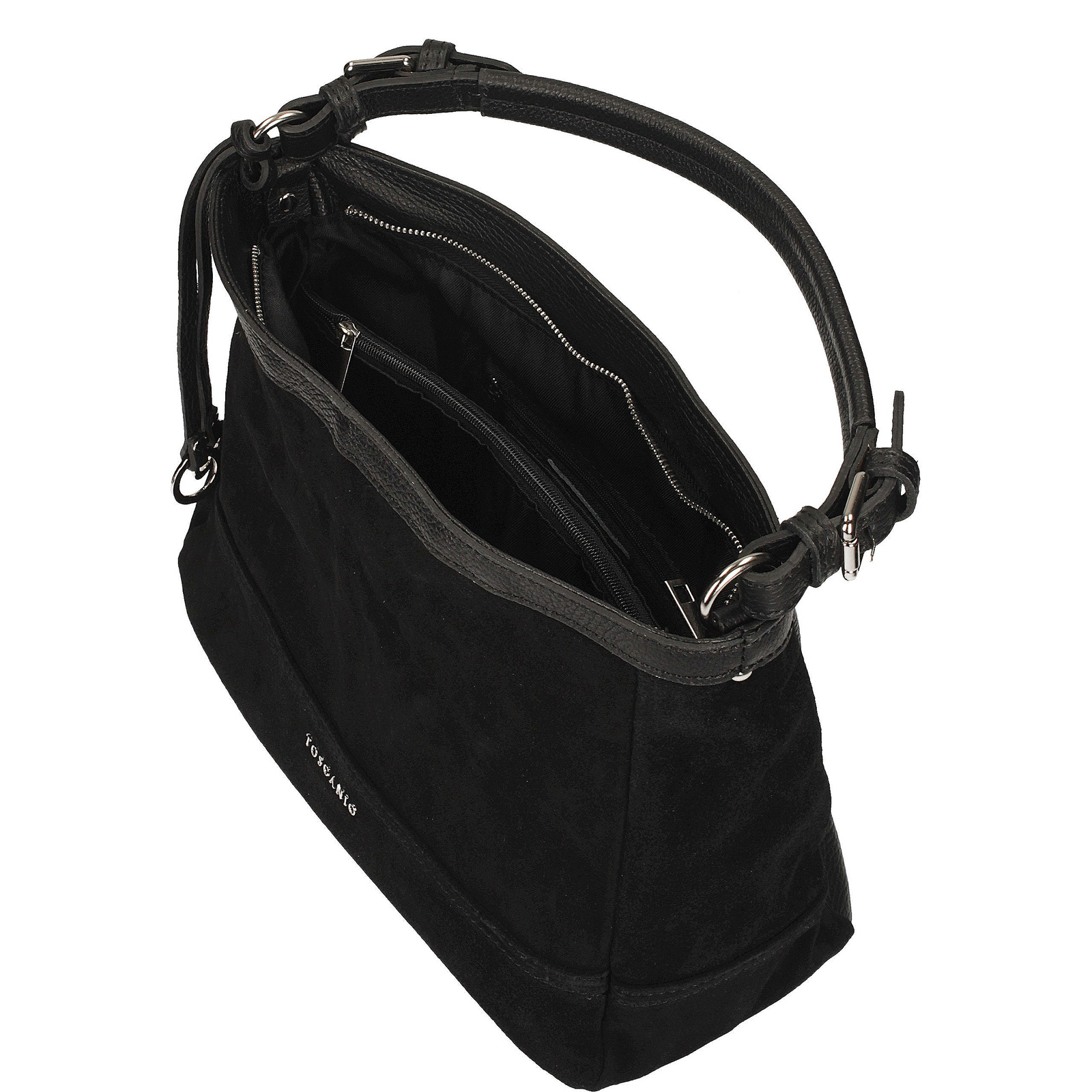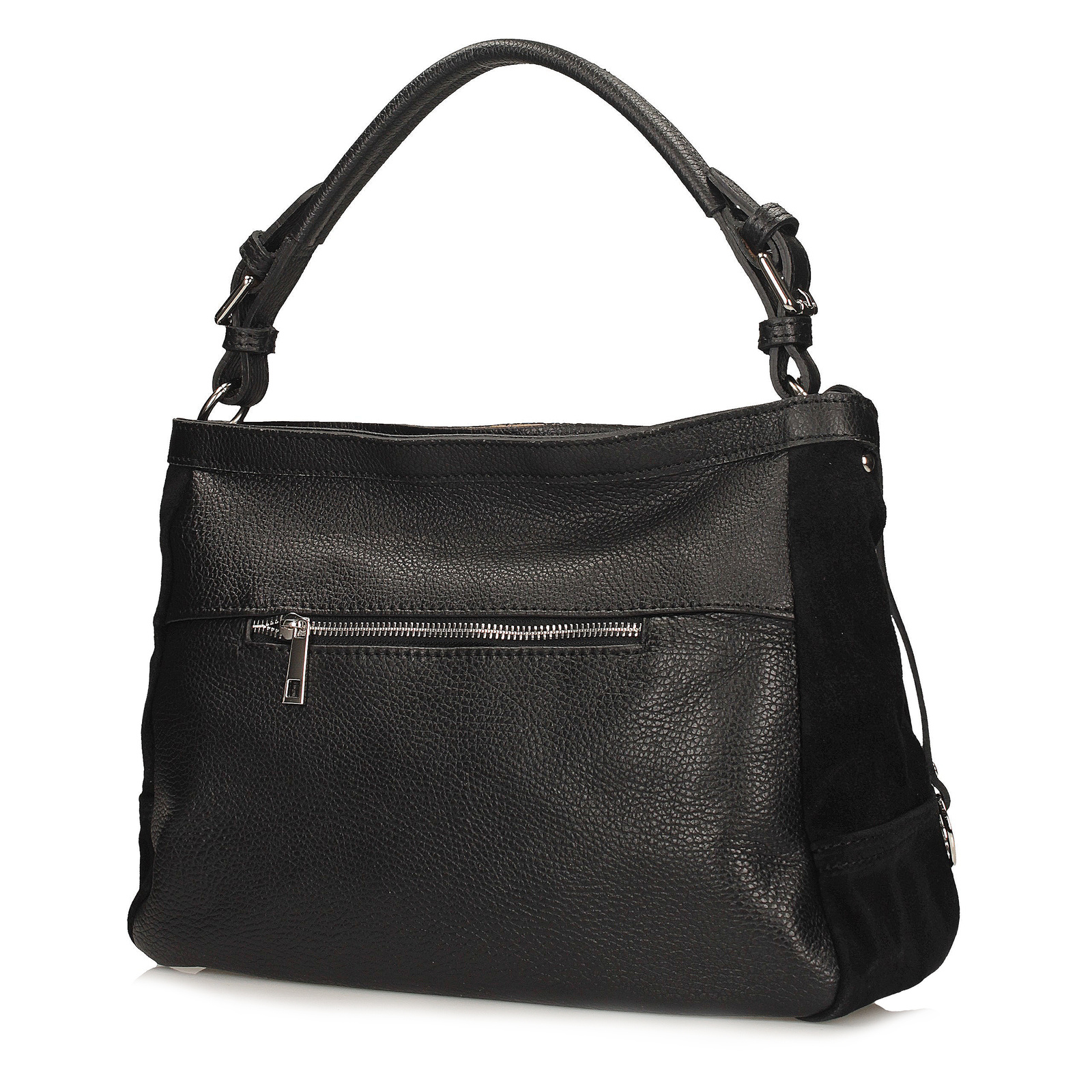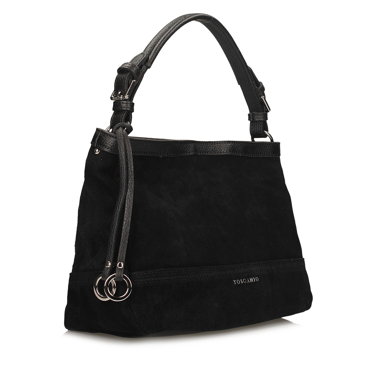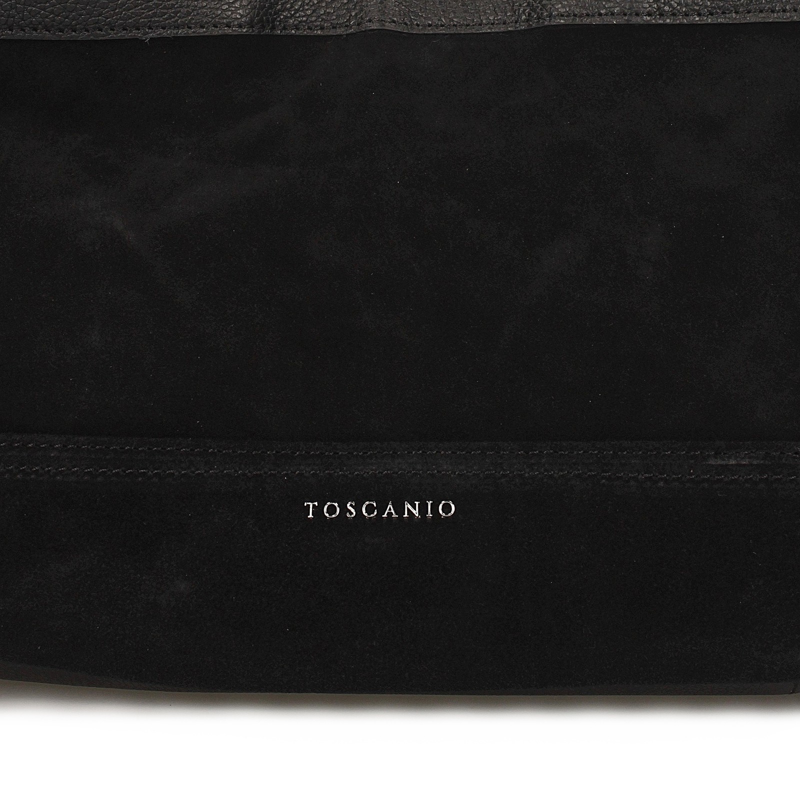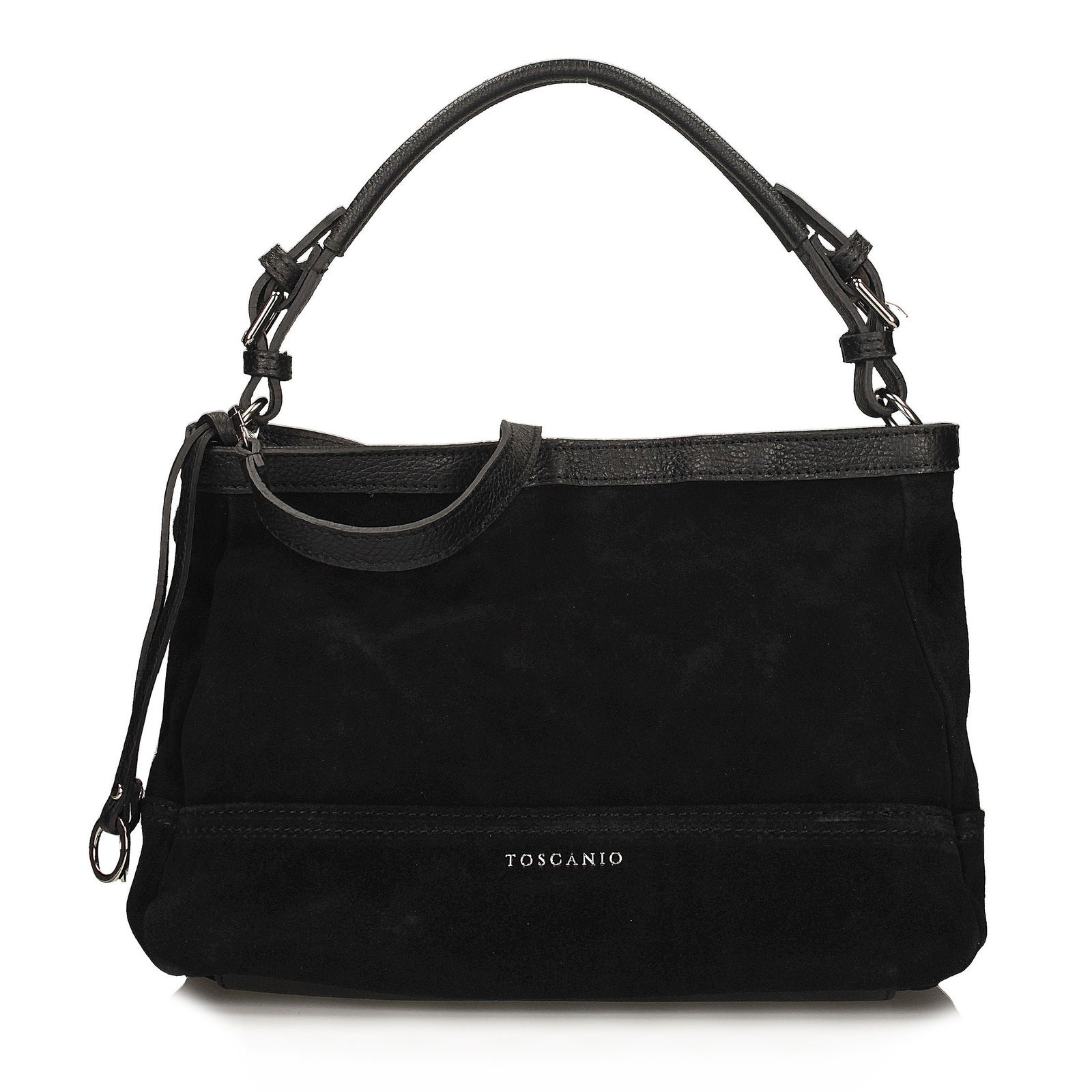 Czarna torebka damska marki Toscanio to elegancki model typu worek, który zachwyca prostotą i funkcjonalnością. Wykonana z wysokiej jakości skóry naturalnej zamszowej, wyróżnia się subtelną fakturą i ponadczasowym charakterem, dzięki czemu świetnie sprawdzi się zarówno na co dzień, jak i do bardziej eleganckich stylizacji.