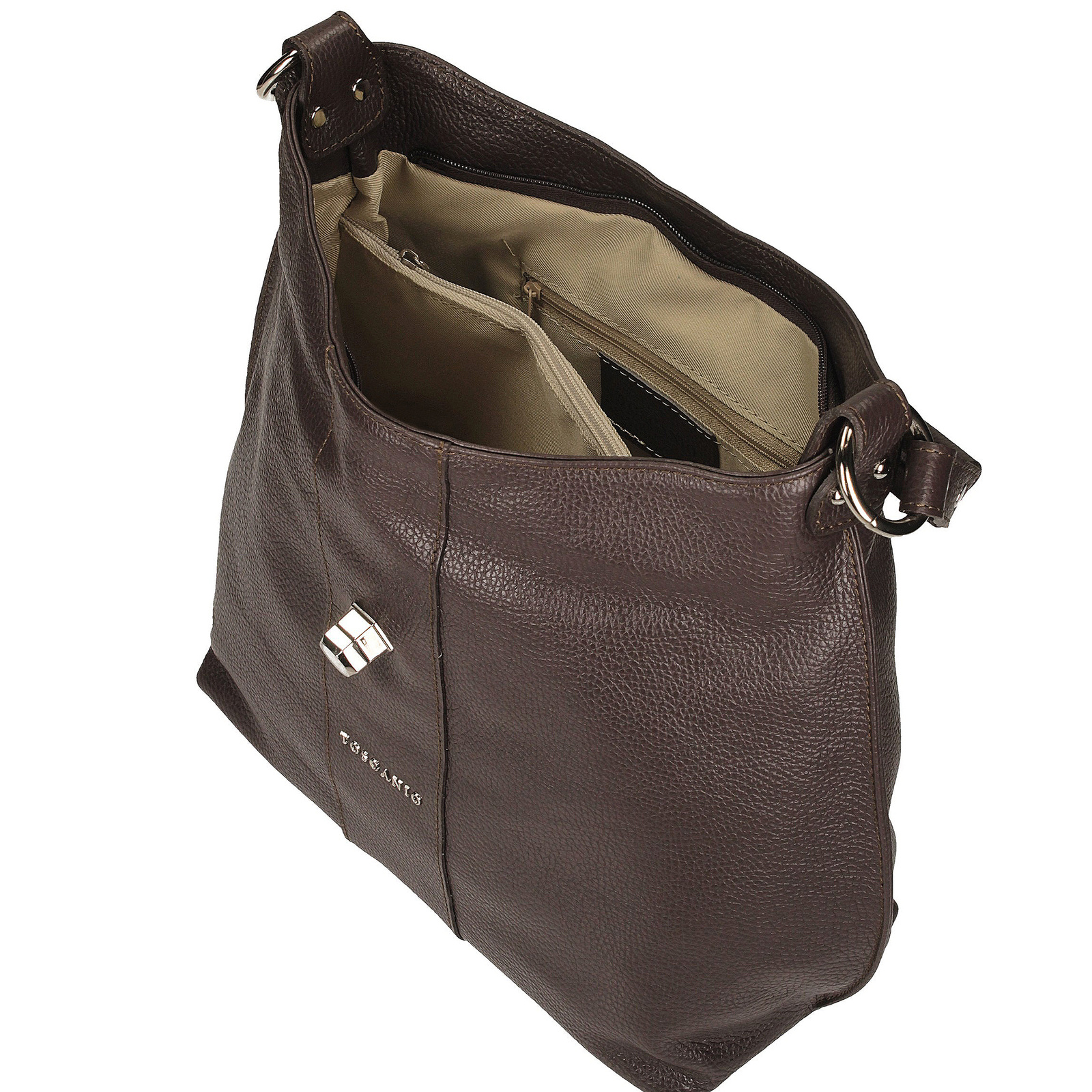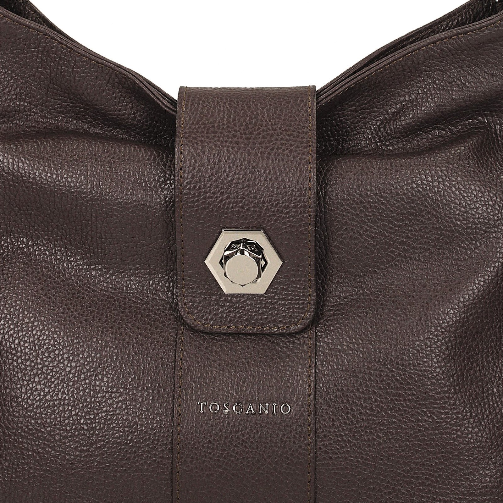 Ciemnobrązowa torebka marki Toscanio to doskonały wybór dla kobiet, które szukają połączenia klasycznego stylu z praktycznym wnętrzem. Wykonana z wysokiej jakości skóry naturalnej, zachwyca trwałością, eleganckim wyglądem i ponadczasowym charakterem.