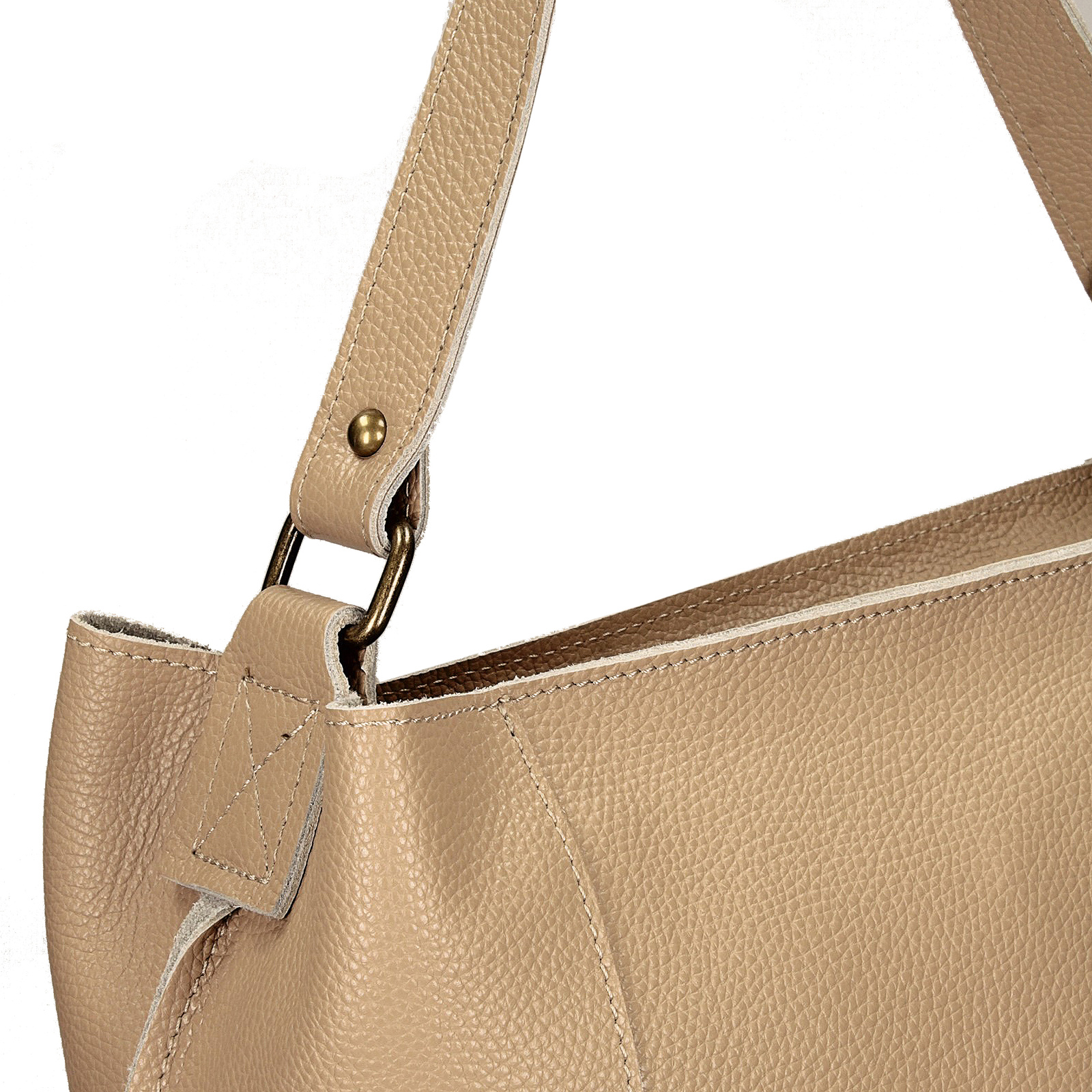 Torebka Toscanio to doskonały wybór dla kobiet ceniących elegancję, wysoką jakość i praktyczność. Wykonana z naturalnej skóry licowej groszek, ta modna torebka w odcieniu beżowym z pewnością przyciągnie uwagę i będzie pasować do wielu stylizacji. Dzięki swojej przestronności, torebka pomieści wszystkie niezbędne rzeczy, w tym dokumenty formatu A4, co czyni ją idealnym rozwiązaniem do pracy, na spotkania biznesowe, jak i codzienne użytkowanie.
