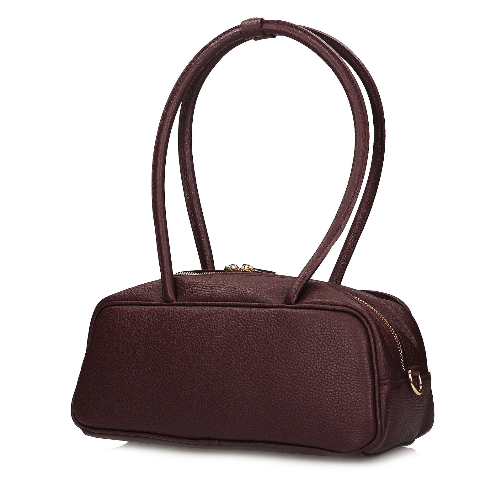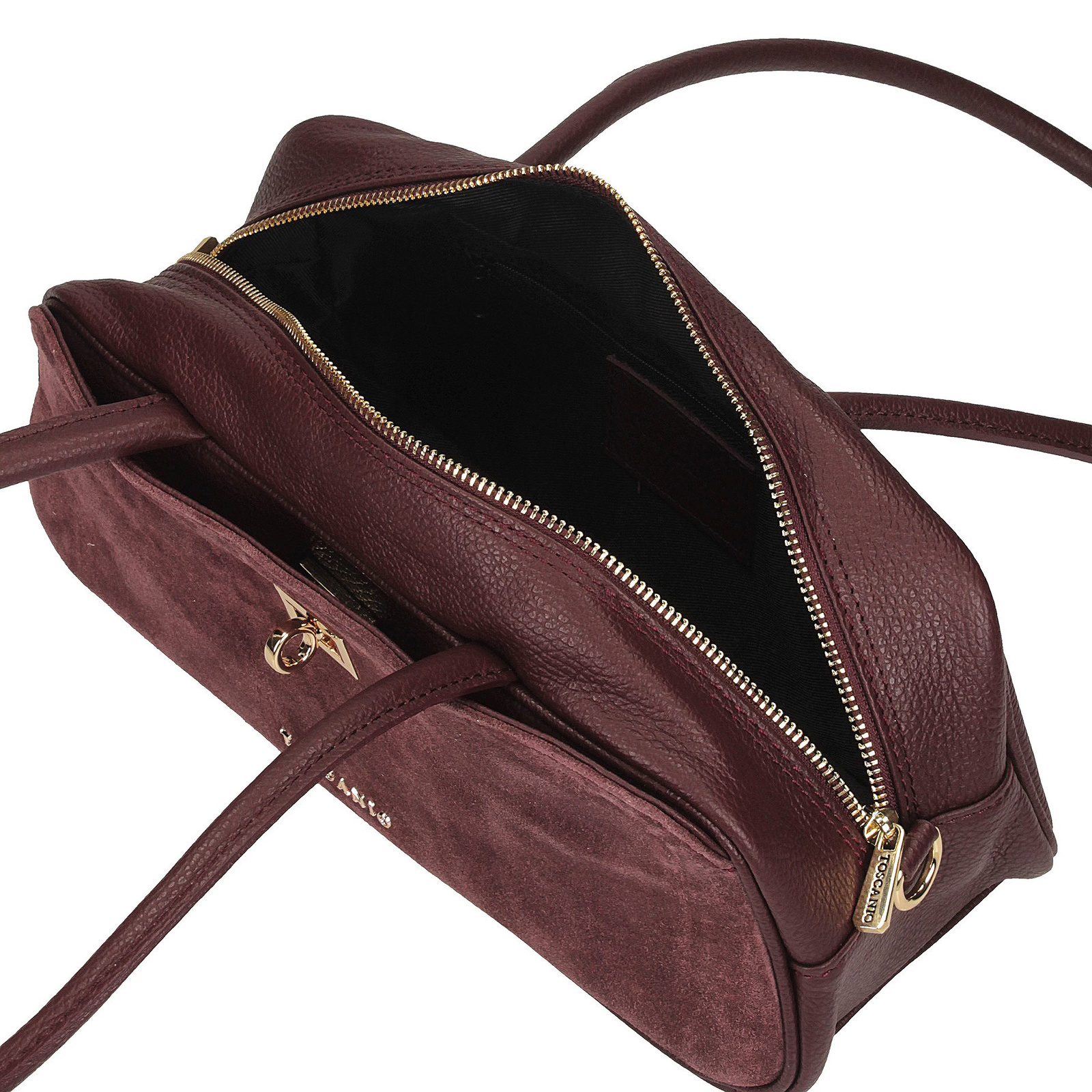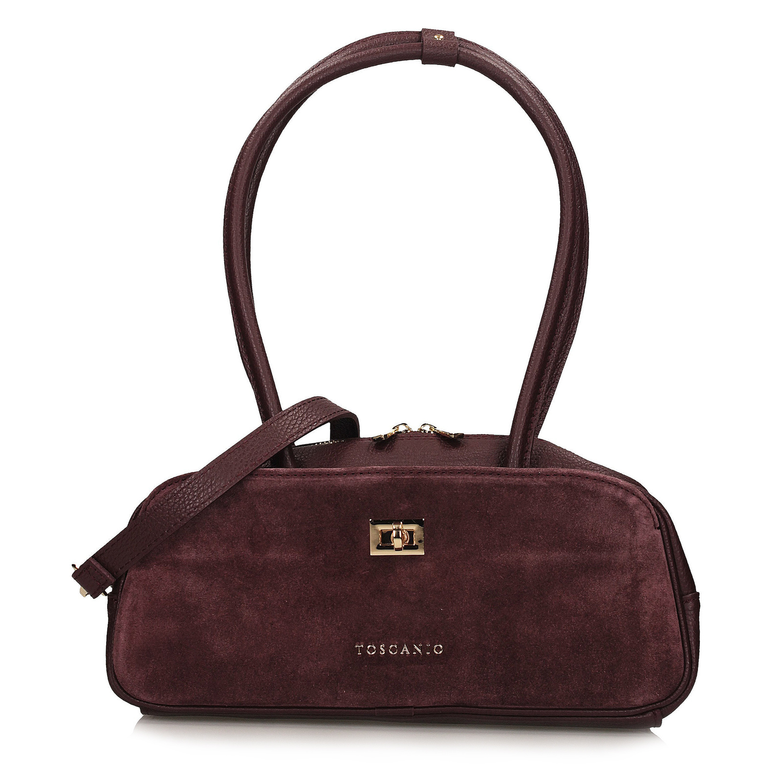 Torebka Toscanio w kolorze bordowym to elegancki model łączący w sobie klasykę i nowoczesny szyk. Wykonana z połączenia skóry naturalnej licowej i zamszu, zachwyca subtelnym kontrastem faktur oraz starannym wykończeniem.