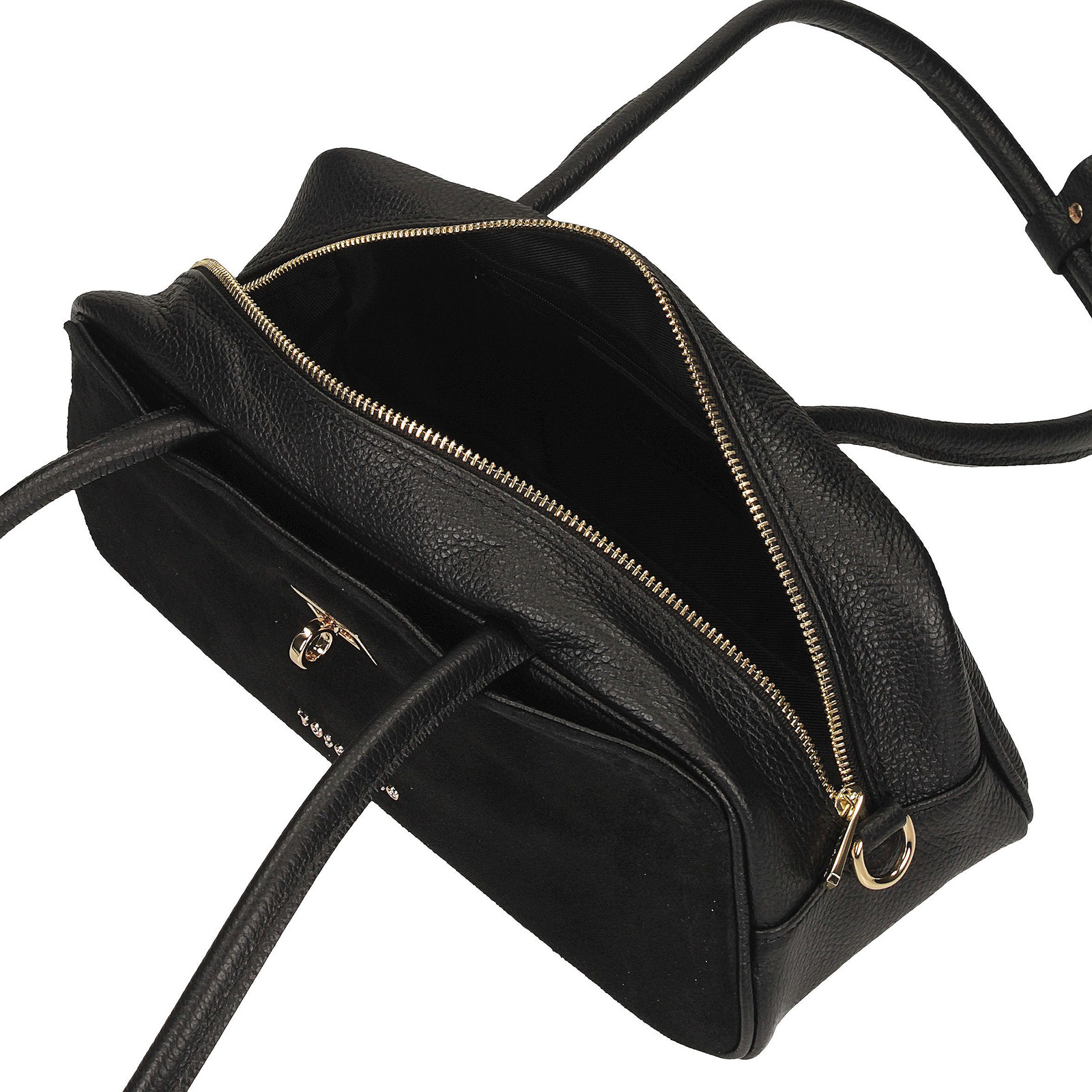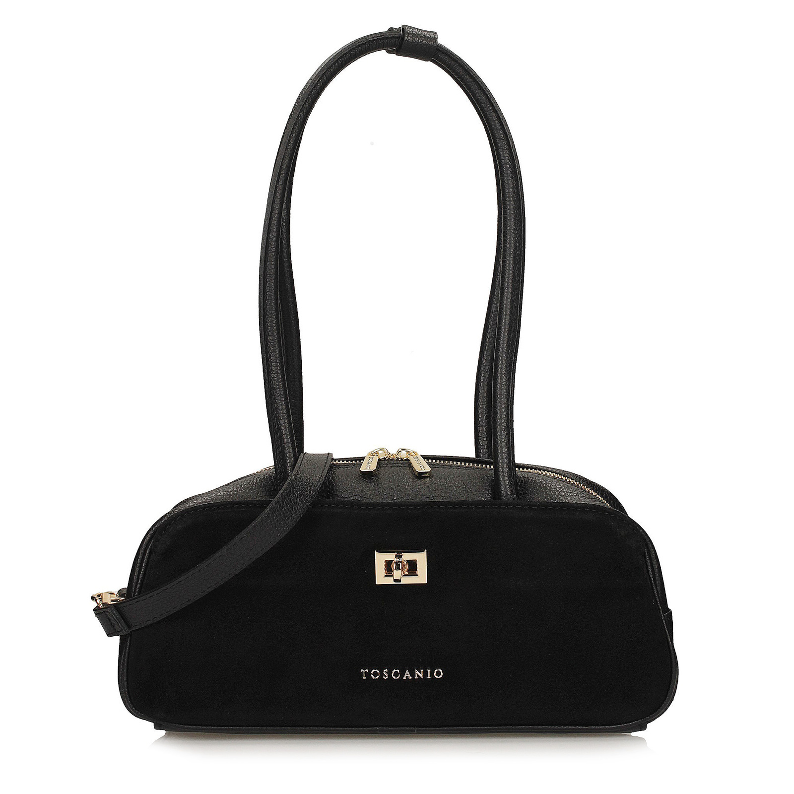 Torebka Toscanio w kolorze czarnym to klasyczna propozycja dla kobiet, które cenią elegancję i funkcjonalność w najlepszym wydaniu. Wykonana z połączenia skóry naturalnej licowej i zamszu, wyróżnia się subtelnym kontrastem materiałów oraz dopracowanymi detalami.
